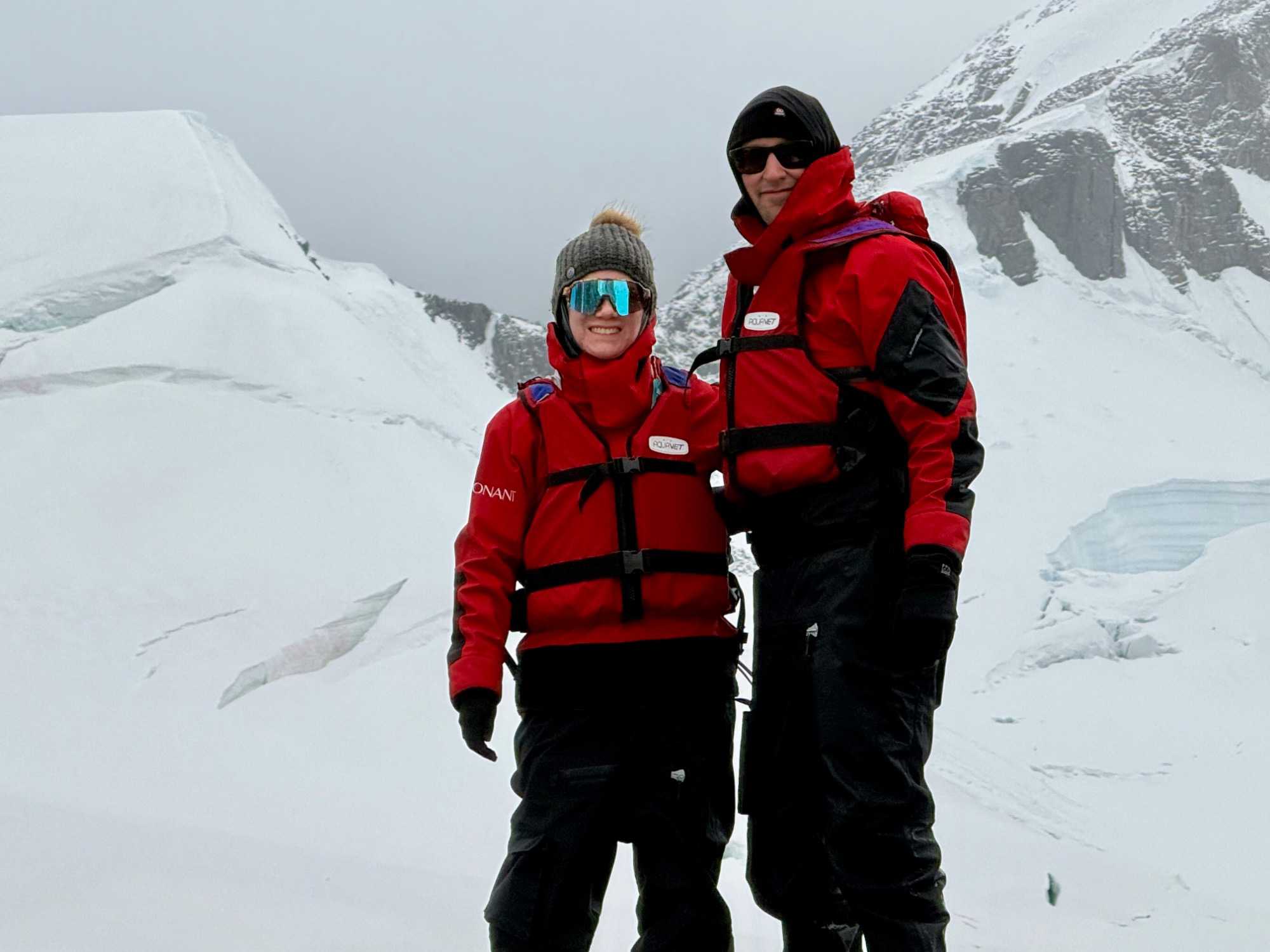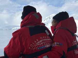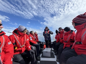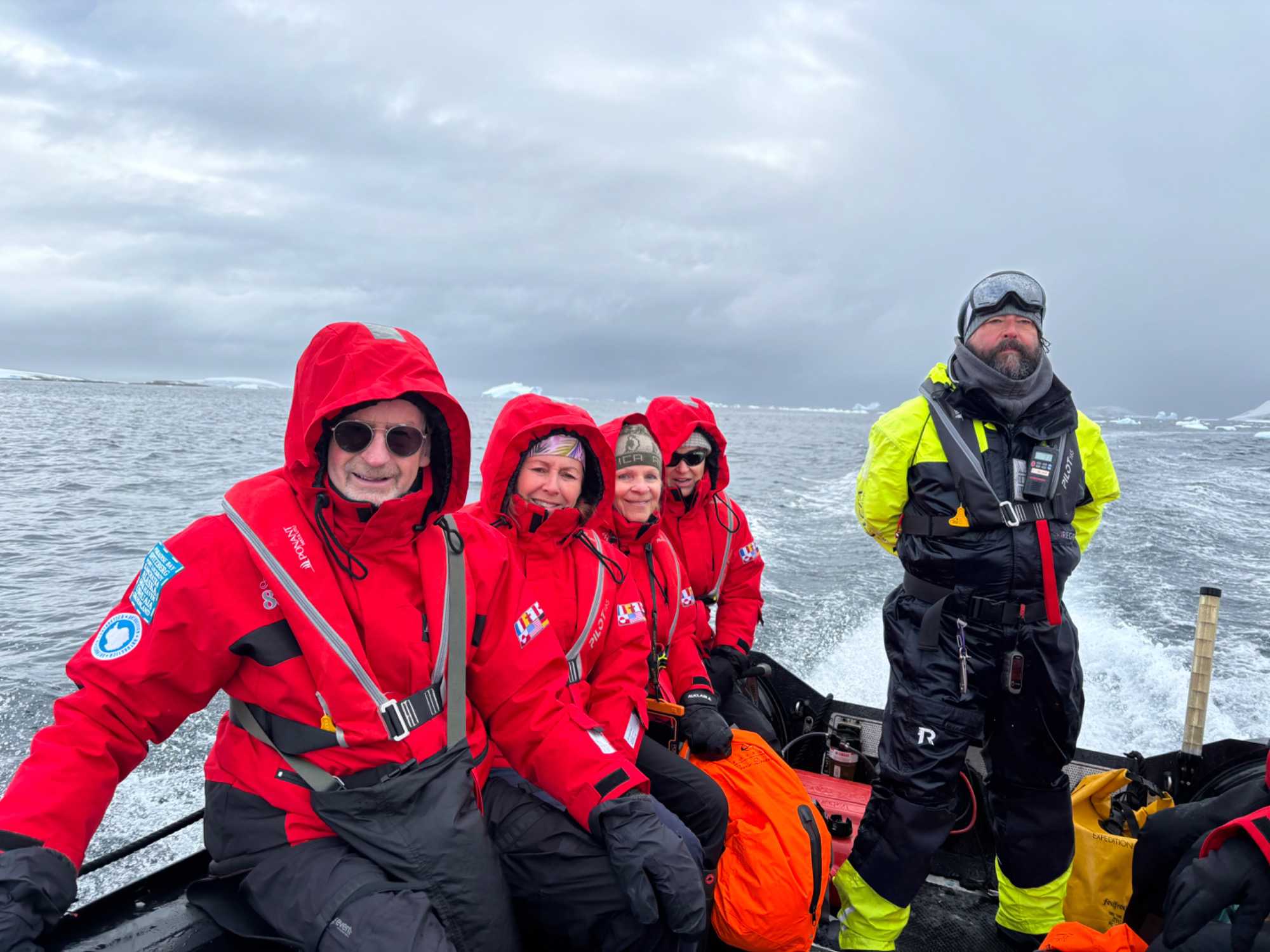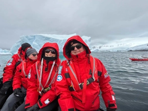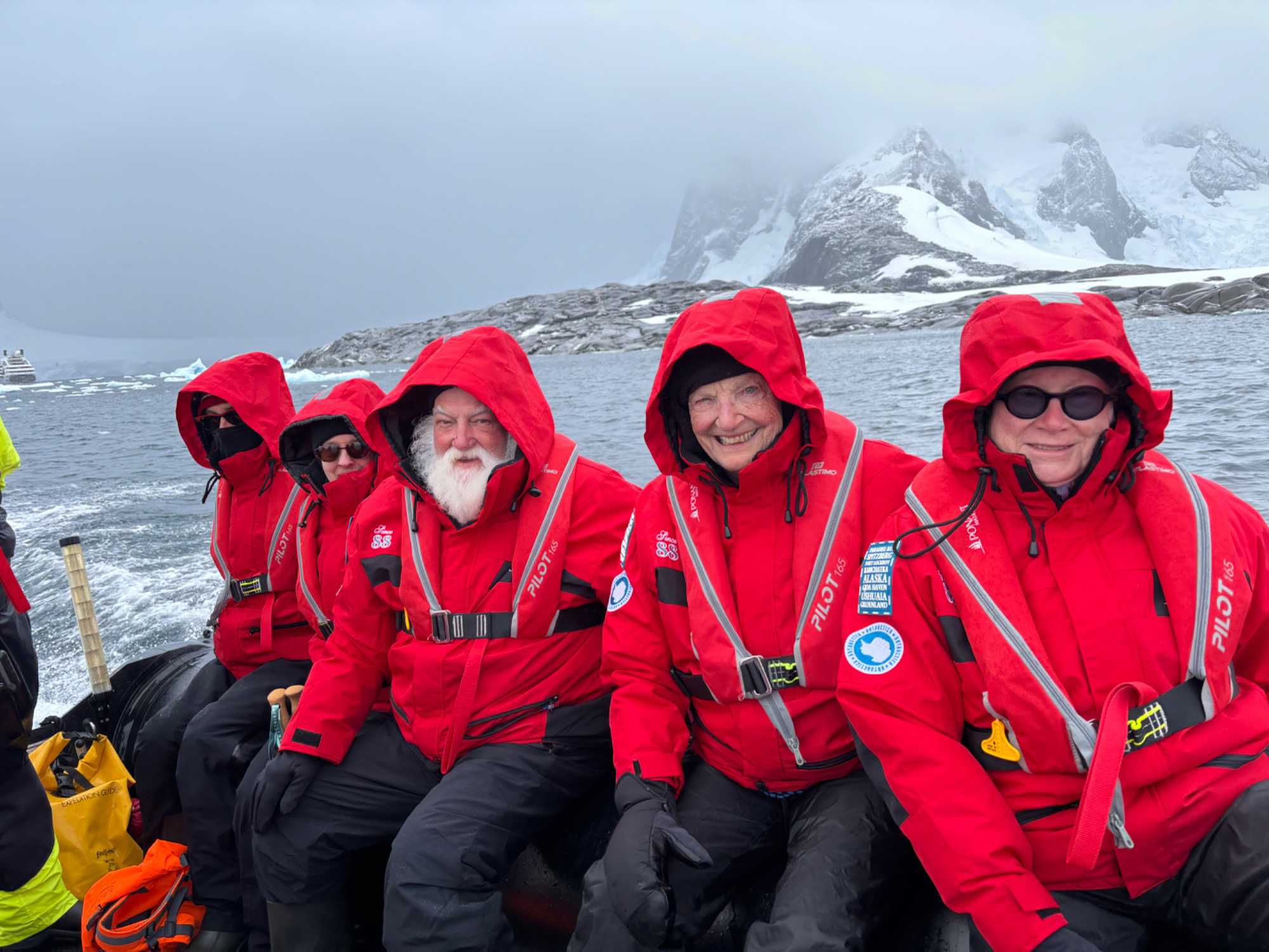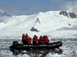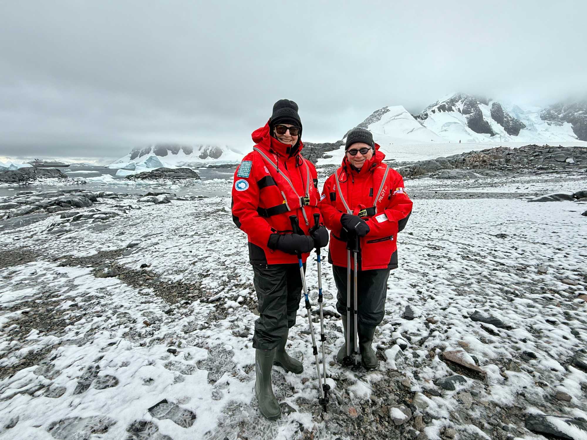 (Et comme si cette journée n’était pas déjà assez magique, nous avons même eu la chance, durant le voyage, de prendre quelques photos avec le Père Noël! Oui, oui… le Père Noël en personne, qui s’était visiblement égaré de sa zone polaire du Nord pour venir saluer nos voyageurs en Antarctique. Il en a profité pour envoyer de grands bonjours à tous les enfants qui le suivent fidèlement au Québec. Comme quoi, même au bout du monde, la magie n’est jamais bien loin! 🎅✨)