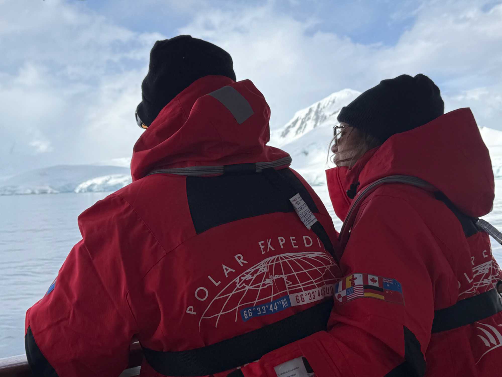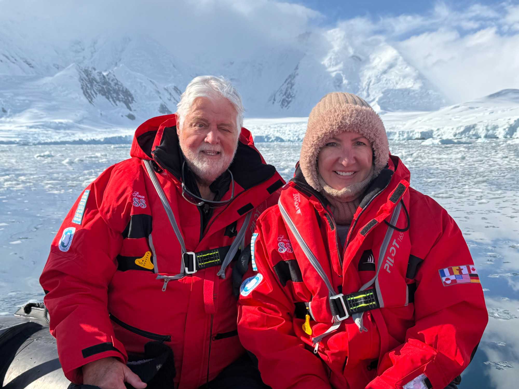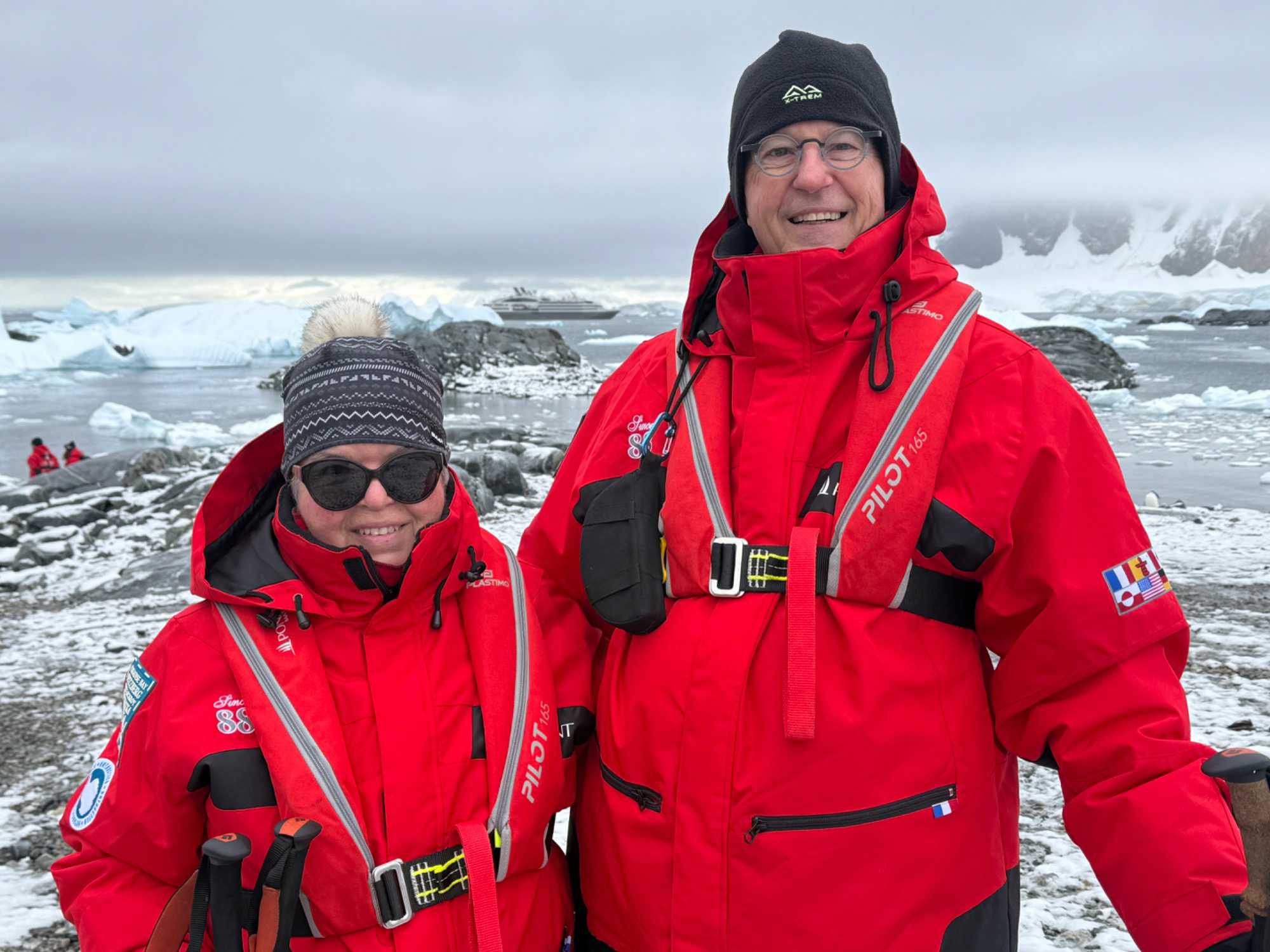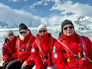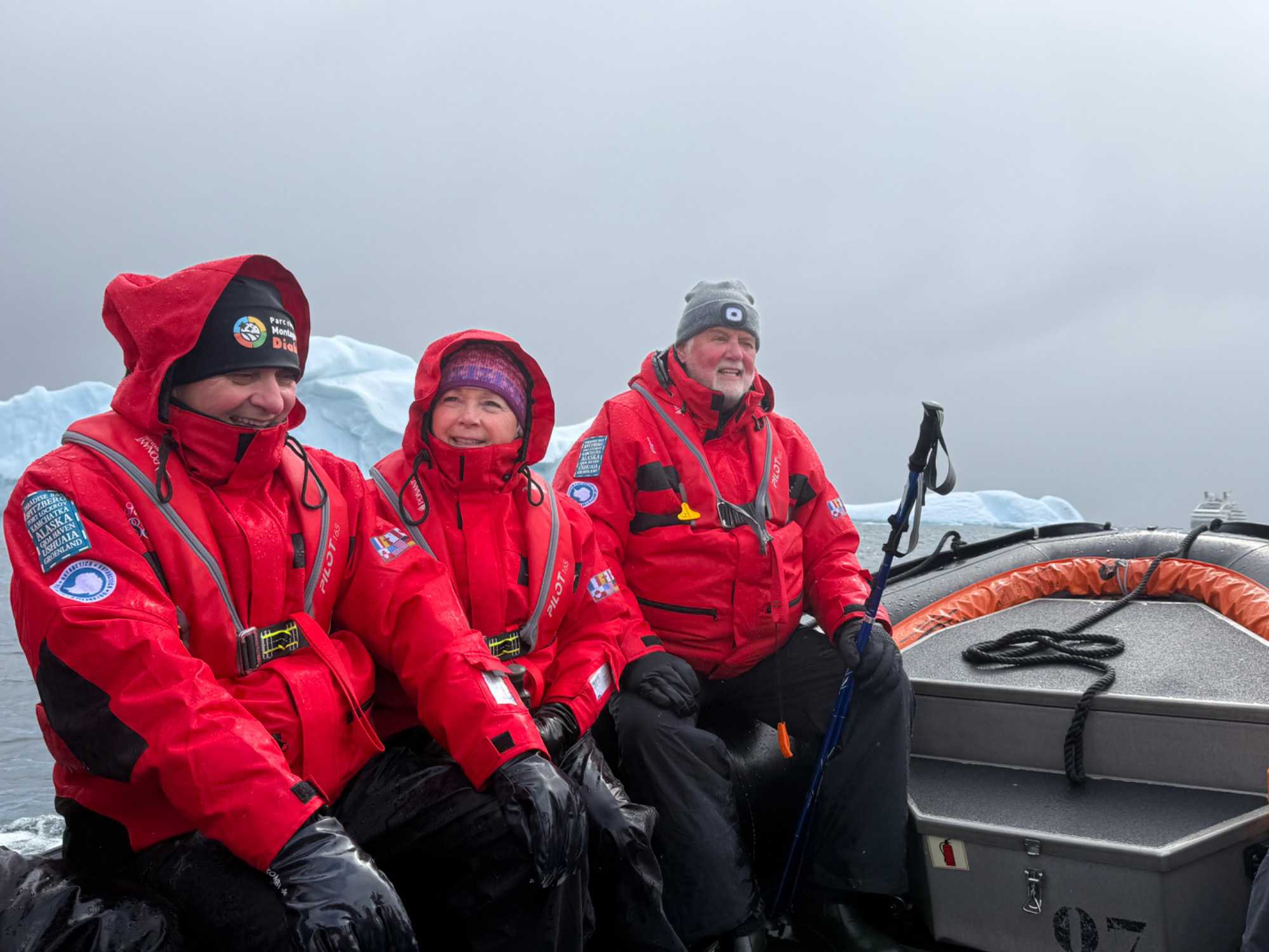 (Et comme si cette journée n’était pas déjà assez magique, nous avons même eu la chance, durant le voyage, de prendre quelques photos avec le Père Noël! Oui, oui… le Père Noël en personne, qui s’était visiblement égaré de sa zone polaire du Nord pour venir saluer nos voyageurs en Antarctique. Il en a profité pour envoyer de grands bonjours à tous les enfants qui le suivent fidèlement au Québec. Comme quoi, même au bout du monde, la magie n’est jamais bien loin! 🎅✨)