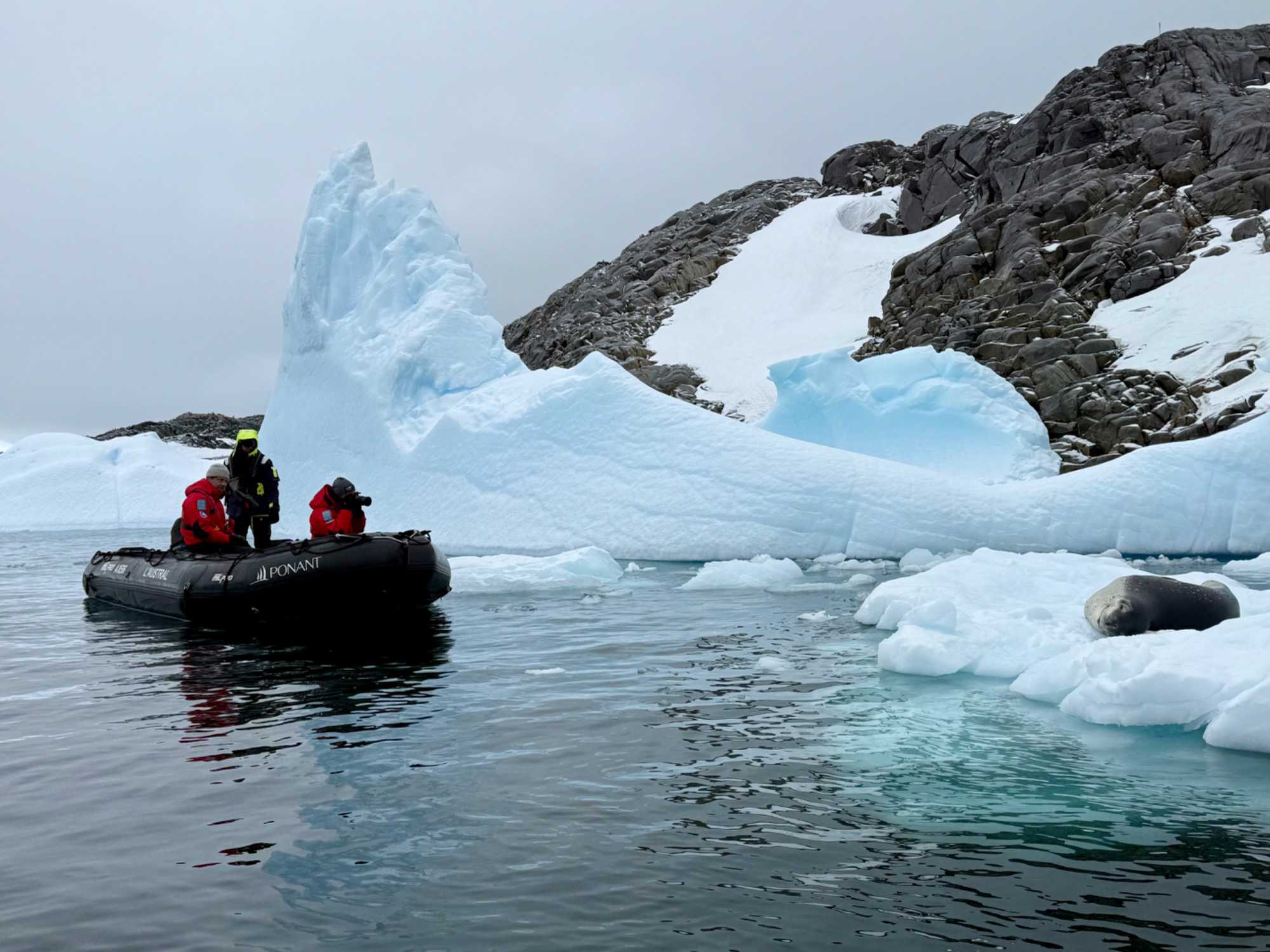 J’ai pris de magnifiques photos de mes voyageurs à bord du zodiac, les yeux brillants, le sourire figé par l’émerveillement. Nous aurions voulu rester là encore longtemps… mais il était temps de rejoindre notre débarquement.