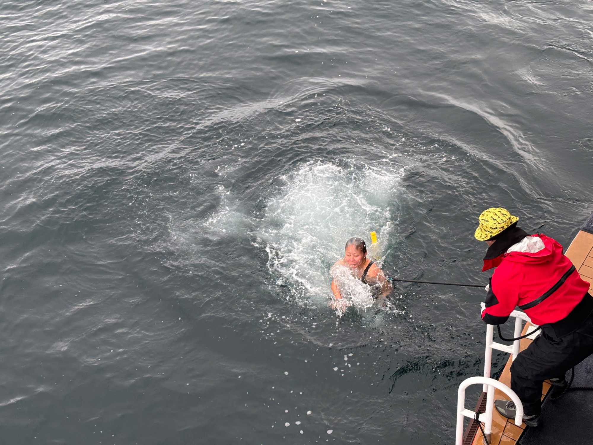 Seuls les voyageurs ayant fourni une autorisation médicale pouvaient y participer, car plonger dans une eau à 0 degré n’est pas anodin. Personne de mon groupe ne s’est lancé… mais nous avons été d’excellents spectateurs!