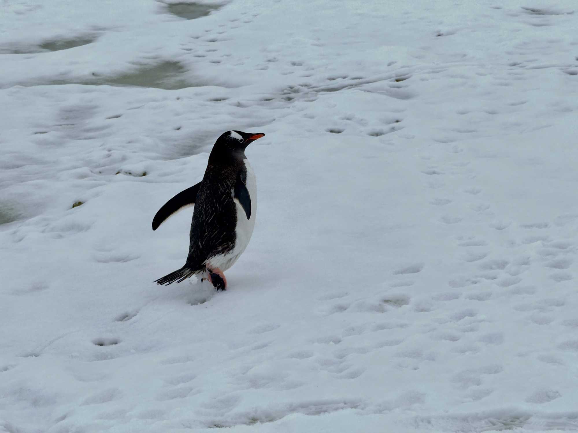 Nous débarquons enfin sur la terre ferme à Port Charcot. Nous observons de jolis manchots, des bébés manchots, et profitons de ce moment historique et naturel à la fois.