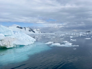 Nous glissons doucement dans la baie. Autour de nous, les glaciers, les montagnes, les nuances de gris, de bleu et de blanc offrent une lumière absolument magique. Ce n’est pas le grand soleil… et pourtant, les photos sont encore plus belles, plus dramatiques, presque irréelles.