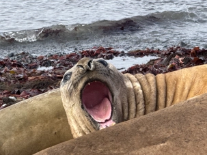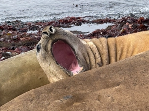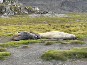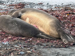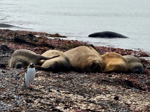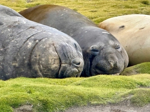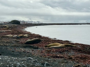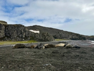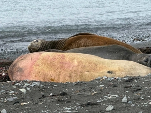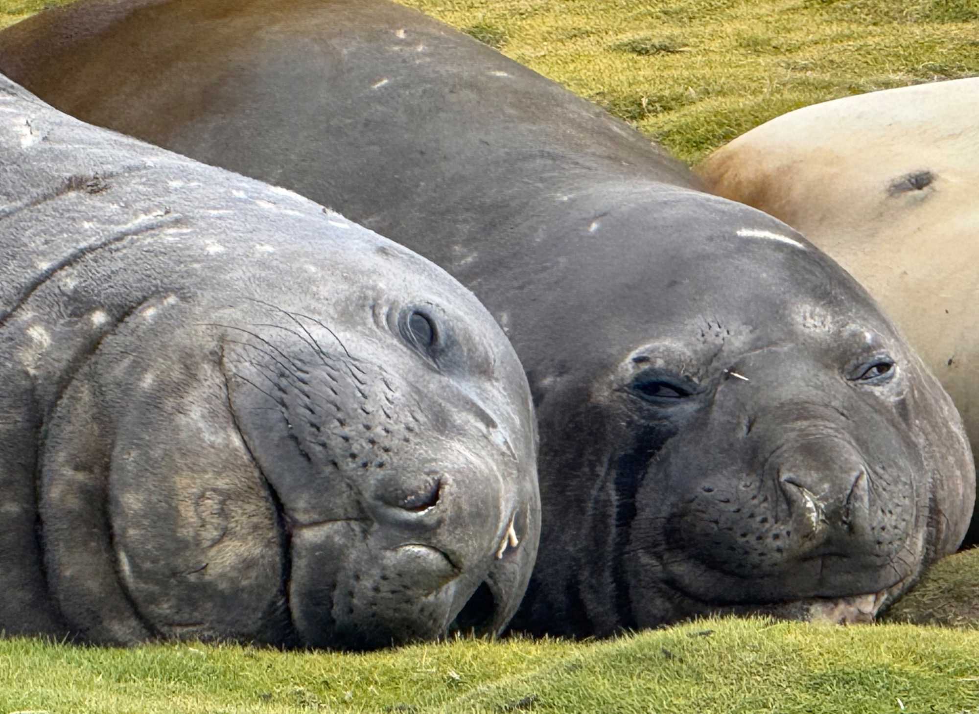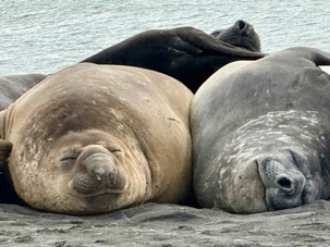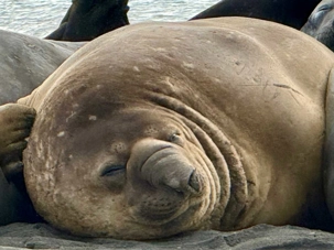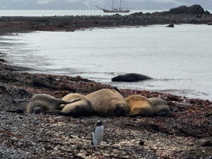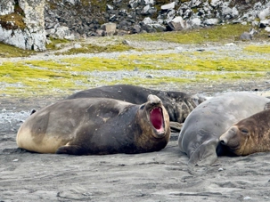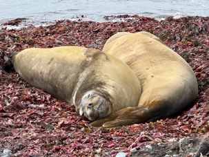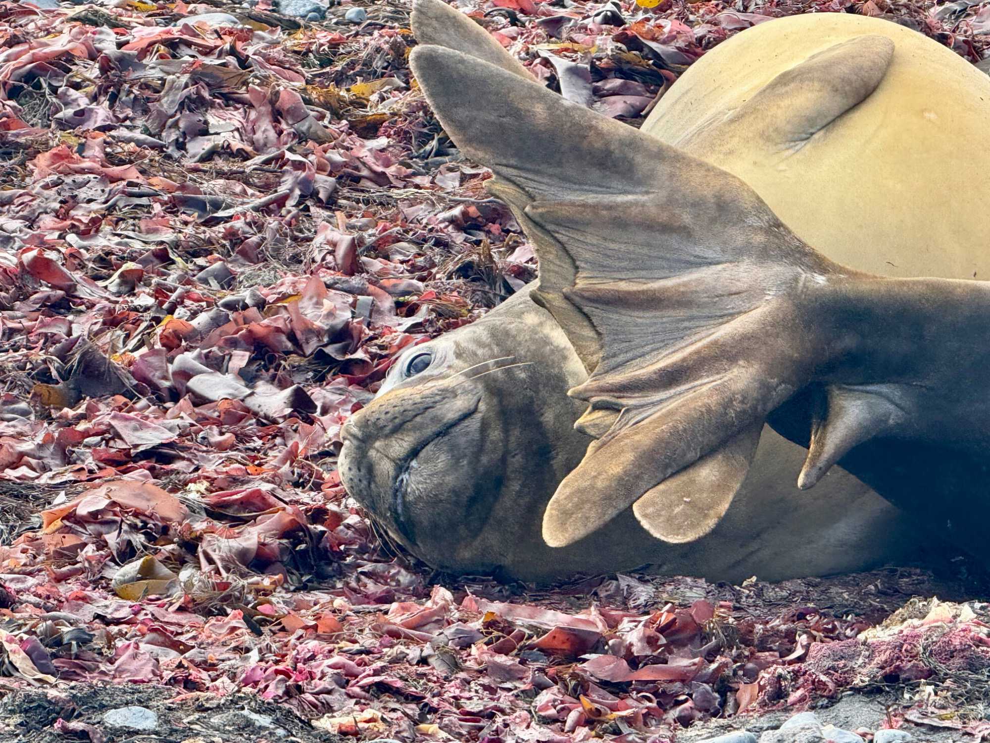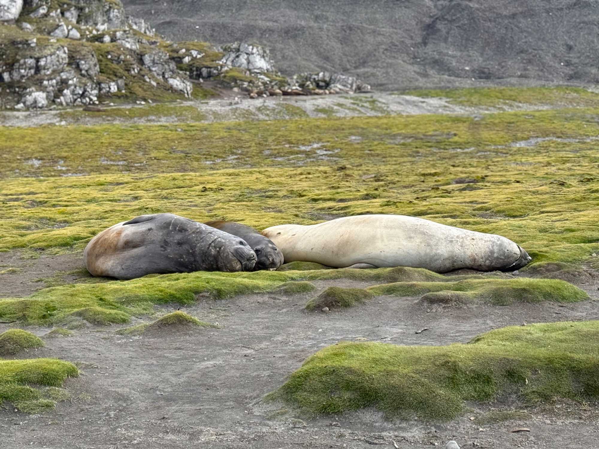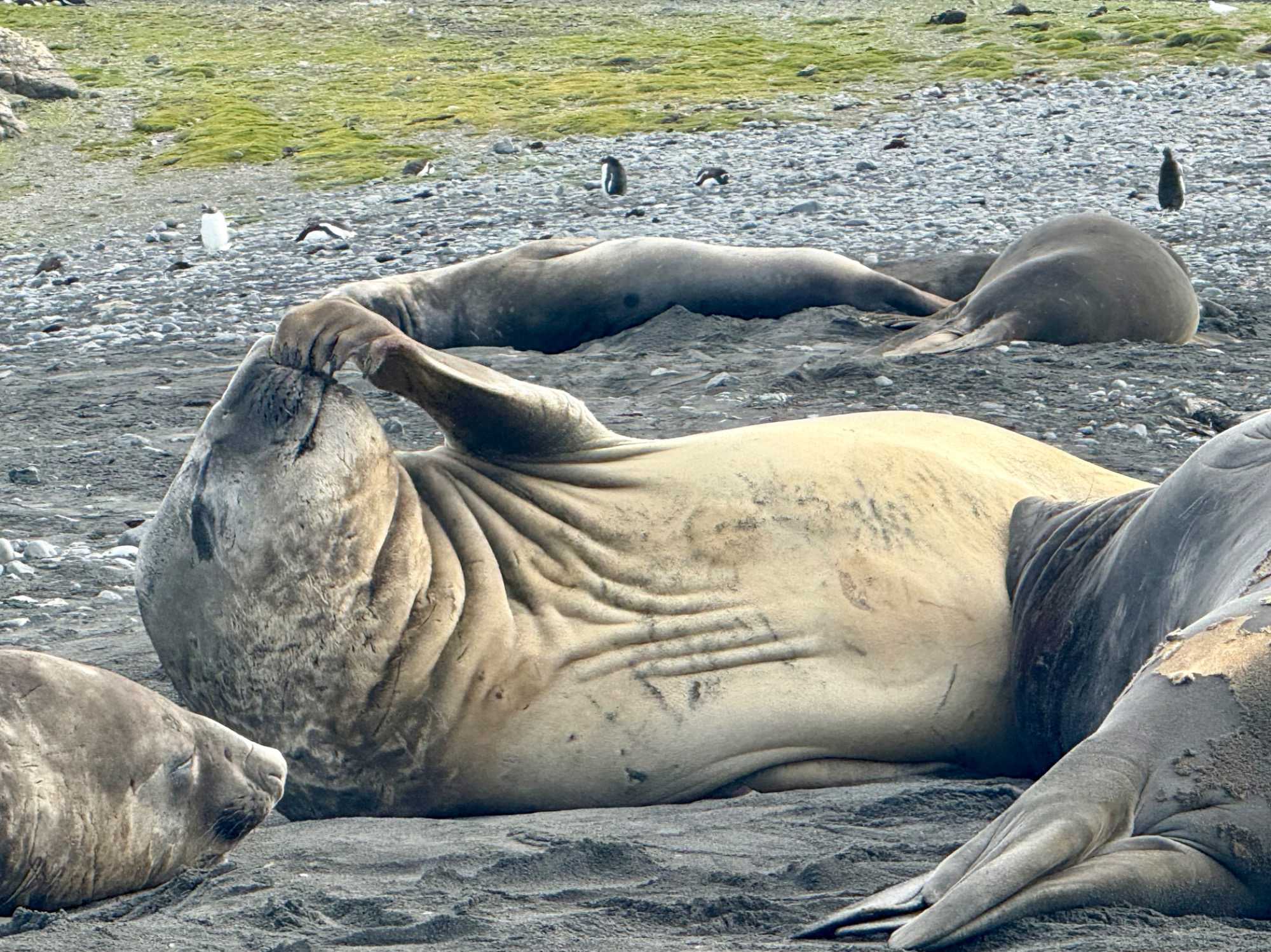 À Elephant Point, nous avons pu les observer au repos, étendus sur les plages de galets, souvent immobiles, parfois en train de se redresser légèrement pour nous observer… comme s’ils nous étudiaient à leur tour.