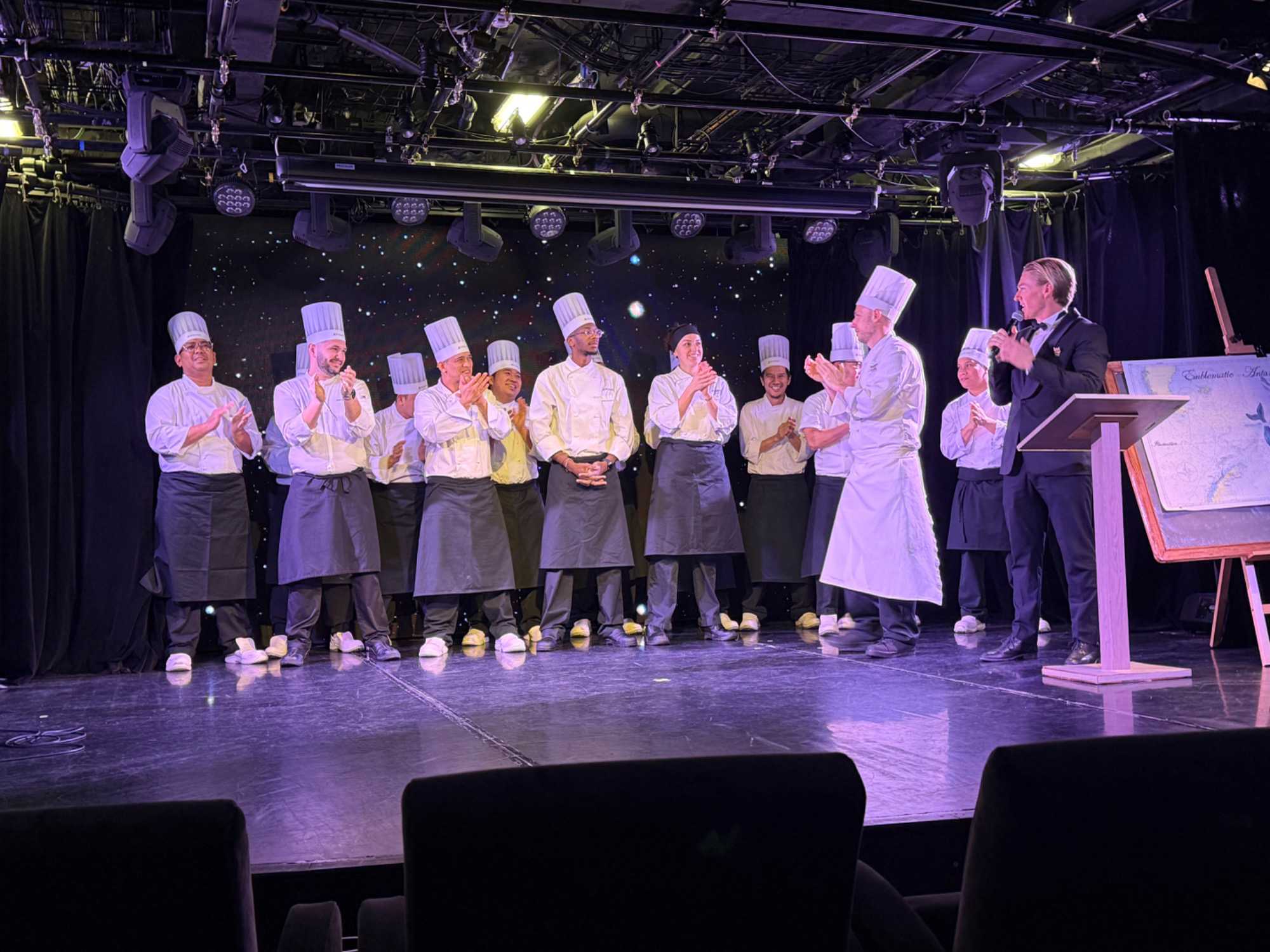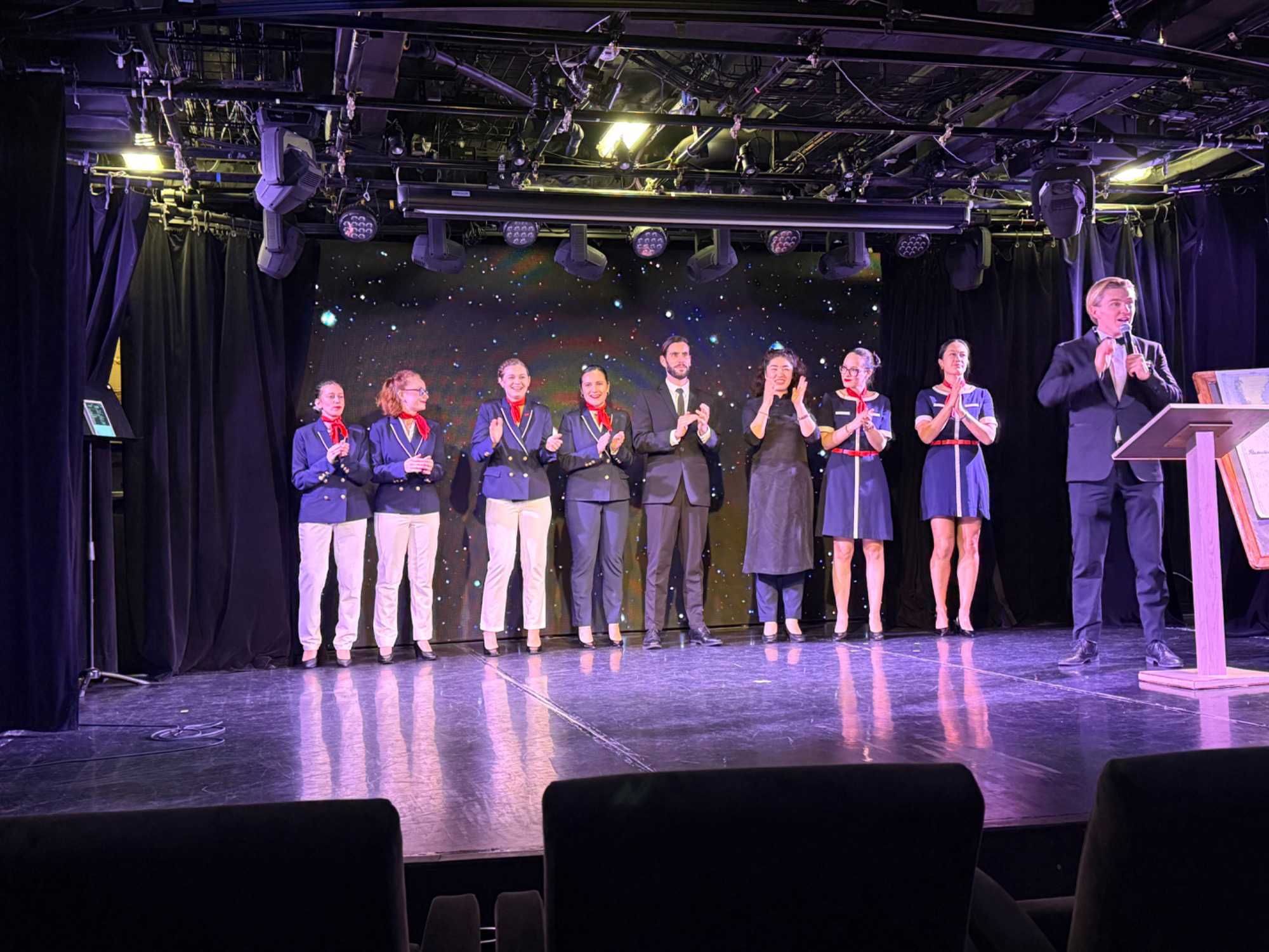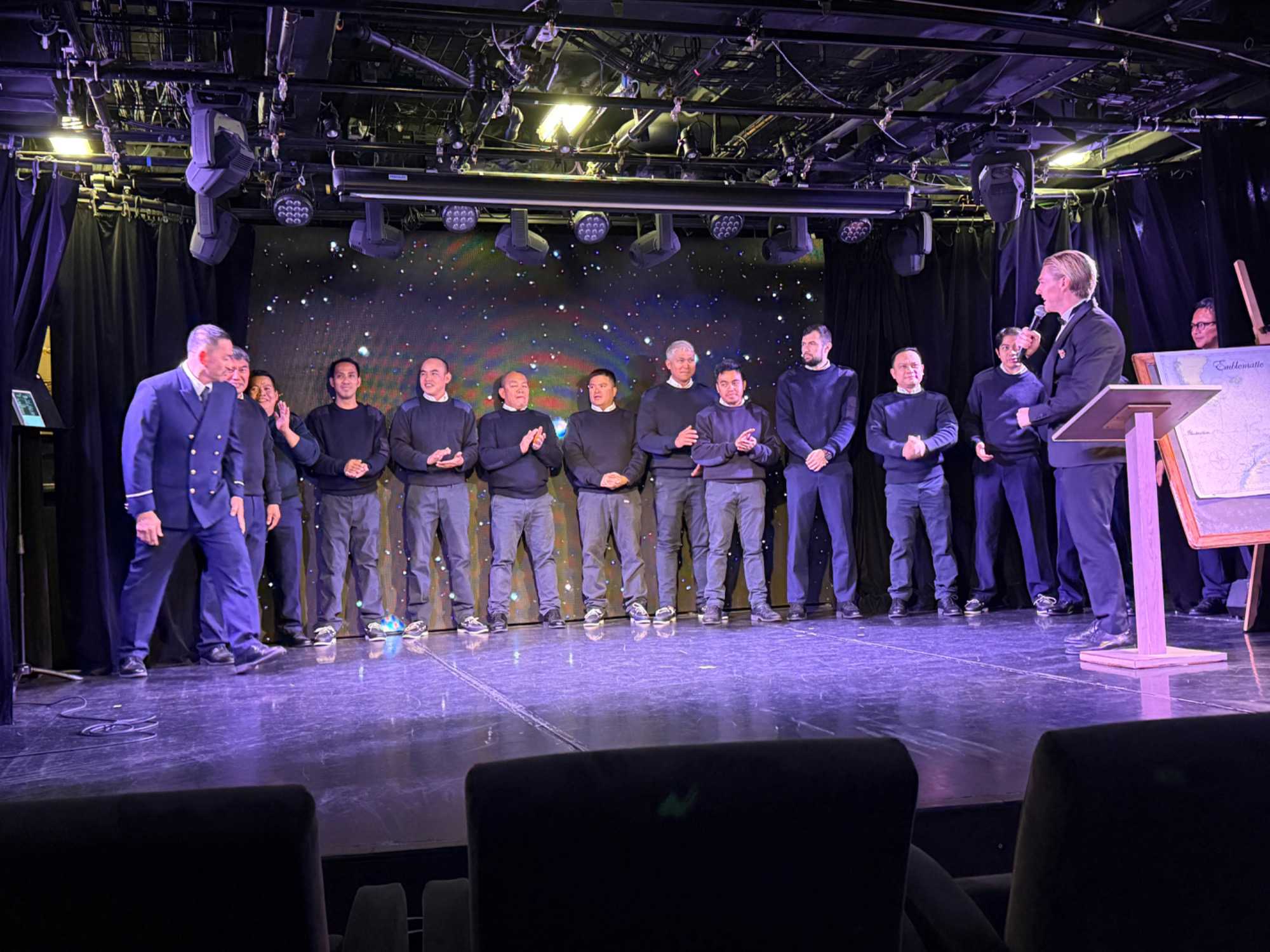 Nous avons été accueillis au grand salon par le commandant, Nicolas JOUSLIN DE NORAY et toute l’équipe. Les chefs de département nous ont été présentés, nous permettant de mesurer le travail exceptionnel accompli par les 155 membres d’équipage à bord.