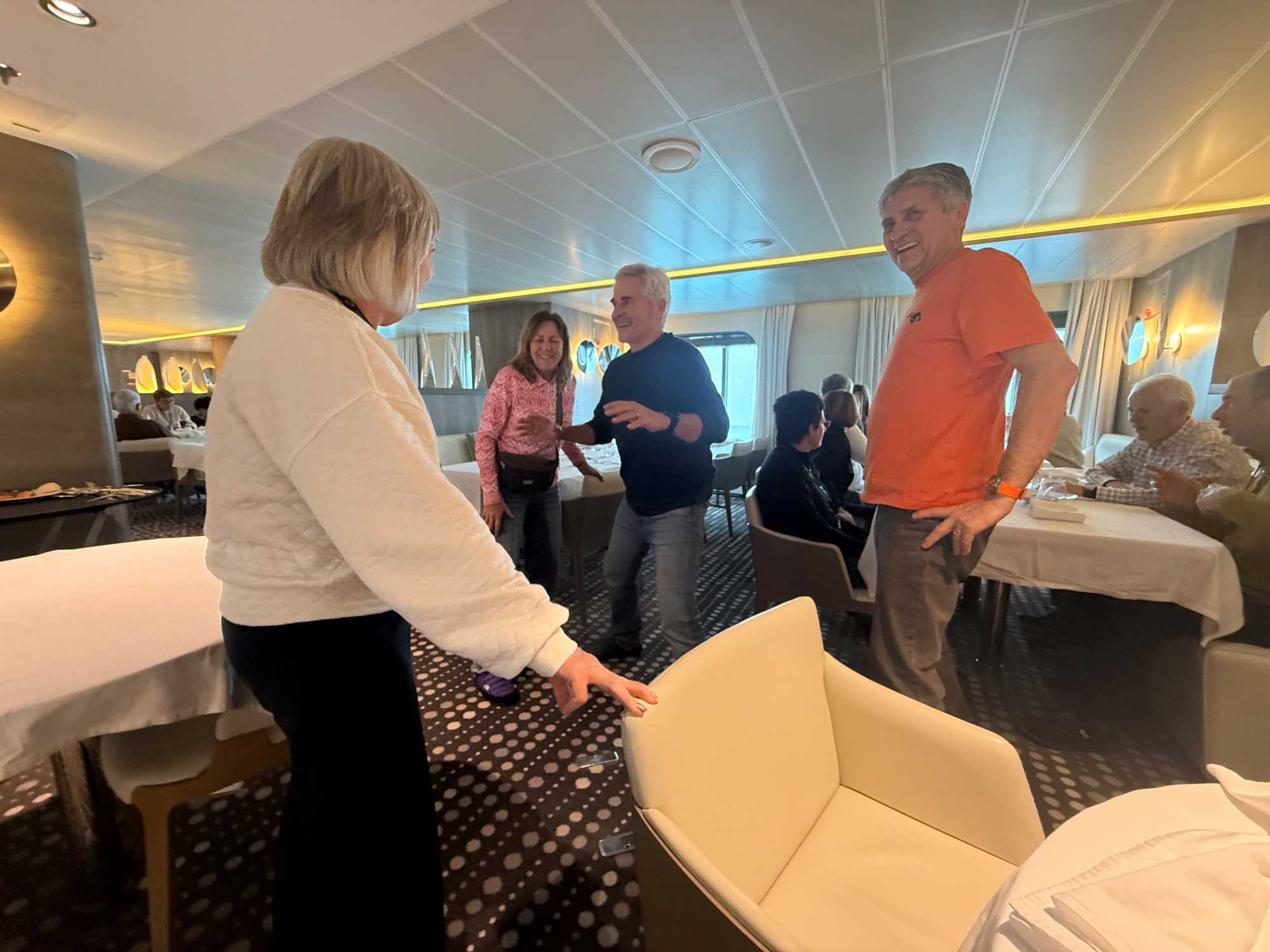 Nous nous sommes retrouvés tous ensemble pour le souper. Très peu de passagers manquaient à l’appel — deux ou trois seulement. La bonne humeur était au rendez-vous, les conversations allaient bon train, et on partageait les impressions de la journée, les photos, les sensations.