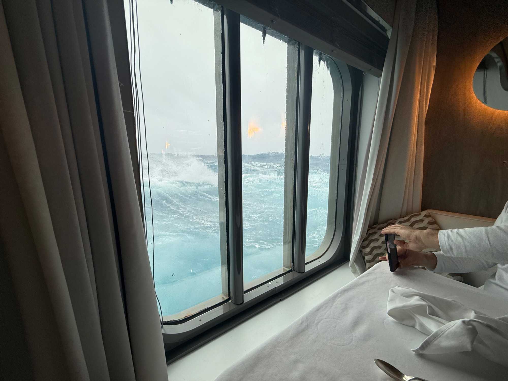 Plusieurs voyageurs se sont même installés au pont 6, le pont supérieur, pour observer la mer face au vent. Voir la nature se déchaîner ainsi est quelque chose de puissant, presque hypnotisant. Beaucoup étaient fascinés, impressionnés… et heureux de vivre ce moment unique.