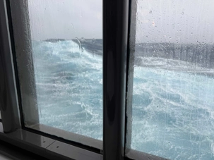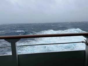 Encore une fois, je suis toujours étonnée par la stabilité de notre navire, L’Austral. Malgré ces conditions, le bateau se comporte avec une solidité remarquable, rendant la navigation beaucoup plus confortable qu’on pourrait l’imaginer.