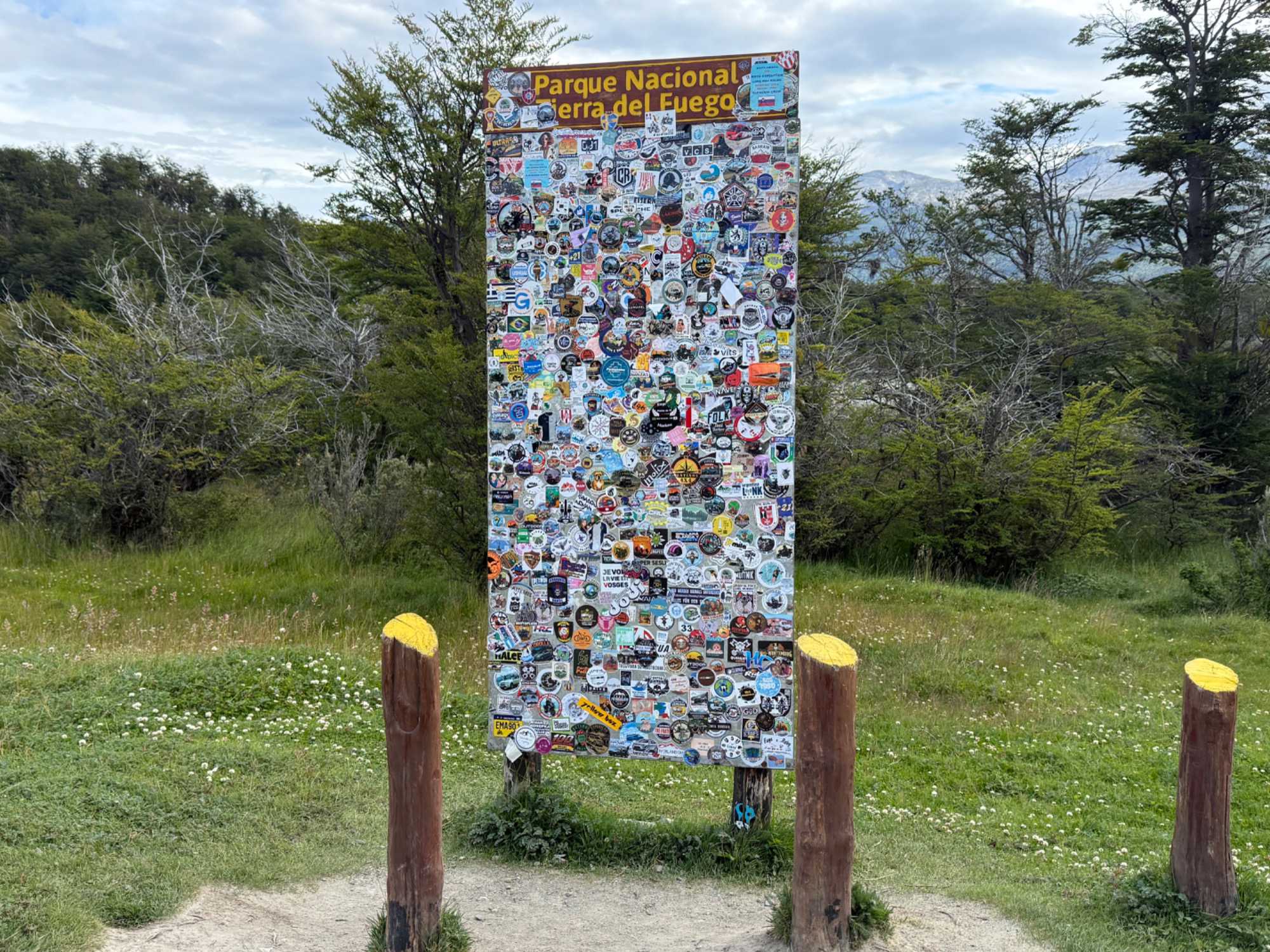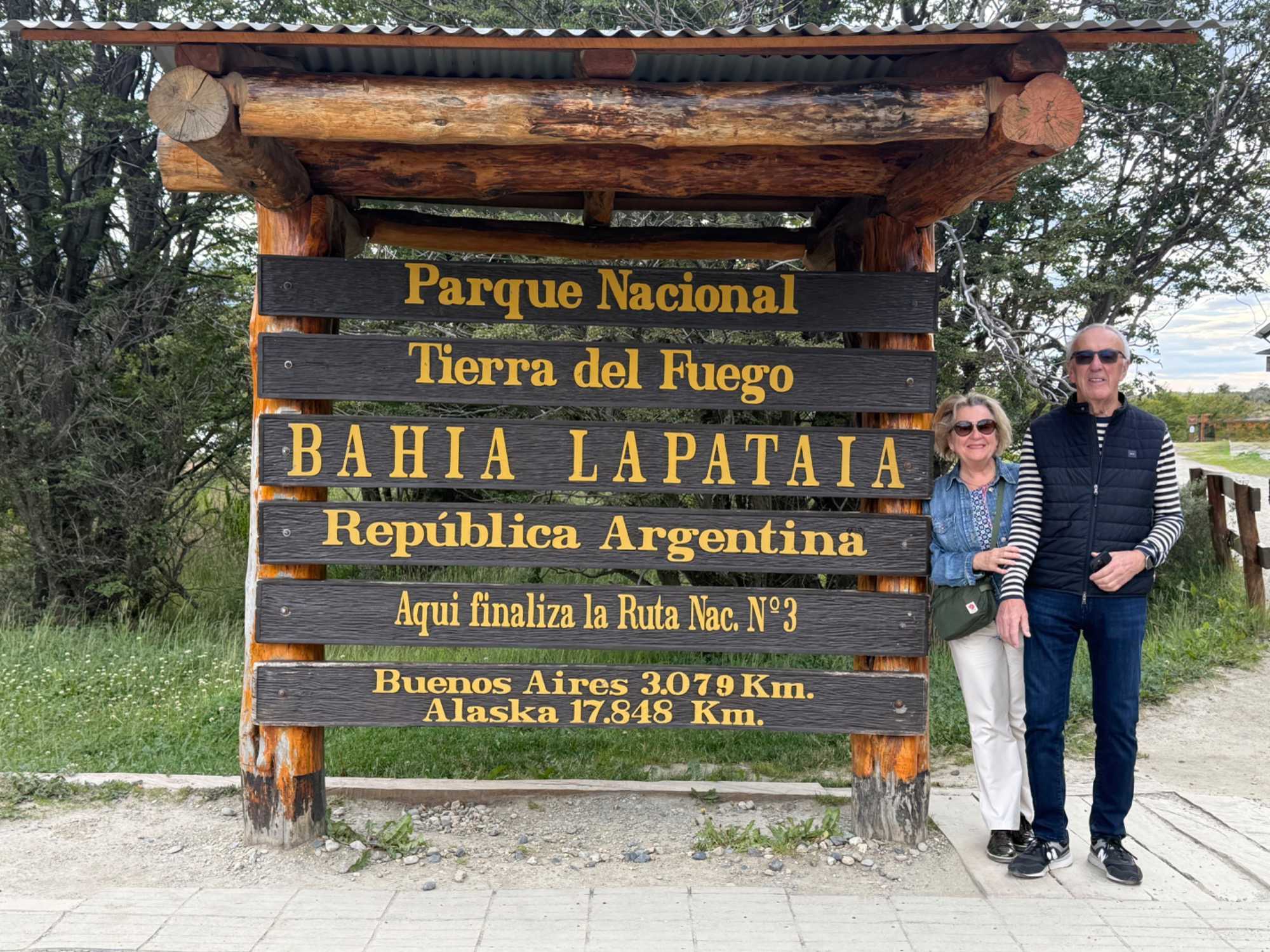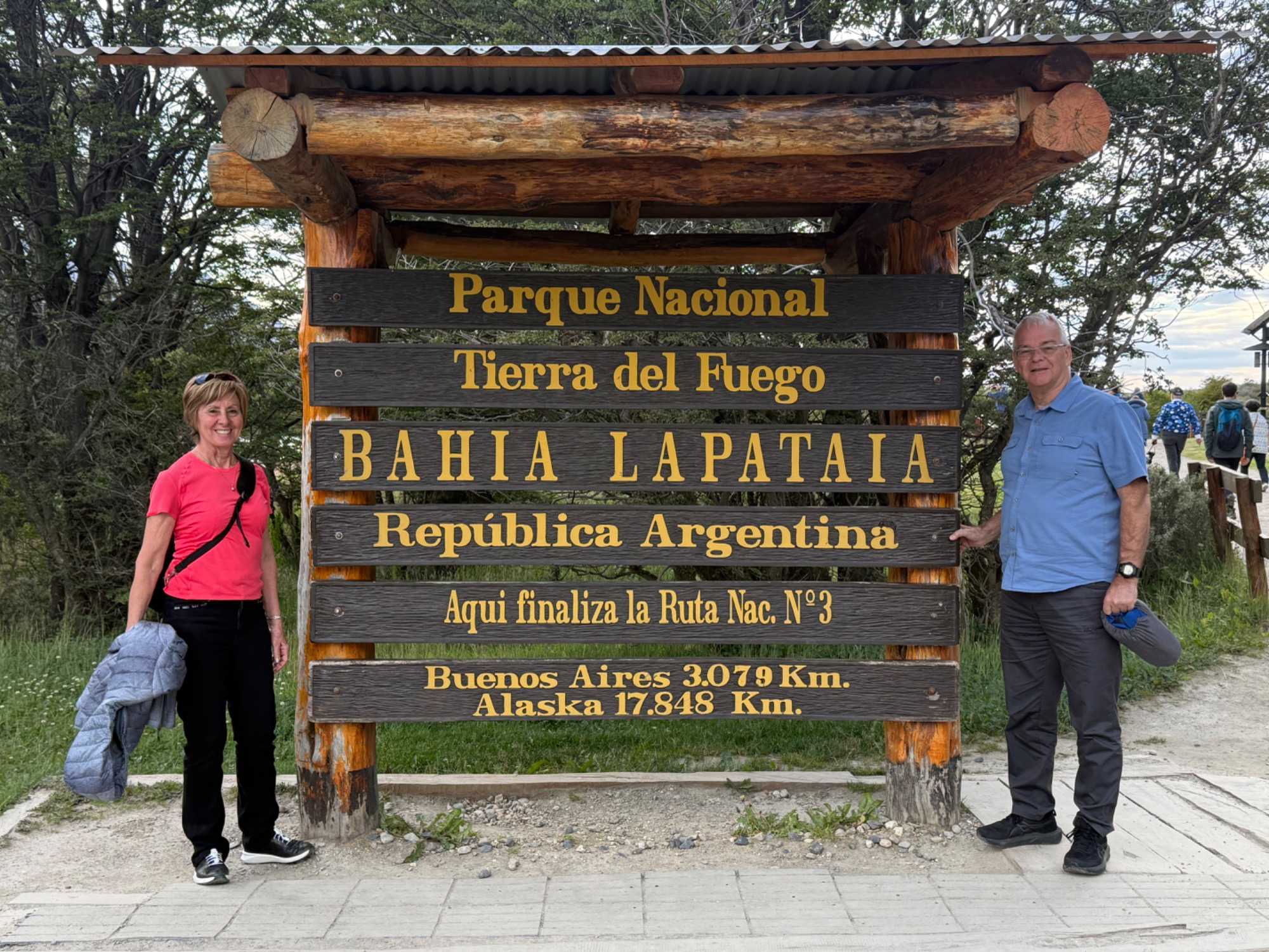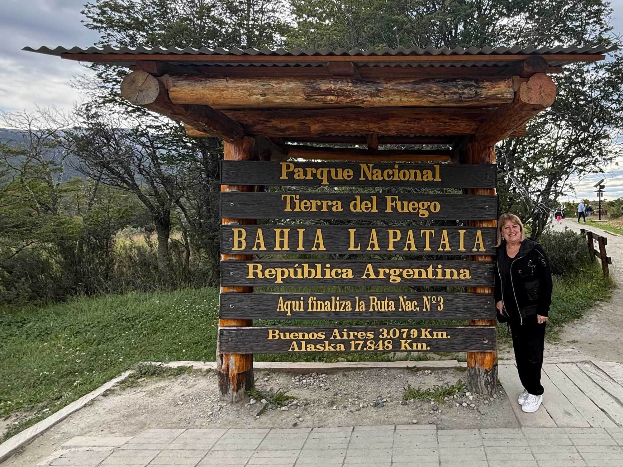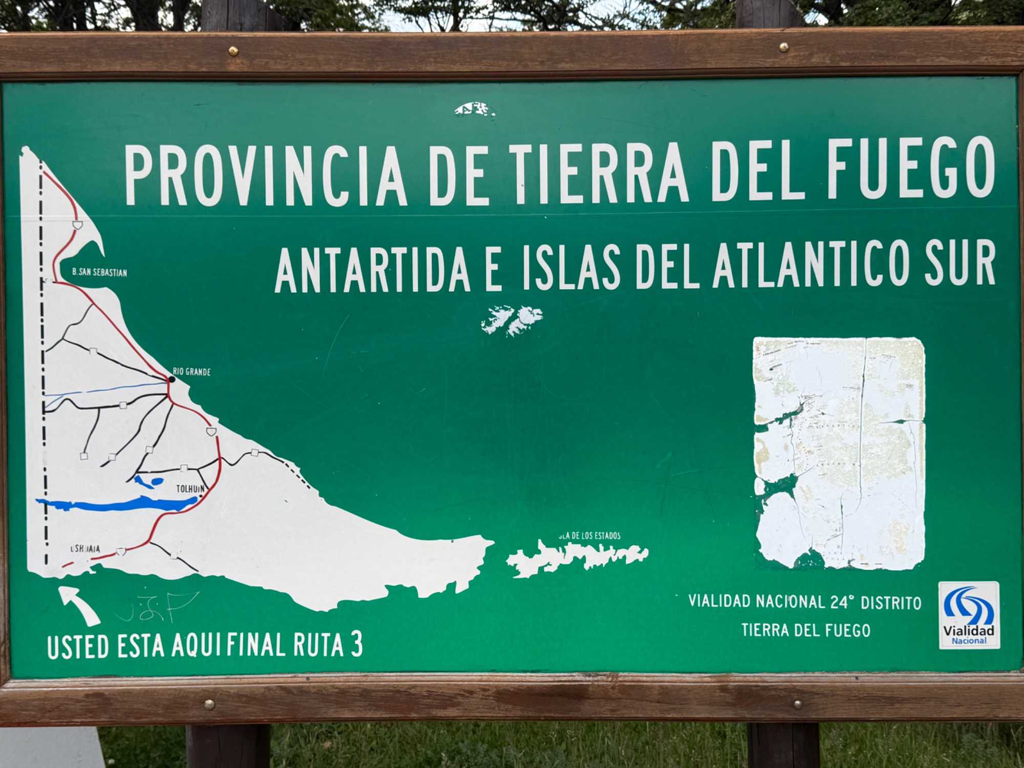 Se tenir ici, à Ushuaia, devant cette affiche marquant la fin de la route, donne une vraie sensation de bout du monde… et une belle résonance à notre propre voyage.