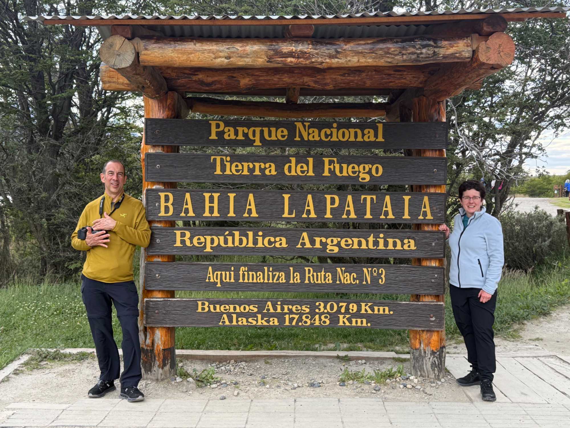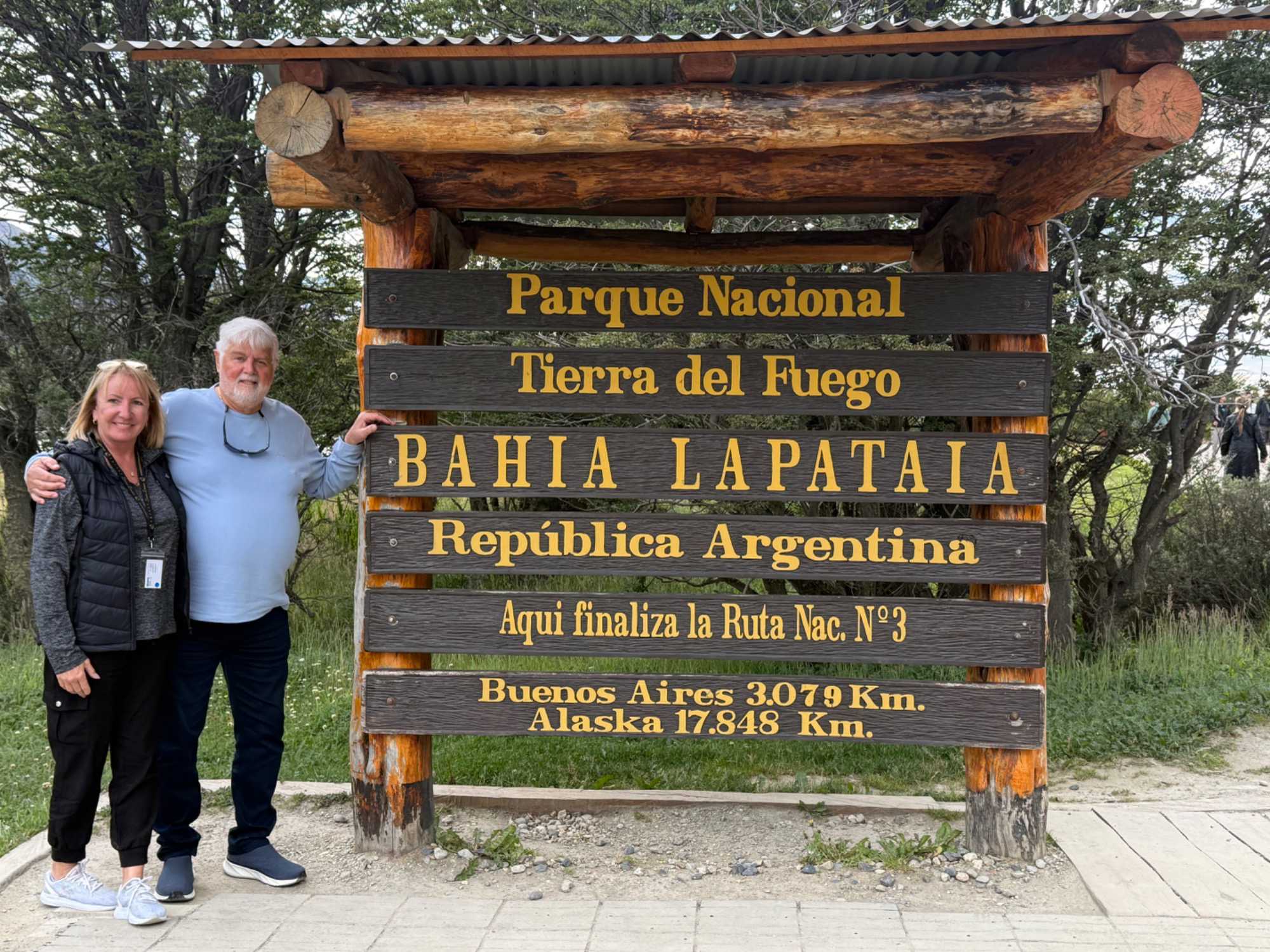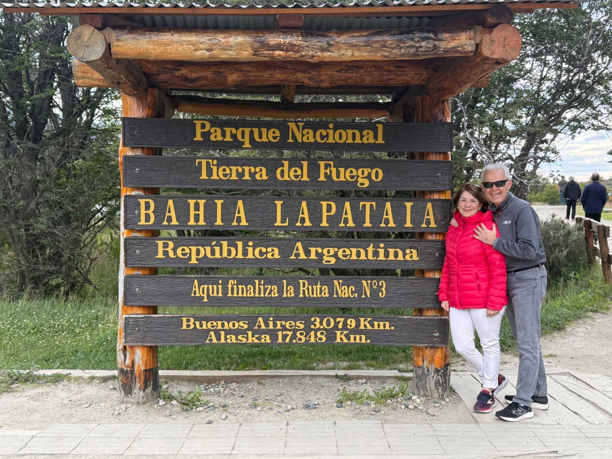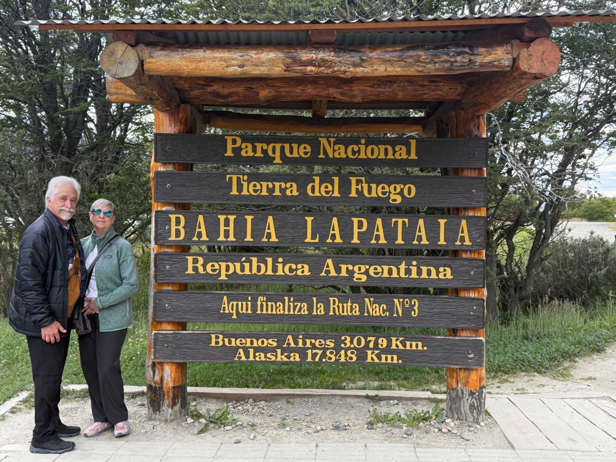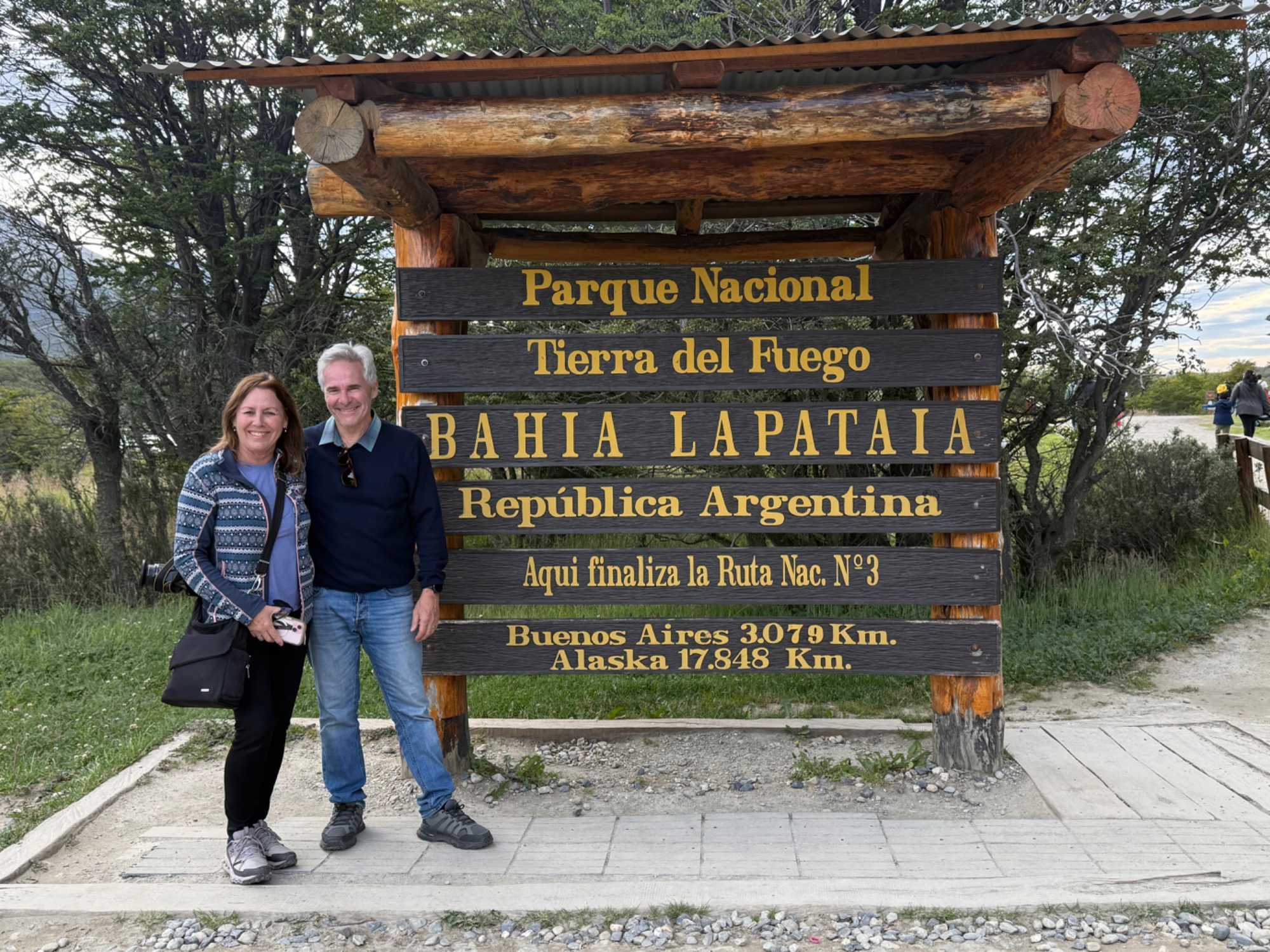 Se tenir ici, à Ushuaia, devant cette affiche marquant la fin de la route, donne une vraie sensation de bout du monde… et une belle résonance à notre propre voyage.