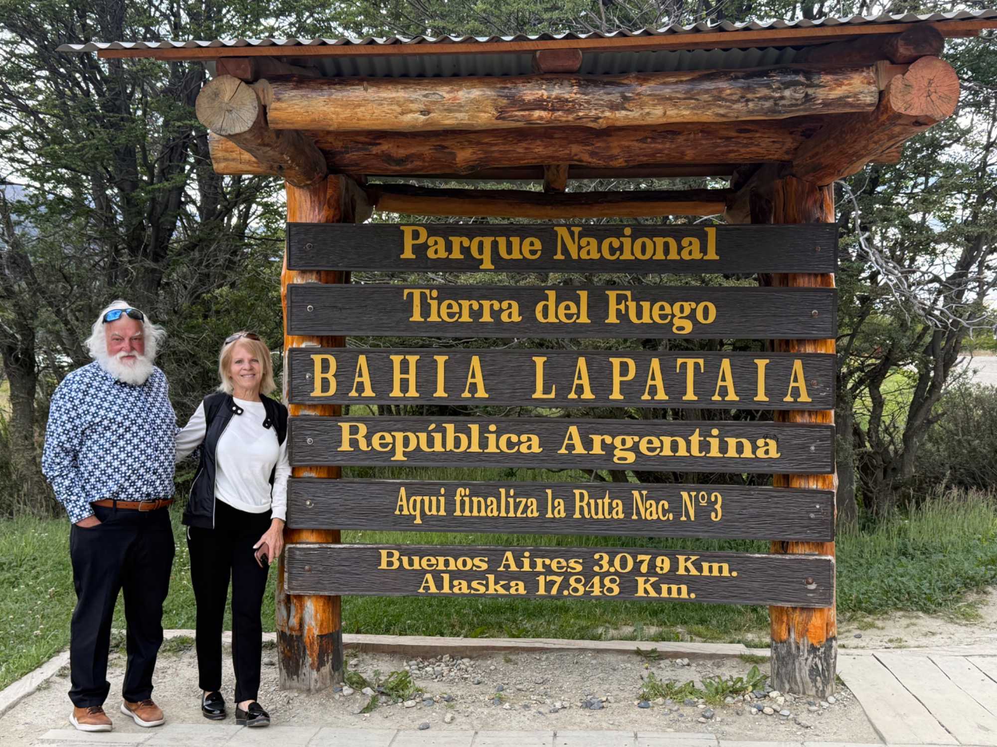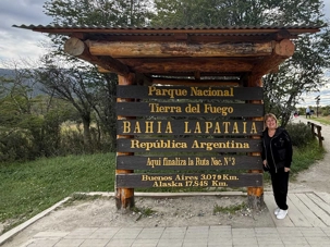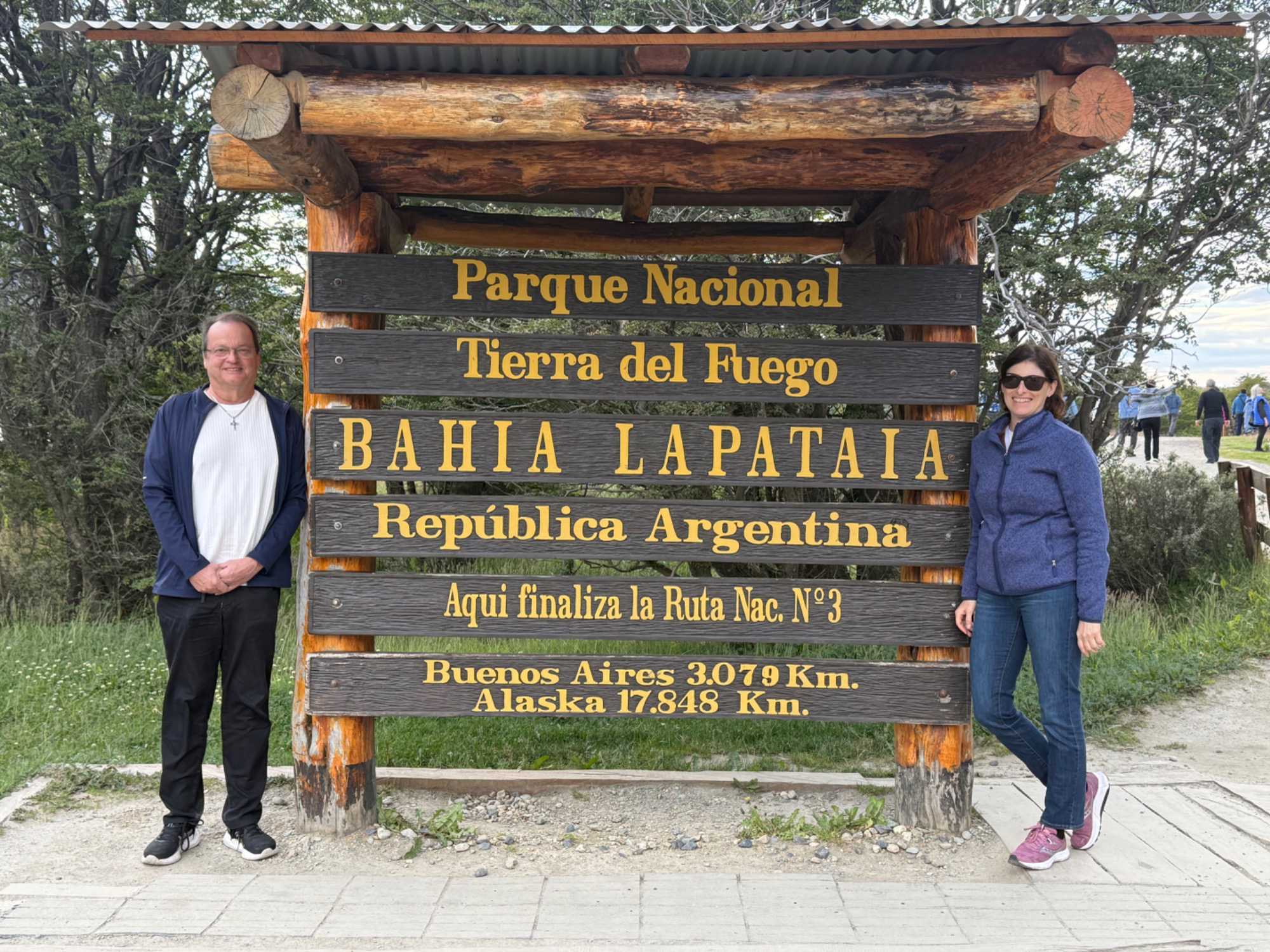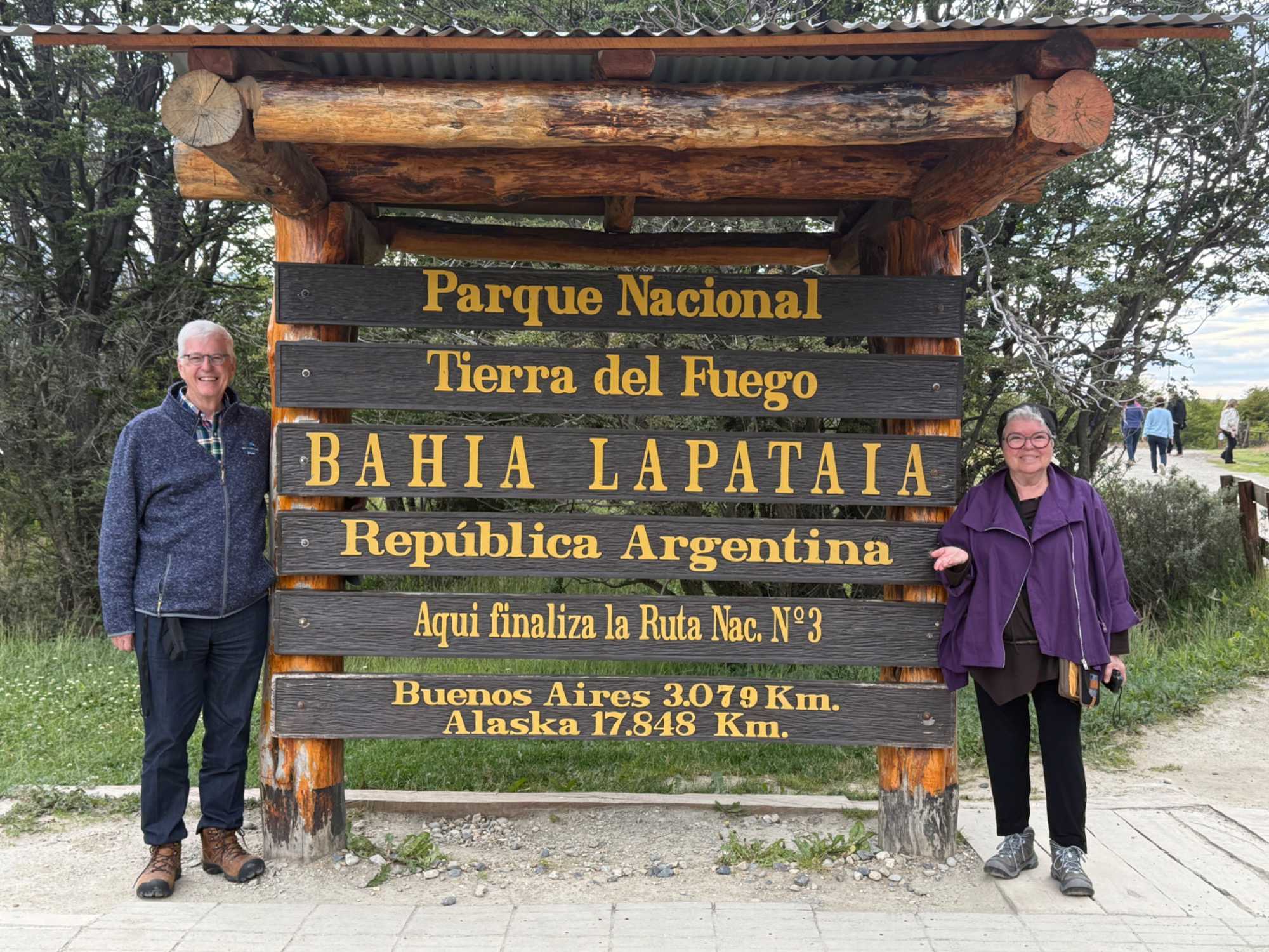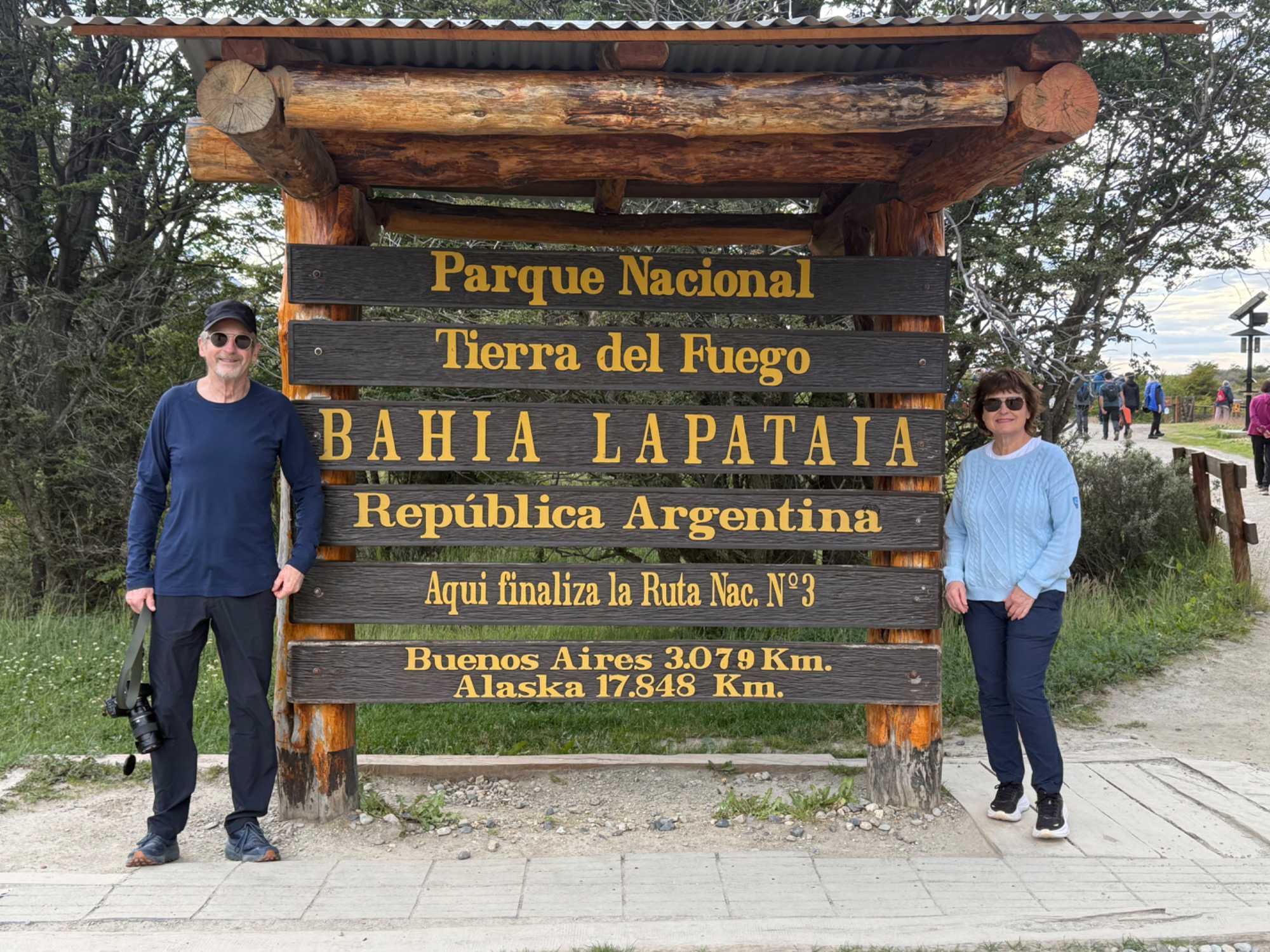 Se tenir ici, à Ushuaia, devant cette affiche marquant la fin de la route, donne une vraie sensation de bout du monde… et une belle résonance à notre propre voyage.