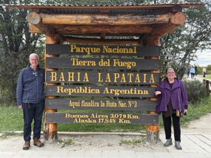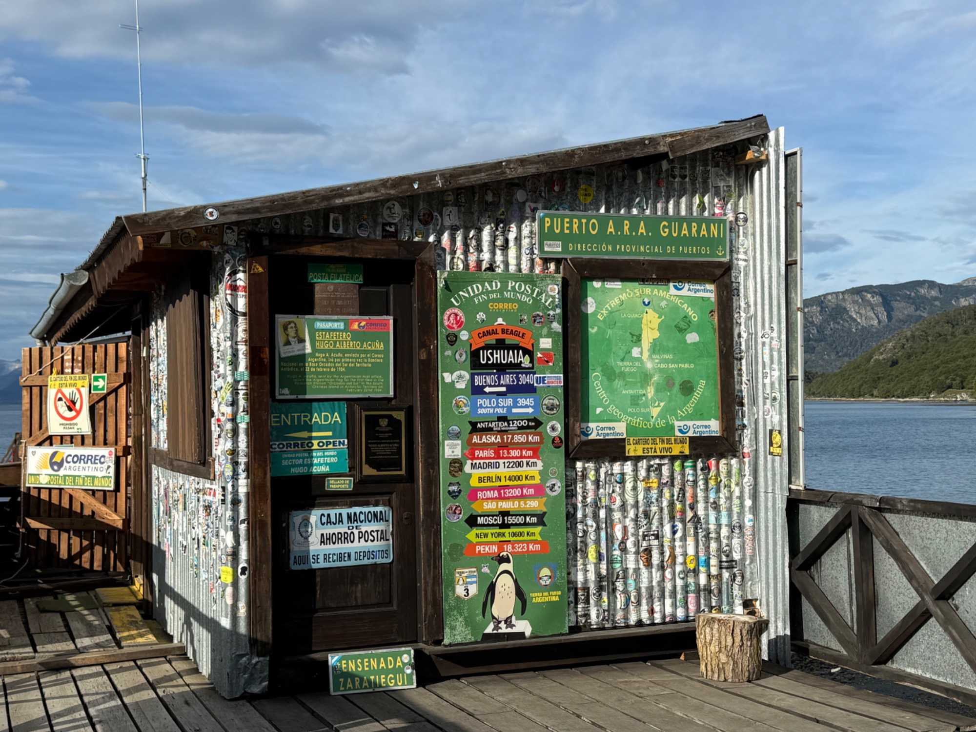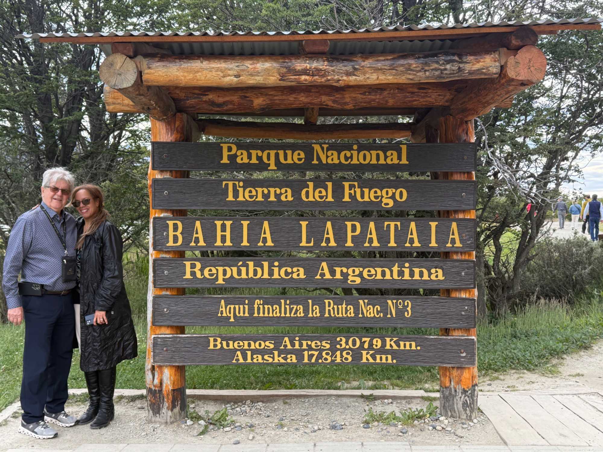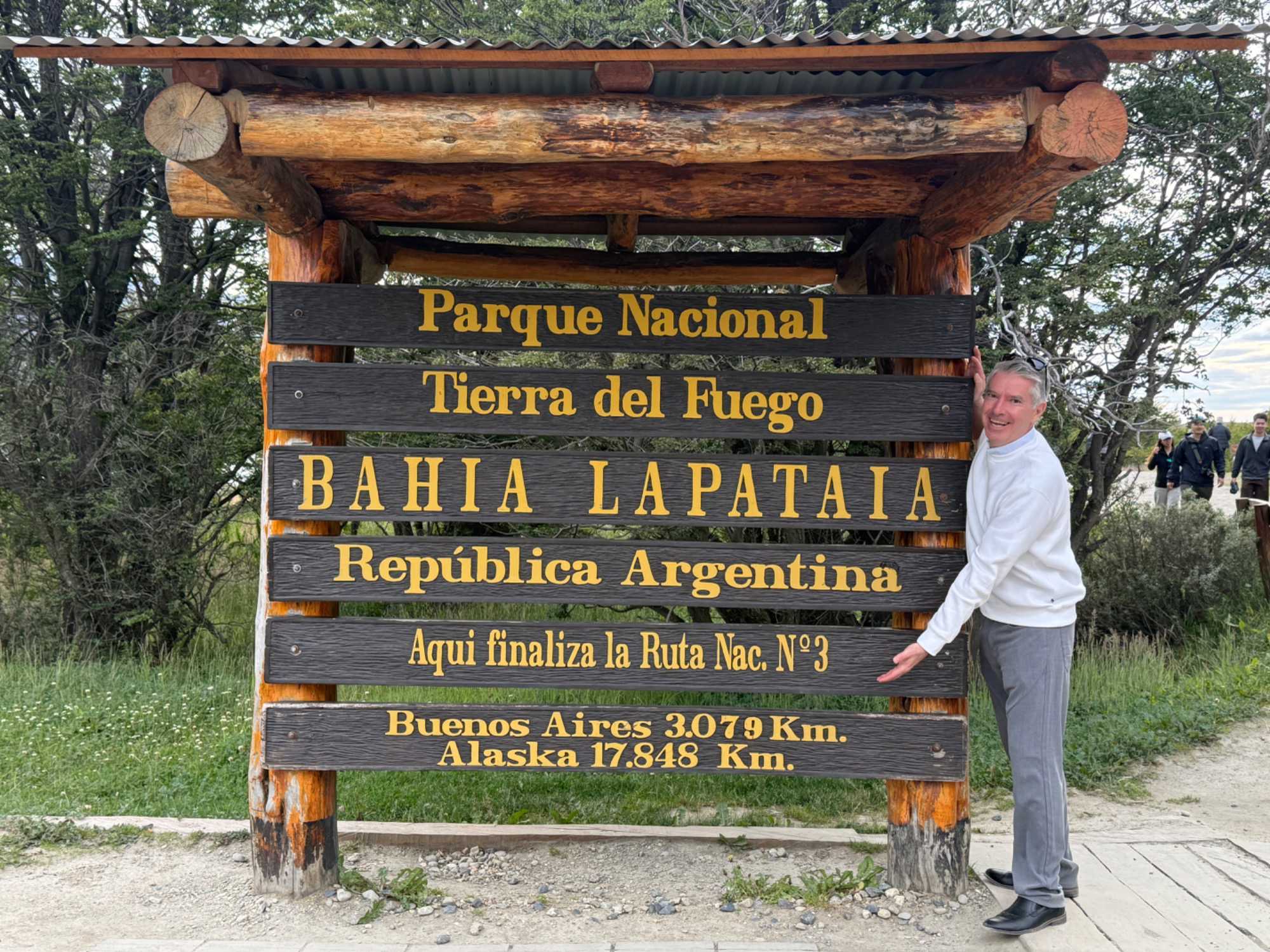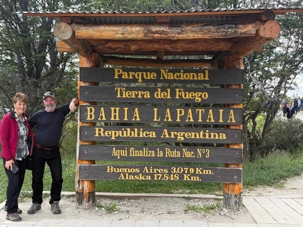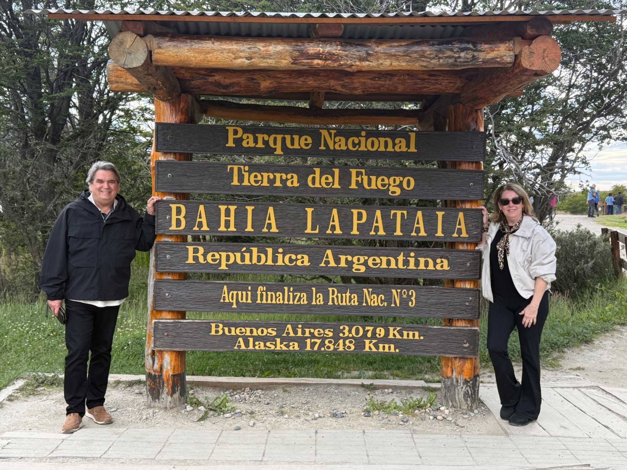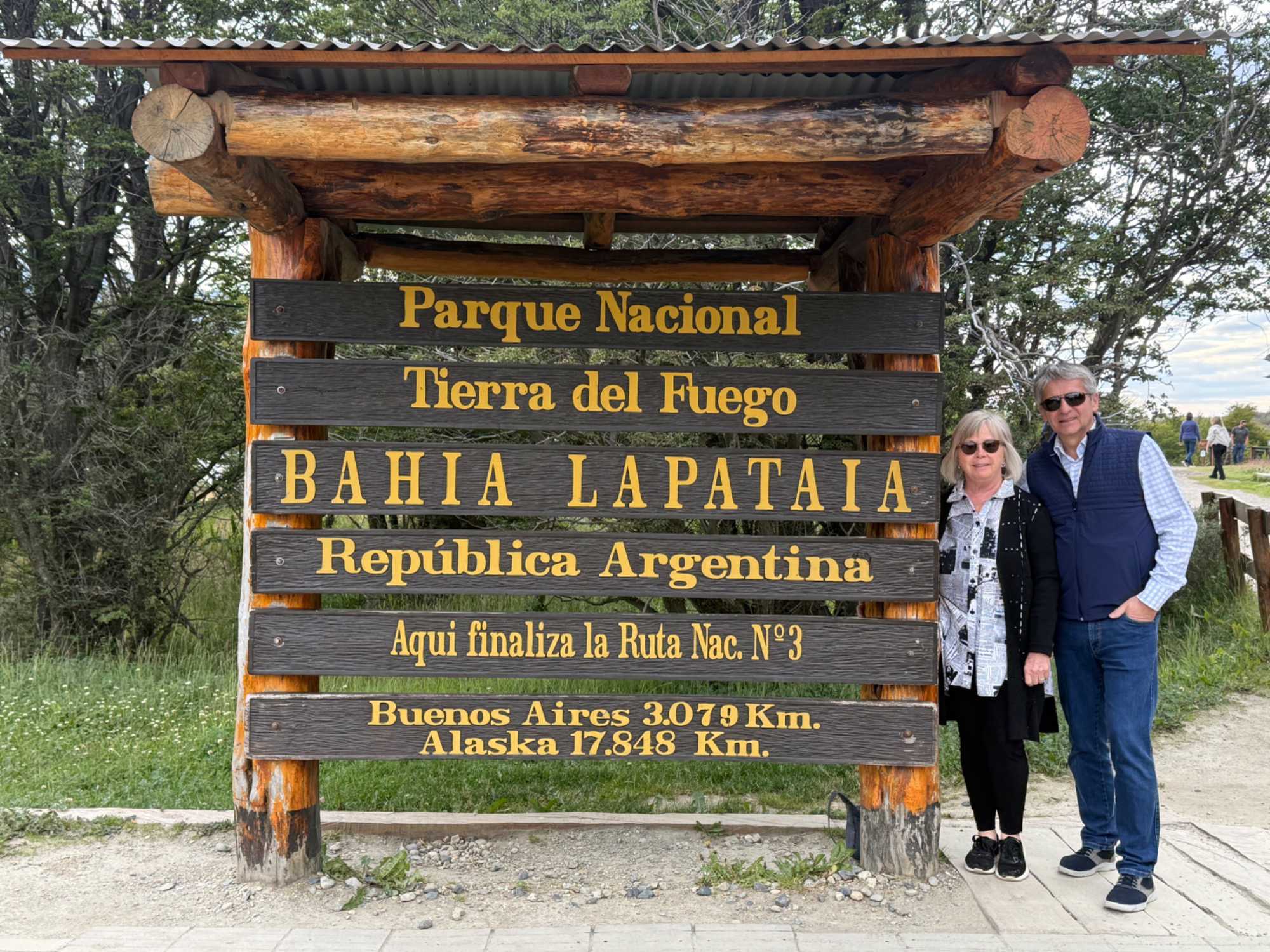 Se tenir ici, à Ushuaia, devant cette affiche marquant la fin de la route, donne une vraie sensation de bout du monde… et une belle résonance à notre propre voyage.