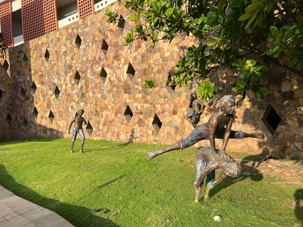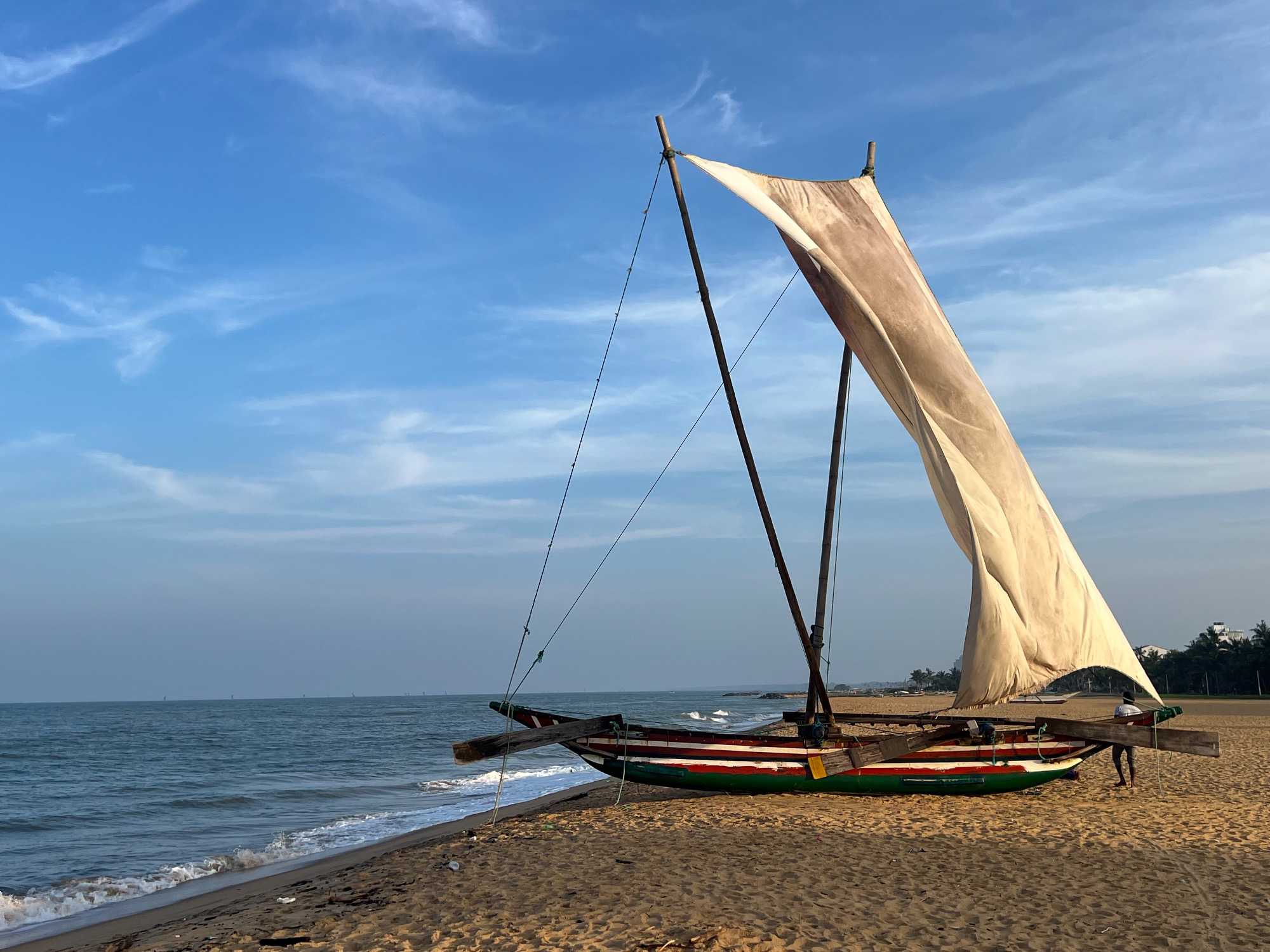 Mais avant d’aller plus loin dans mon récit de la journée, je vais vous parler un peu de la ville de Negombo. Installée au bord d’une lagune, du côté ouest de l’île, cette ville dévoile de superbes plages bordées de palmiers et de cocotiers, ponctuées de pirogues traditionnelles et de catamarans rustiques. La population est d’environ 150 000 habitants, faisant de la ville la quatrième agglomération la plus peuplée du pays et s’étend jusqu’aux frontières du district de Colombo. Dans toute la ville, crucifix et statues de saints colorées jalonnent les rues, rappelant que Negombo est un bastion du catholicisme sri-lankais.