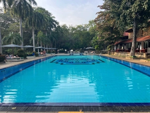 Nous arrivons finalement au Cinnamon Lodge, un hôtel 5 étoiles où nous séjournerons deux nuits. Très différent d’un hôtel traditionnel, ici ce sont plutôt des petits « bungalows » dispersés un peu partout sur un immense terrain. Situé au cœur du Triangle culturel du Sri Lanka, cet établissement est un véritable havre de paix. Les jardins sont luxuriants, la piscine est splendide, le lac est rempli de mystère avec sa brume au-dessus de l’eau.