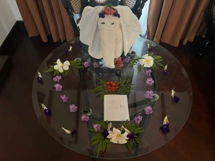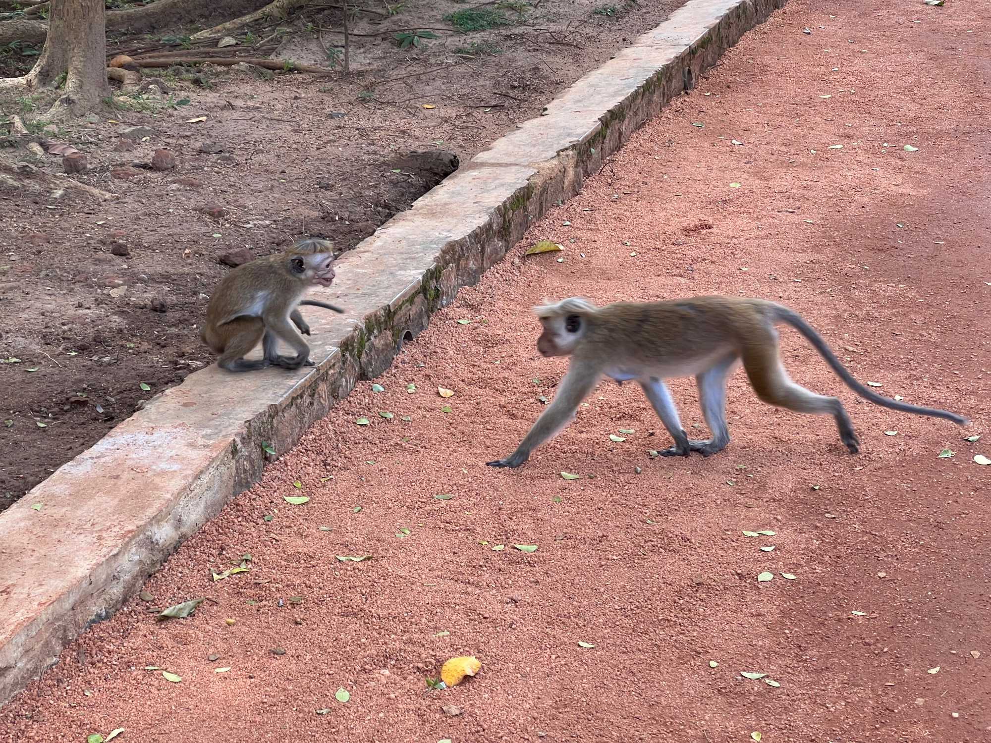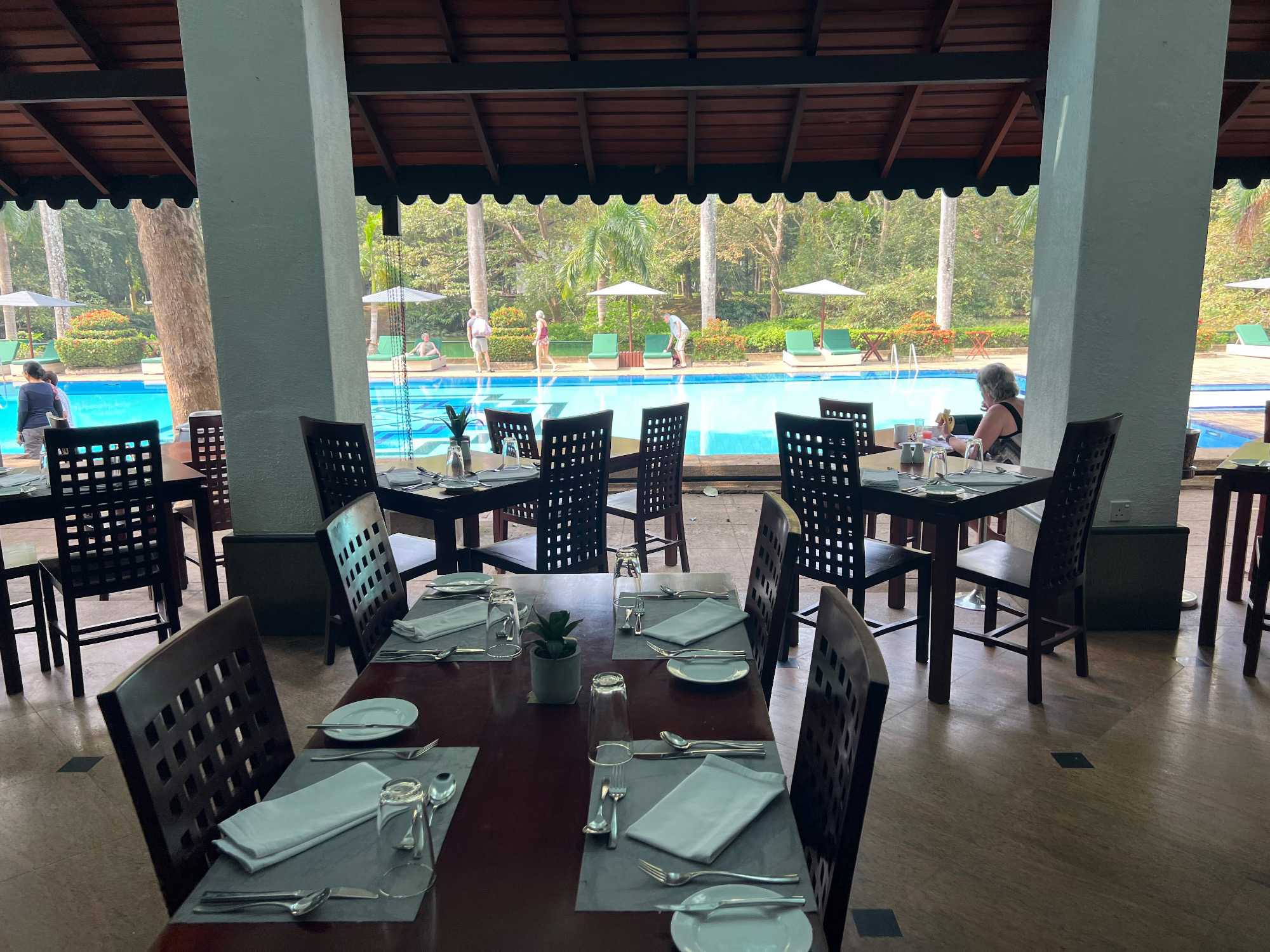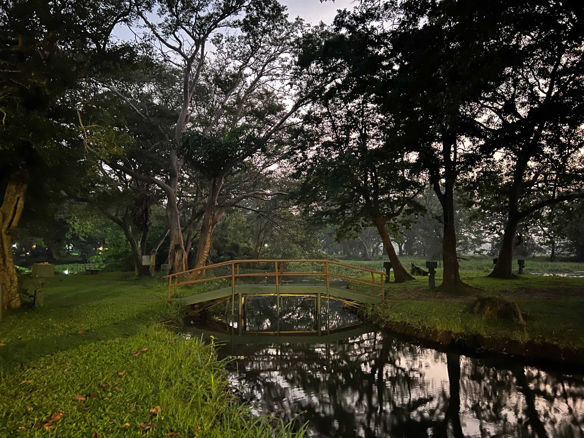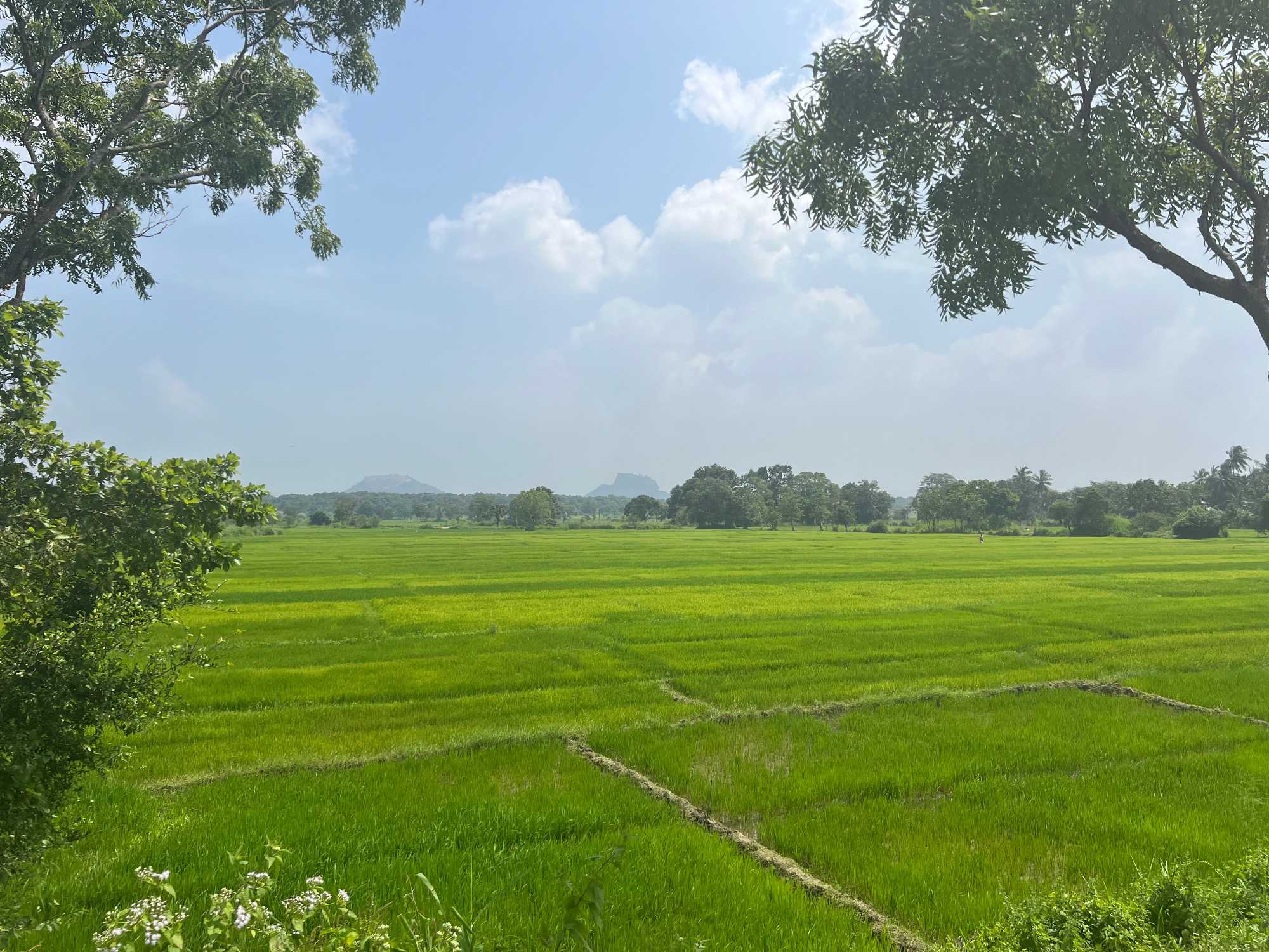 Pour nous, après cette matinée bien tranquille et sereine (nous sommes dans un endroit extraordinairement tranquille au milieu d’une végétation luxuriante), nous prenons la direction d’un lac pour un pique-nique pour le moins original. Nous descendons de l’autocar et empruntons un étroit sentier ressemblant à une digue d’environ trois mètres de large, longeant l’eau. Un peu plus loin, un petit groupe de Sri Lankais nous attend : des tables ont été dressées en plein milieu de cette digue pour nous accueillir. Chacun reçoit un collier de fleurs de nénuphar, un geste traditionnel d’hospitalité qui nous touche énormément. Installés à l’ombre des arbres, bercés par une douce brise, nous dégustons des plats typiquement sri-lankais, une expérience aussi délicieuse qu’authentique. L’accueil est sincère, les sourires vrais, et nous repartons le cœur rempli de gratitude. Cette rencontre avec les Sri Lankais nous ravi tous, ils sont si aimables et avenants. C’est déjà un gros coup de coeur pour tous!