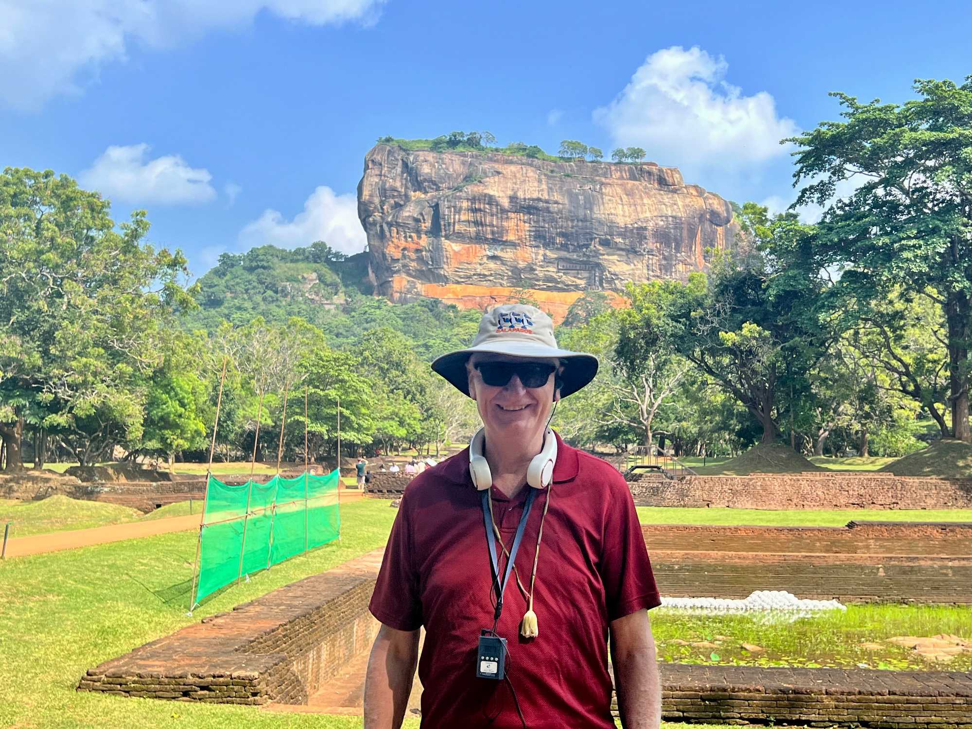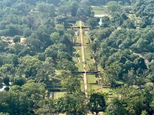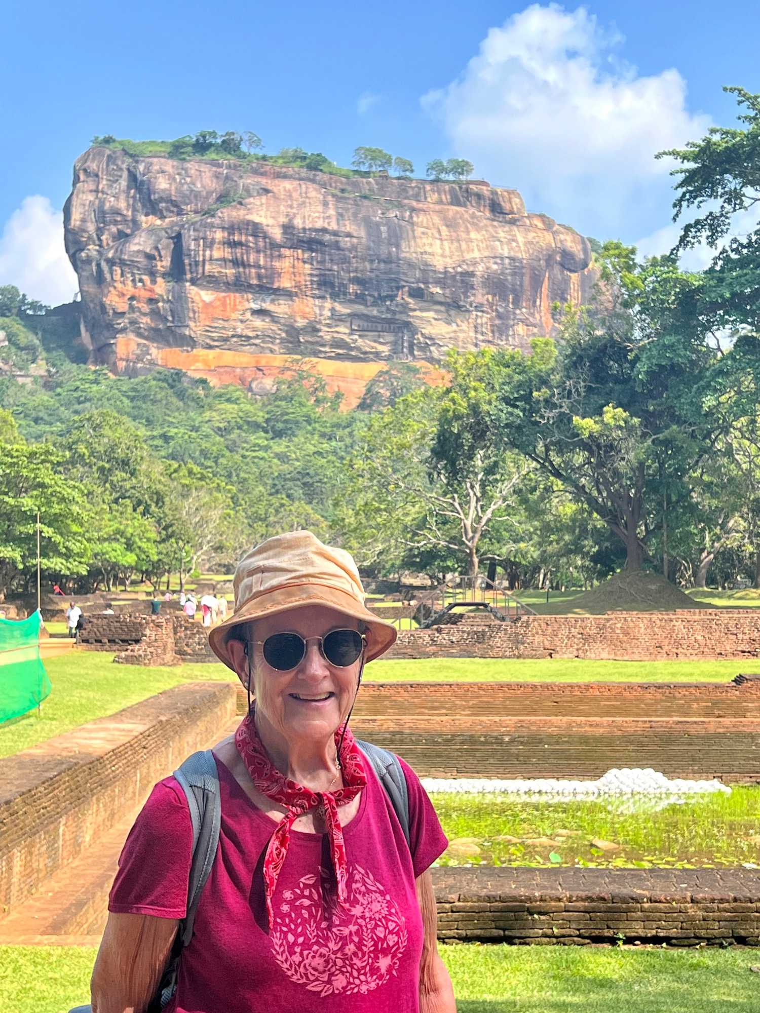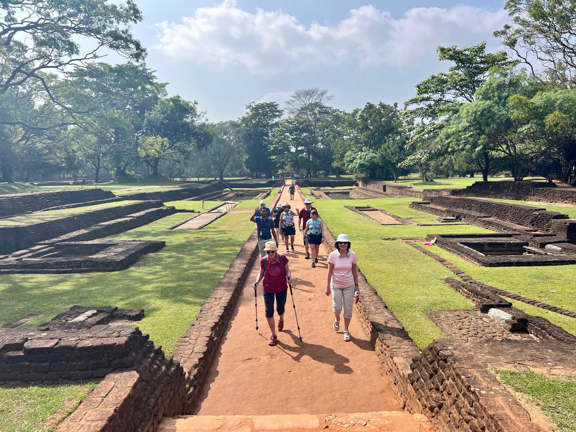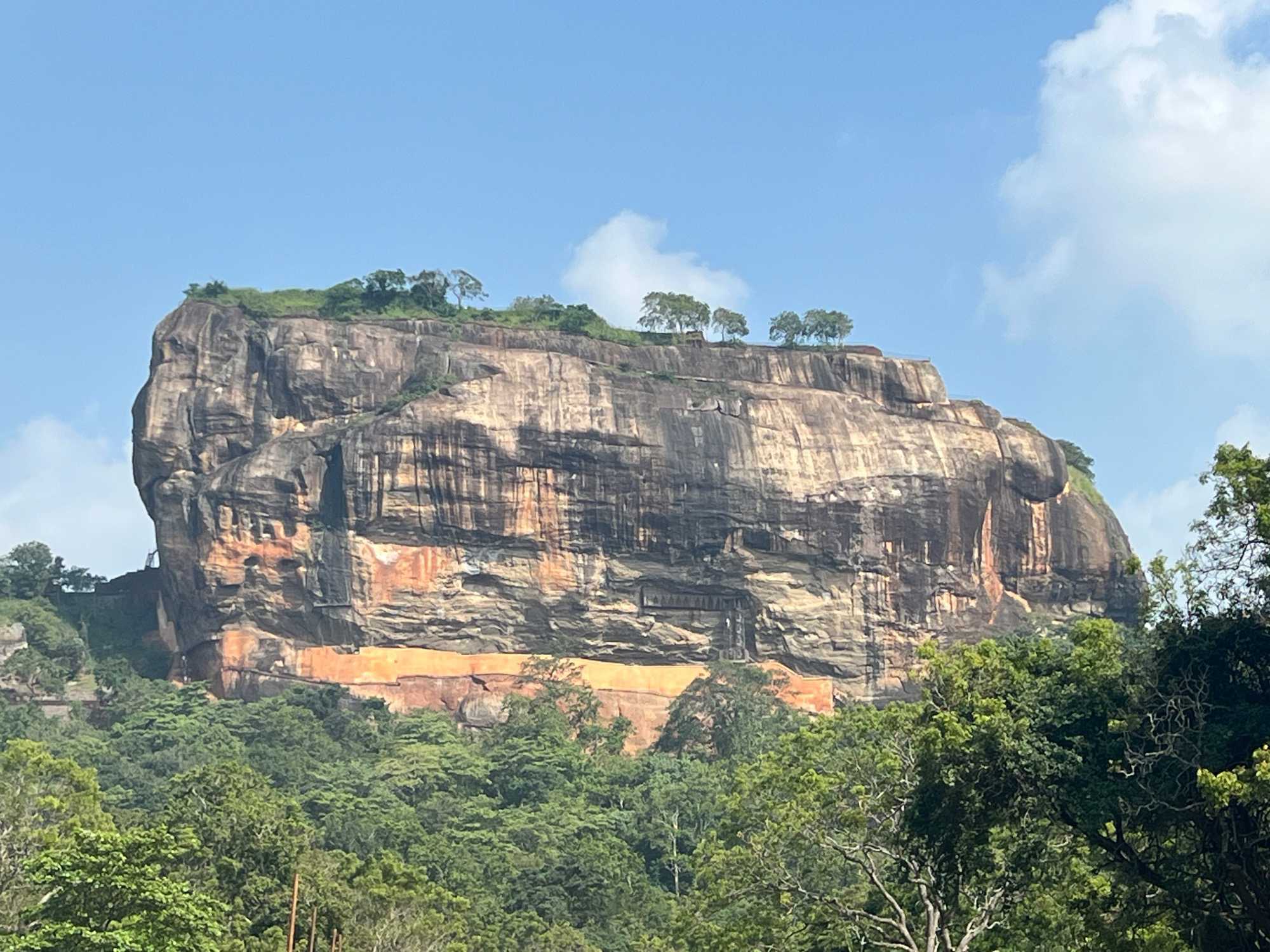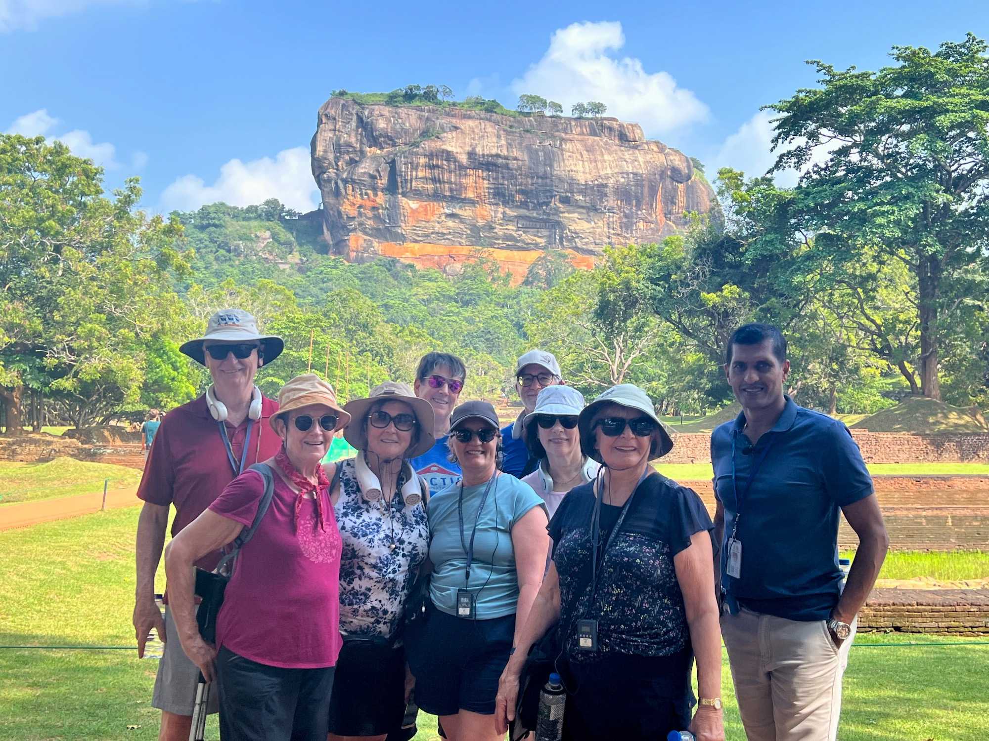 À notre arrivée, nous traversons les vastes jardins aménagés au pied du rocher. Jaya nous partage une foule d’informations fascinantes sur l’histoire et la symbolique du lieu, puis l’ascension débute. Le rocher s’élève à près de 200 mètres, et la montée se fait tranquillement, un pas à la fois. Tous les voyageurs atteignent la deuxième terrasse sans trop de difficulté. Par la suite, une série d’escaliers, de passages creusés dans la roche et de passerelles modernes nous mène à la terrasse du Lion, point de départ de la dernière portion menant aux vestiges du palais du roi Kassapa. De là, un escalier métallique permet d’atteindre le sommet — la section la plus exigeante, surtout pour ceux qui ont le vertige.