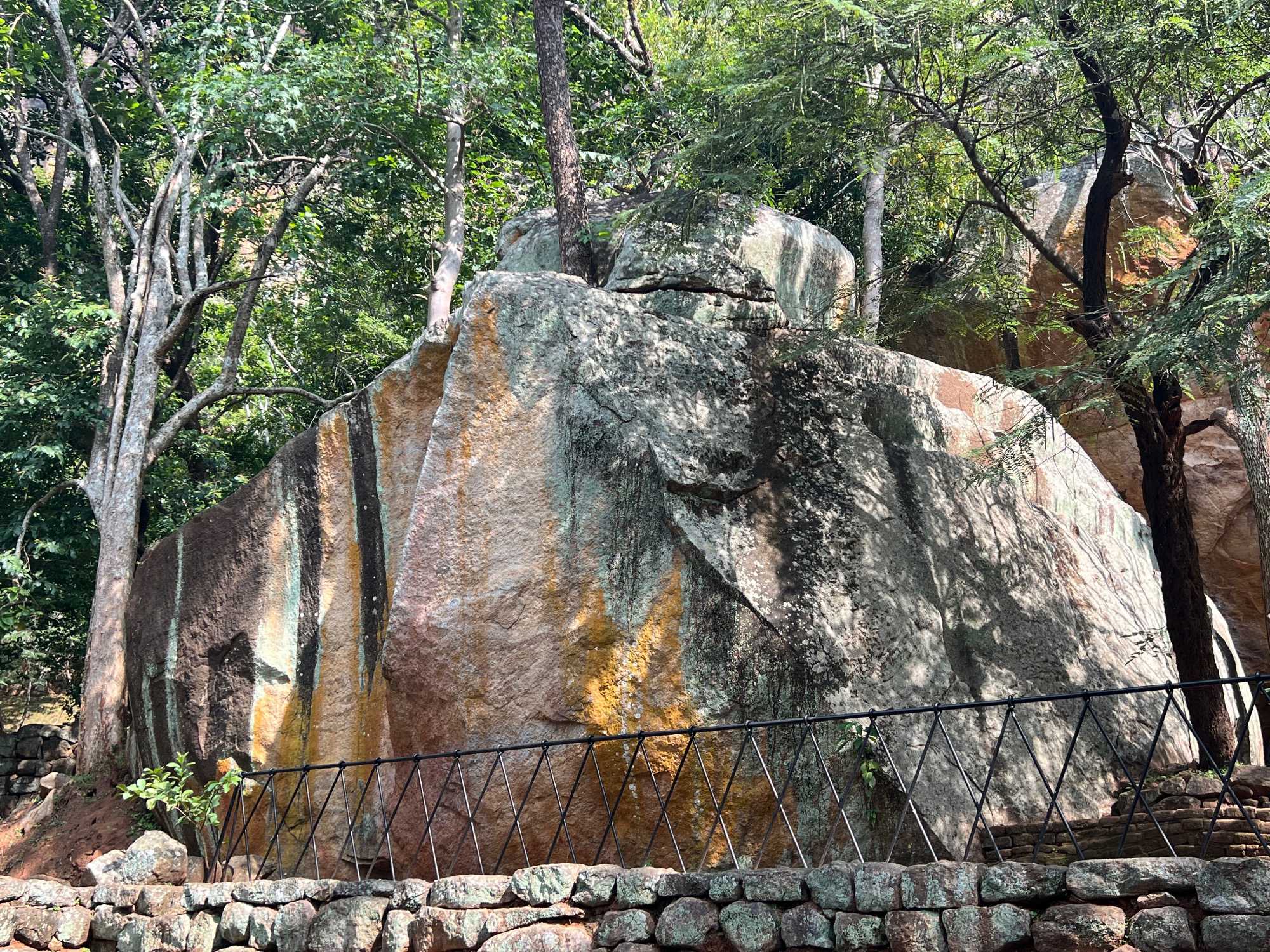Lors de la descente, un escalier métallique en colimaçon nous conduit vers l’un des trésors artistiques du site : les Demoiselles de Sigiriya. Découvertes en 1875, ces peintures murales sont les rares vestiges d’une immense fresque qui recouvrait autrefois le flanc du rocher sur 140 mètres de long et jusqu’à 40 mètres de haut. Seuls deux fragments ont traversé le temps, préservés dans une cavité naturelle. On y admire une vingtaine de jeunes femmes tenant des fleurs de lotus, accompagnées de servantes portant des plateaux d’offrandes. Ce fut une très belle randonnée. Nous sommes de retour à l’hôtel en peu de temps.