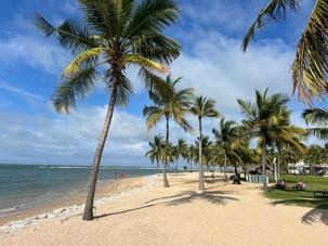 Aujourd’hui nous sommes bien chanceux: la pluie s’est arrêtée avant 9h. Pour le reste de la journée: quelques nuages et de belles périodes ensoleillées. Ça fait du bien. Beaucoup de vent aussi, comme vous pourrez le constater sur les photos. Un temps idéal de 26-27 degrés et l’eau de mer qui est pas mal à la même température, un vrai bonheur de s’y baigner!