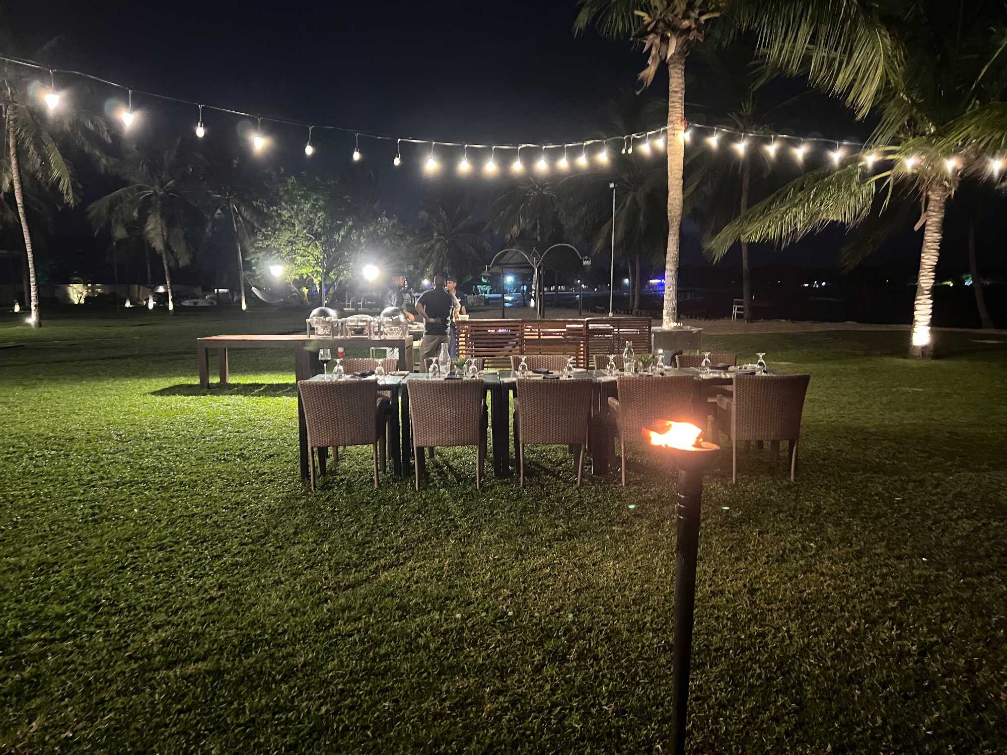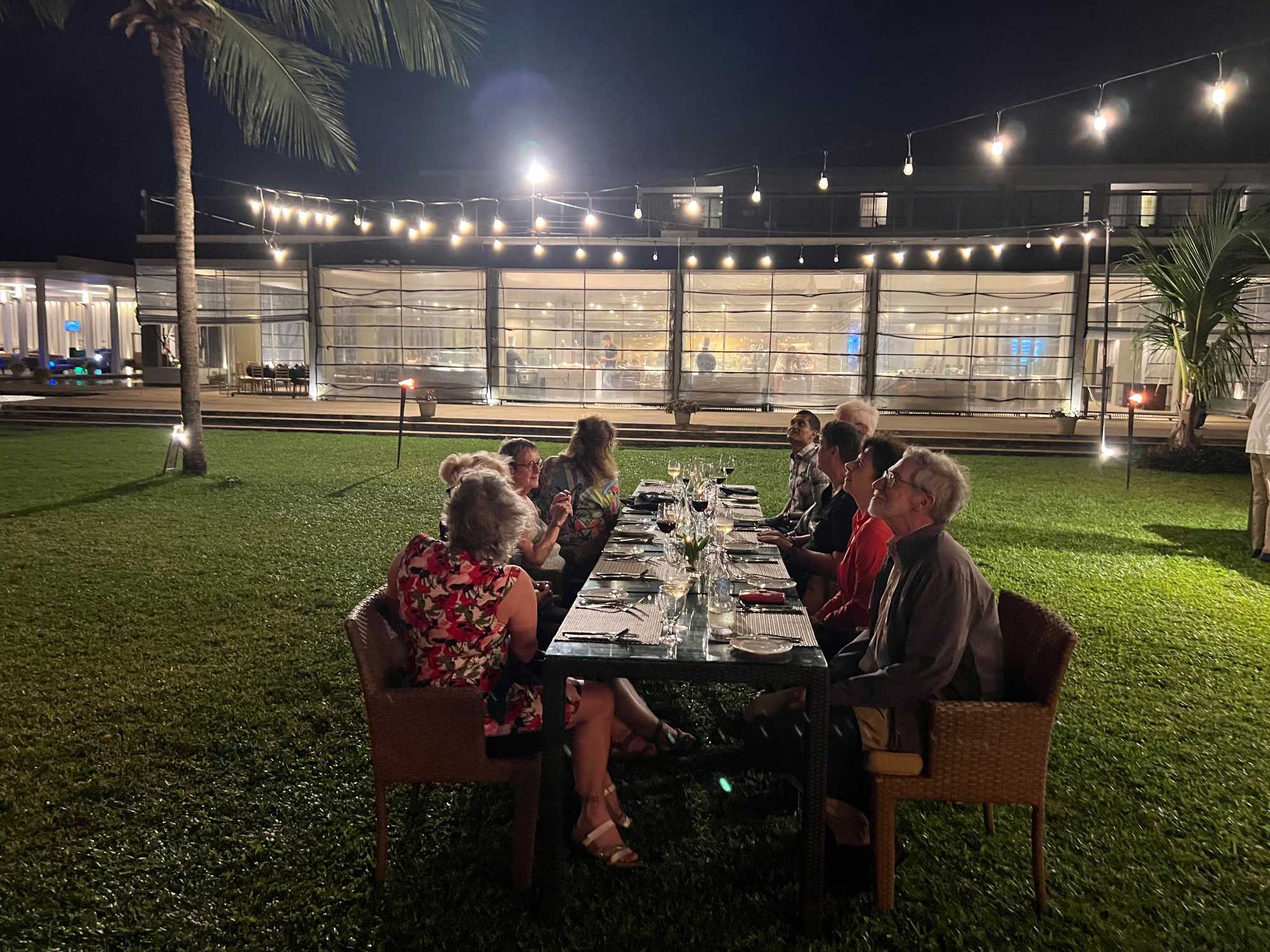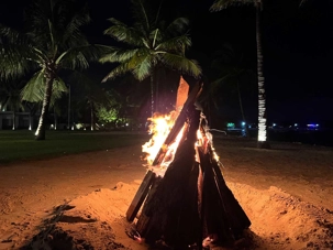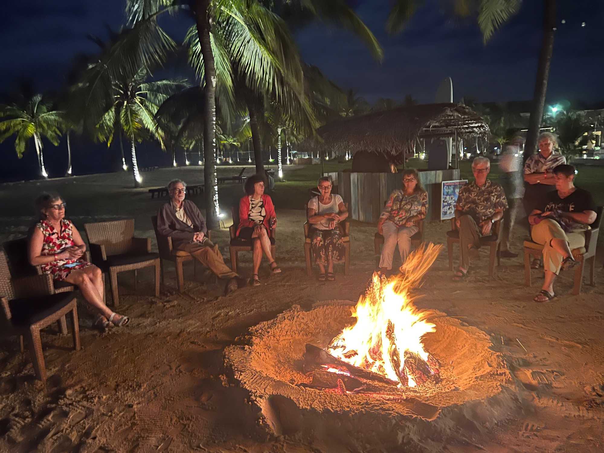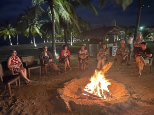 Et puis, une belle surprise attend nos voyageurs… Ce soir, nous les convions à un souper BBQ directement sur la plage, mettant à l’honneur fruits de mer, poissons et viandes grillées. Des flambeaux illuminent le site. Souper à la belle étoile, sous un ciel clément et une température idéale, c’est tout simplement merveilleux. Le repas est délicieux. On nous prépare même un feu de camp sur la plage! Dès notre repas terminé, on s’approche du feu et on chante toutes nos bonnes vieilles chansons de feu de camp. On se souvient même de « Trois p’tits chats »!