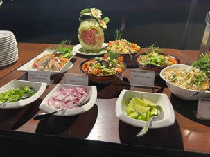 Le dîner était encore laissé au choix de chacun aujourd’hui, mais comme d’habitude, on se retrouve tous à la même heure à la même table pour partager notre repas 😄. Le buffet offrait une belle variété de plats, capable de satisfaire tous les palais.