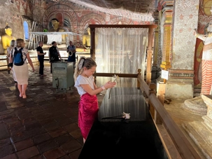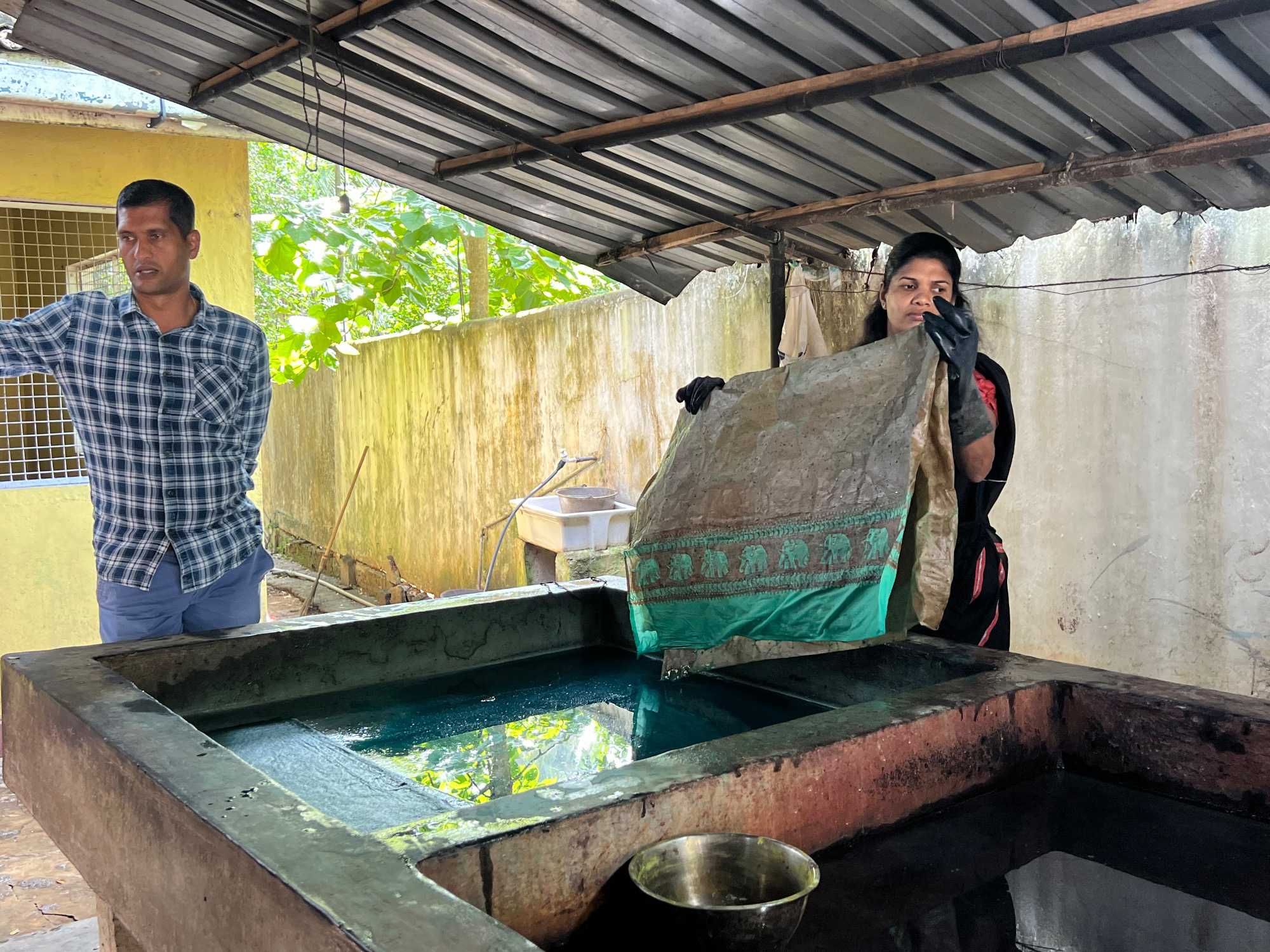 Notre journée se poursuit par la visite d’un atelier de soie, où on retrouve de magnifiques tissus. On s’amuse à porter le sari pour les photos, elles sont très jolies, allez les voir!