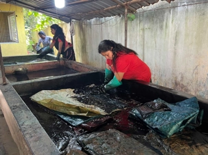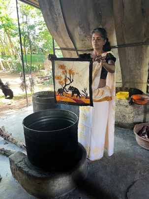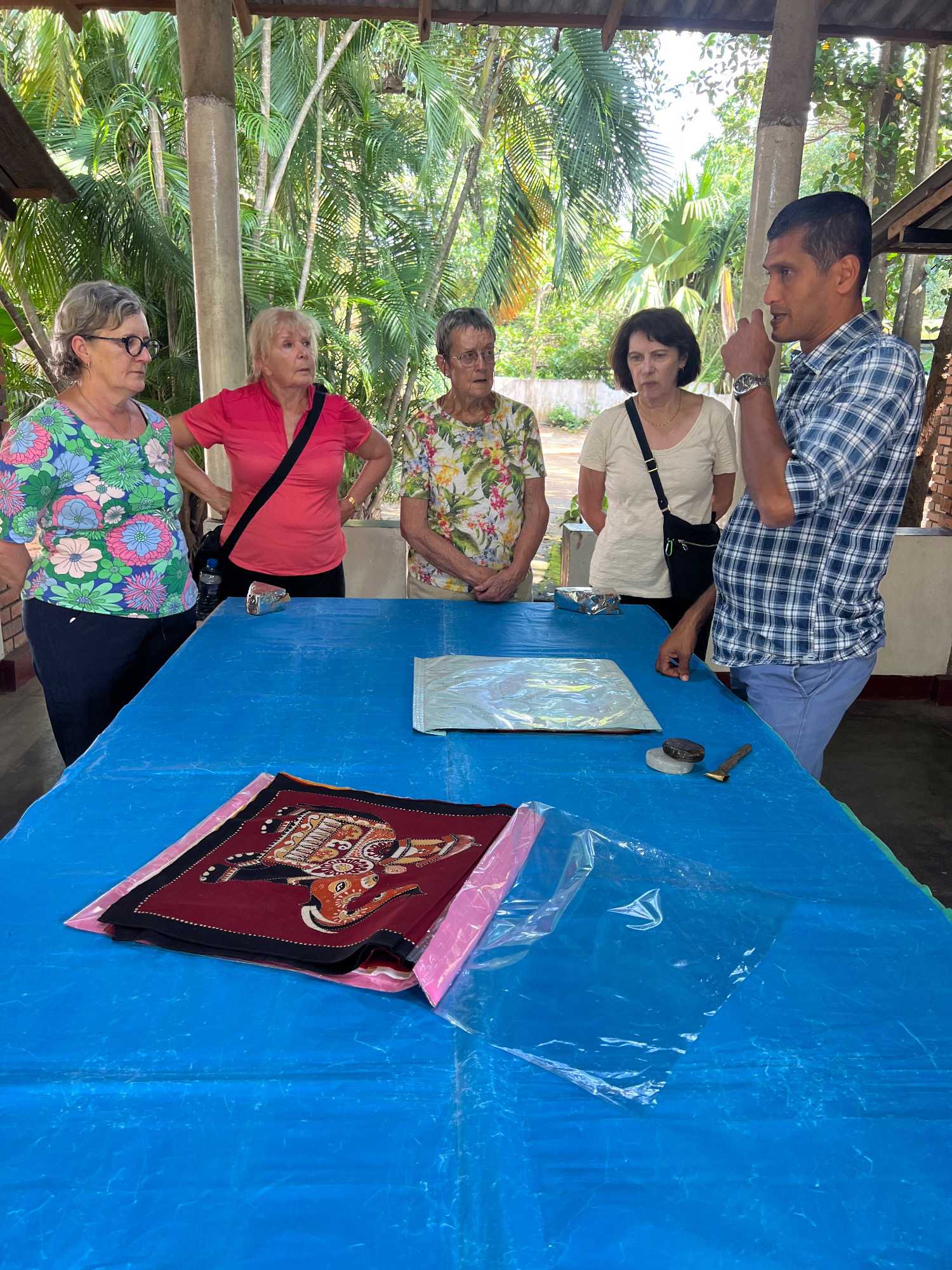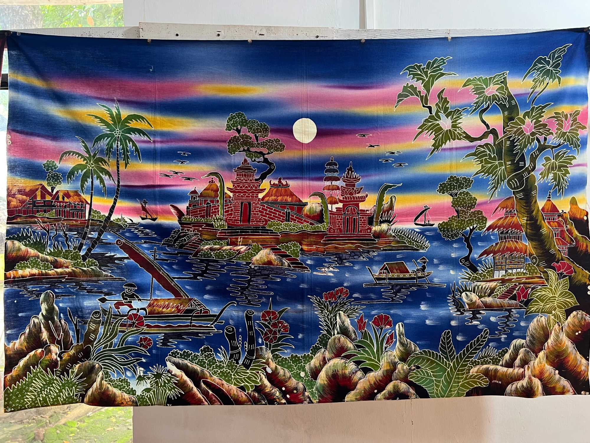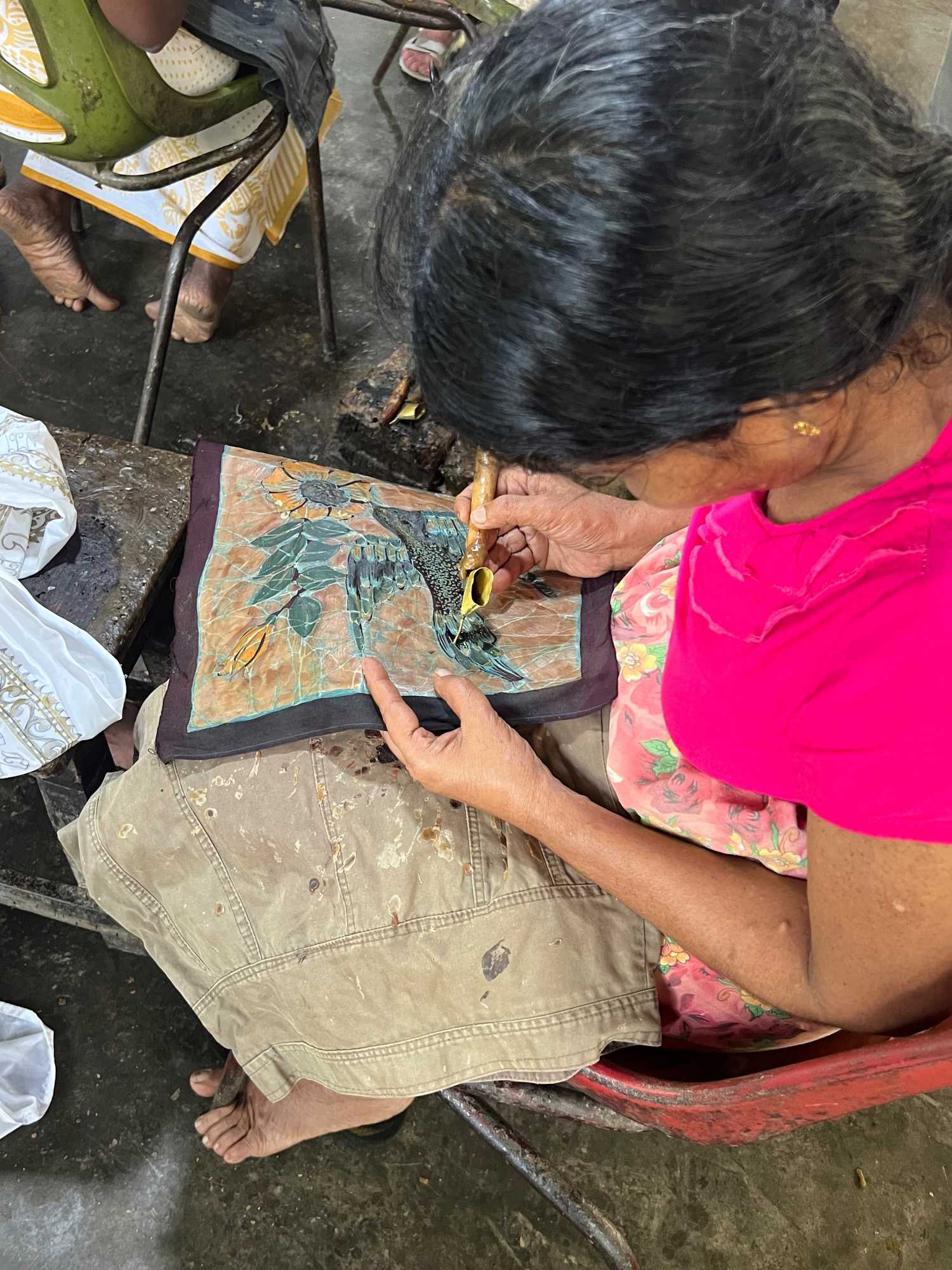 Nous poursuivons avec un atelier de batik. Cet art ancestral de teinture textile, qui utilise de la cire chaude pour dessiner de jolis motifs, nous fascine. Les artisanes, patientes et minutieuses, transforment chaque tissu en une pièce unique. Nous sommes émerveillés par leur talent et leur savoir-faire.