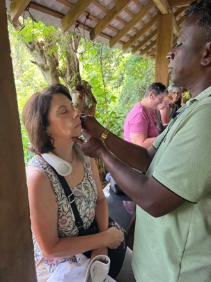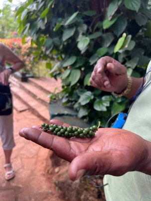Nous arrivons à Matale, où nous visitons un jardin sri lankais. Cette ville est réputée pour ses jardins d’épices. Ce lieu foisonne de plantes aromatiques et médicinales, et nous sommes captivés en apprenant comment sont utilisés la cannelle, la cardamome, le poivre, le clou de girofle et bien d’autres trésors. Les explications de notre guide nous permettent de comprendre l’importance de ces épices, tant dans la cuisine que dans la médecine traditionnelle. Pour les amateurs de botanique, c’est une véritable explosion sensorielle : couleurs, parfums et textures éveillent tous nos sens.