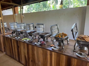 Nous prenons la route en direction de Kandy, au centre-sud du pays. En chemin, notre guide nous parle d’un plat emblématique qui représente à lui seul l’essence de la cuisine sri-lankaise : le riz au curry. Ce mets traditionnel se compose de … riz (🤪) accompagné de plusieurs currys différents. Qu’ils soient à base de légumes, de poisson ou de viande, chaque curry est savamment relevé d’épices et adouci par le lait de coco, créant un équilibre de saveurs.