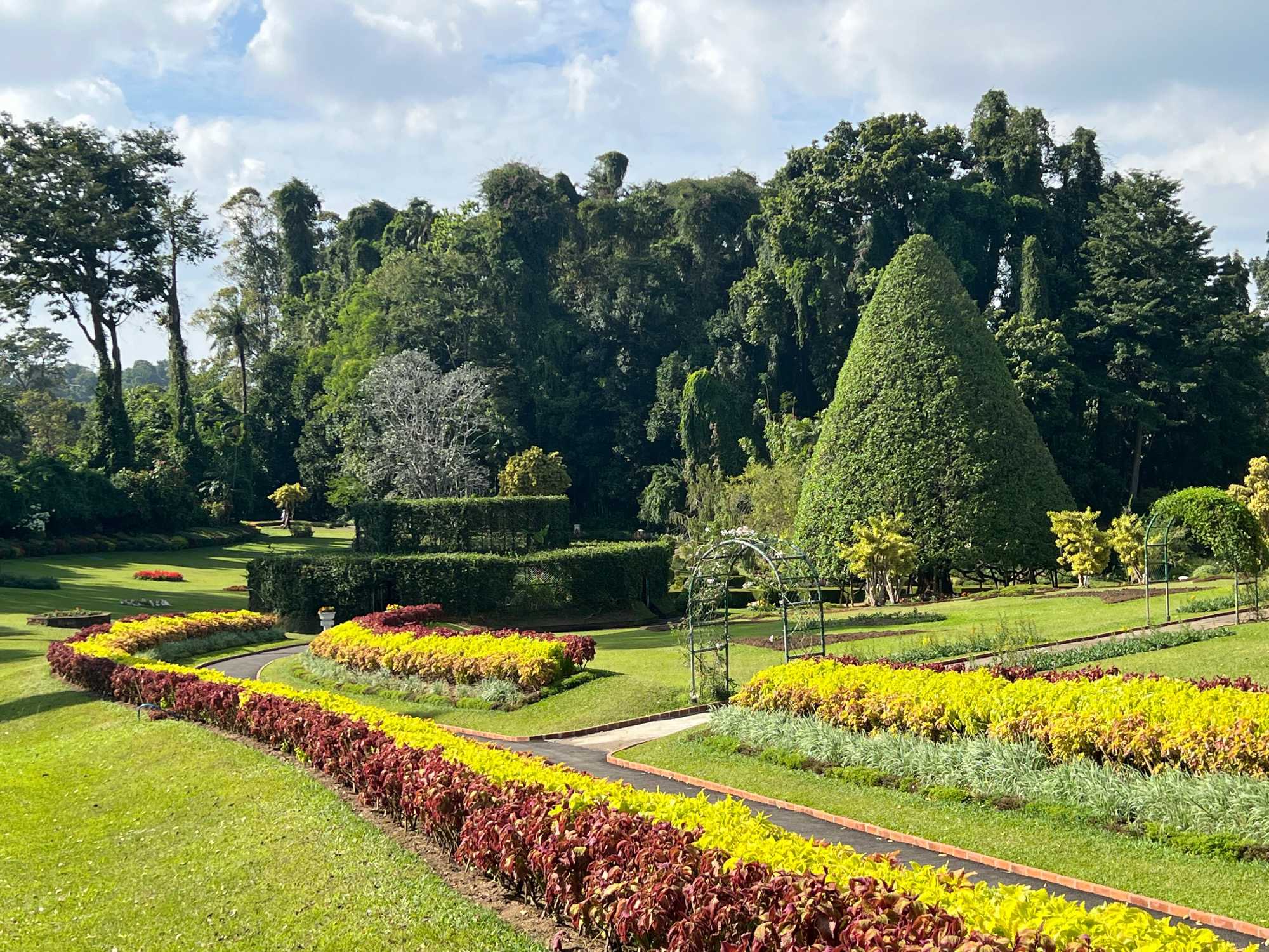 Puis, retour sur la route vers Kandy. Puisque nous avons un peu d’avance et que le temps est splendide, notre guide nous propose de visiter dès aujourd’hui le Jardin botanique de Peradeniya. Quelle excellente idée! Considéré comme le plus beau jardin du Sri Lanka — et l’un des plus impressionnants au monde — ce site est un véritable joyau. Aménagé à la fin du 18ᵉ siècle comme parc royal, il fut transformé en jardin botanique par les Britanniques en 1821. Aujourd’hui, il abrite plus de 4 000 espèces végétales, réparties sur 60 hectares de verdure luxuriante. Orchidées éclatantes, arbres gigantesques dignes du film Avatar, compositions florales… un véritable festin pour les yeux! Autrefois réservé à la royauté de Kandy, ce jardin est désormais accessible à tous, et nous avons savouré chaque pas de cette magnifique promenade.