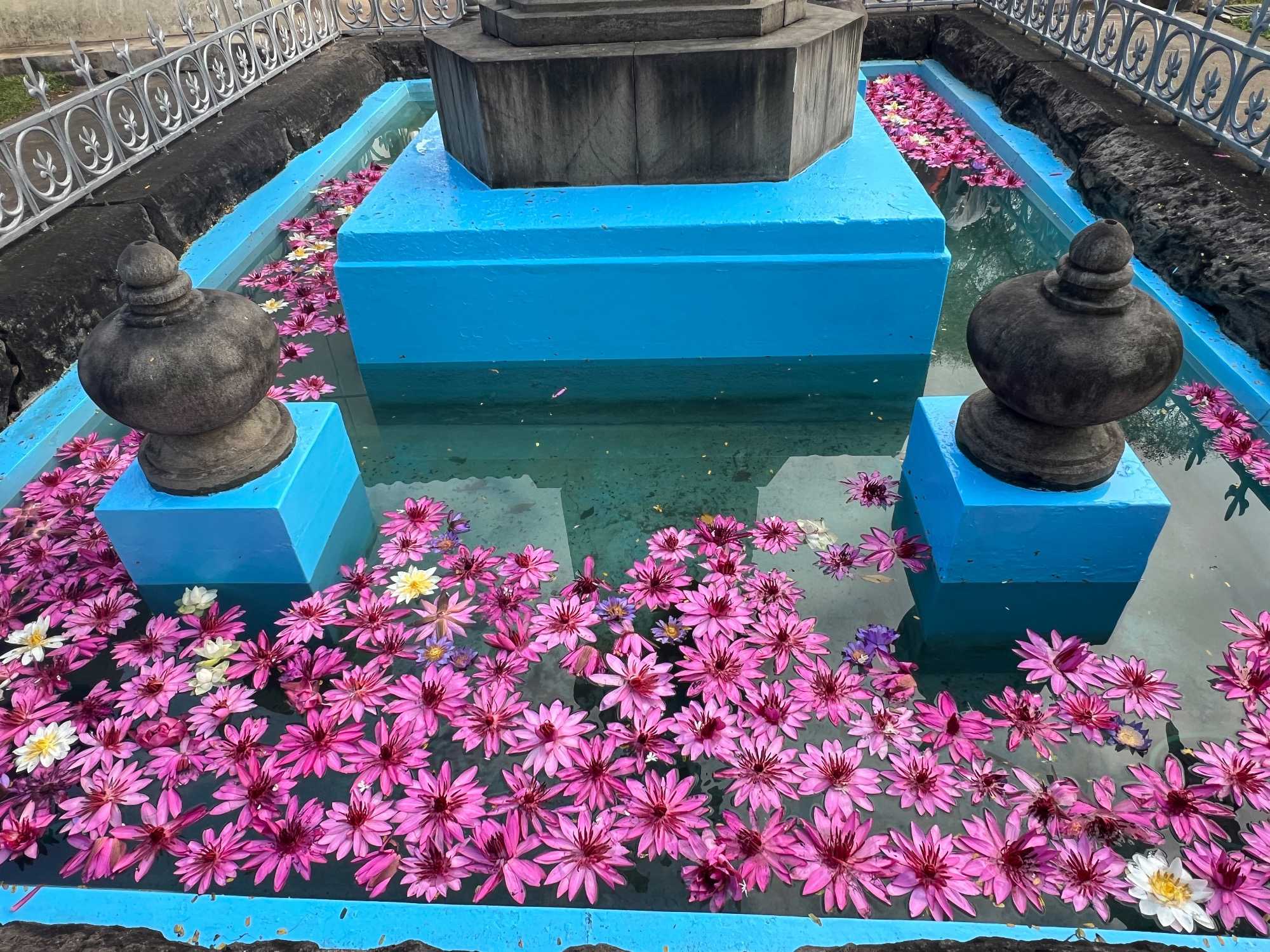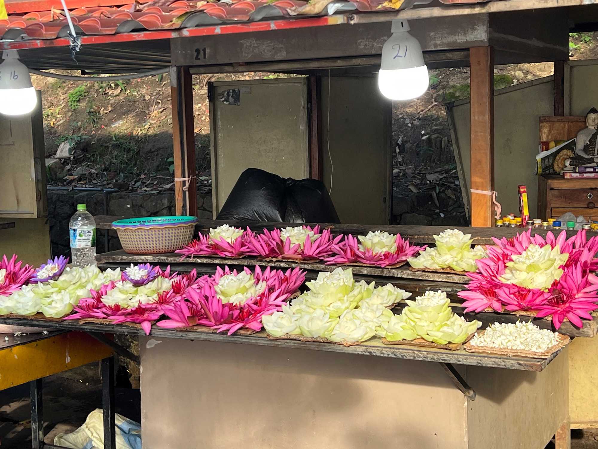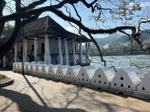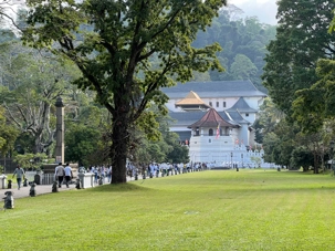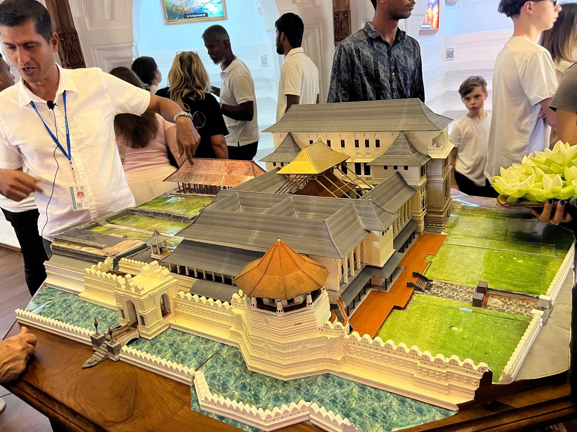 La dent sacrée est conservée dans un reliquaire doré en forme de stupa, dissimulée à l’intérieur de six coffrets gigognes. Trois cérémonies quotidiennes permettent l’ouverture symbolique de l’espace où se trouve la relique. Nous assistons à celle de 9 h 30. Même si la dent elle-même n’est pas visible — on aperçoit plutôt son écrin doré — l’émotion est palpable. La foule est nombreuse, composée de fidèles en prière, et de touristes qui font comme nous. Après quelques autres découvertes à l’intérieur et autour du temple, nous poursuivons notre programme vers notre deuxième visite de la journée.