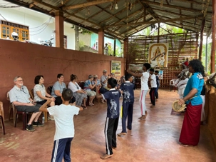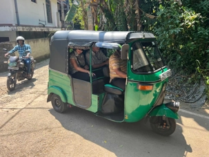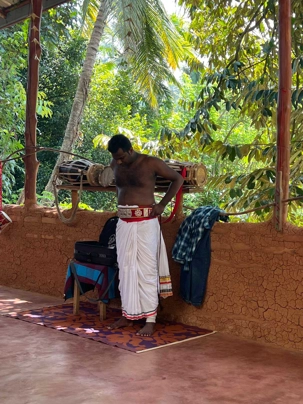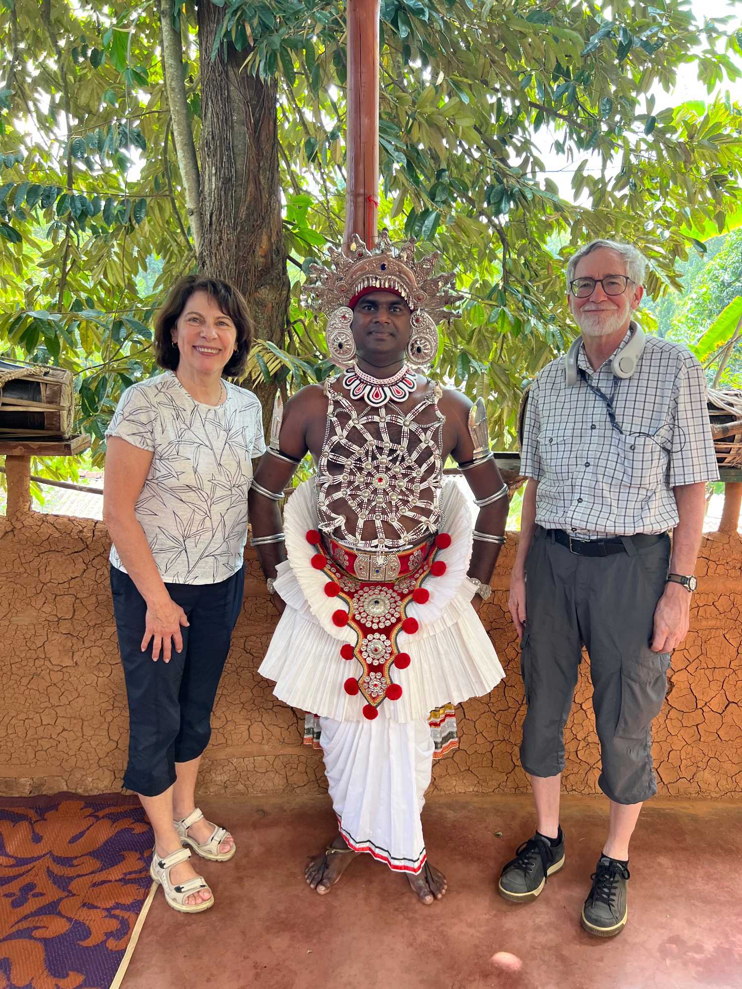 Grâce à notre guide, nous avons la chance d’aller dans une école de danse traditionnelle. Nous offrons les services de tuk tuk pour le dernier bout de chemin que le bus ne peut faire. À l’école, le professeur nous reçoit et Jaya nous décrit les instruments de musique utilisés. Puis, un danseur professionnel arrive, et se déshabille! Oui oui! C’est en collant blanc qu’il met morceau par morceau de son costume de 32 pièces (alors que le costume total en contient 64!). Ça nous permet de réaliser toute la complexité du costume. Puis nous avons droit à une belle danse privée, juste pour nous. À la fin de sa prestation, de jeunes étudiants viennent nous montrer leur savoir-faire. C’est vraiment mignon. Puis, séance de photos pour tous! Nous avons une belle photo de famille à vous montrer. Un véritable coup de cœur!