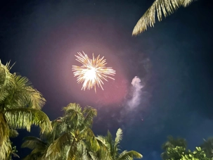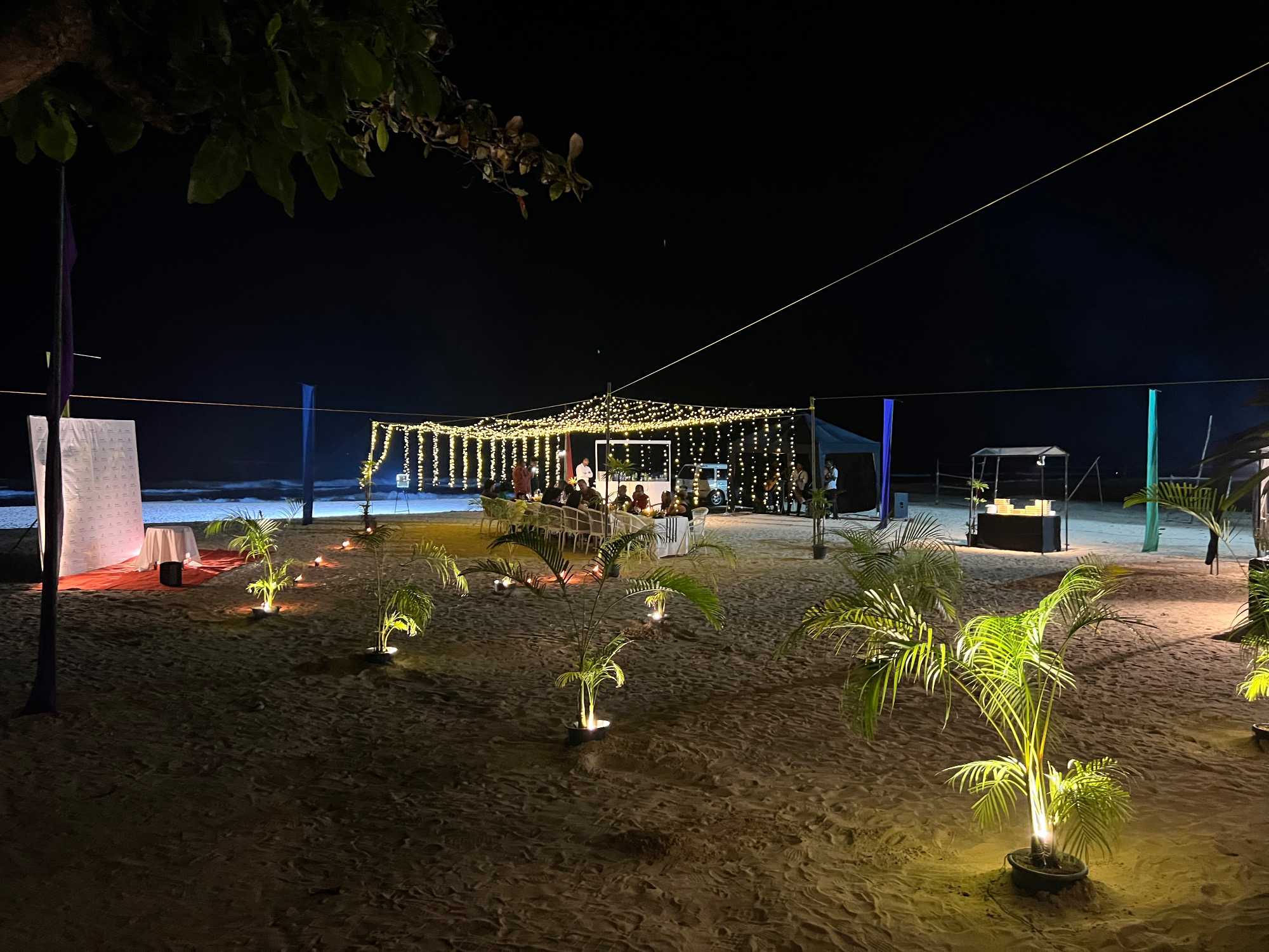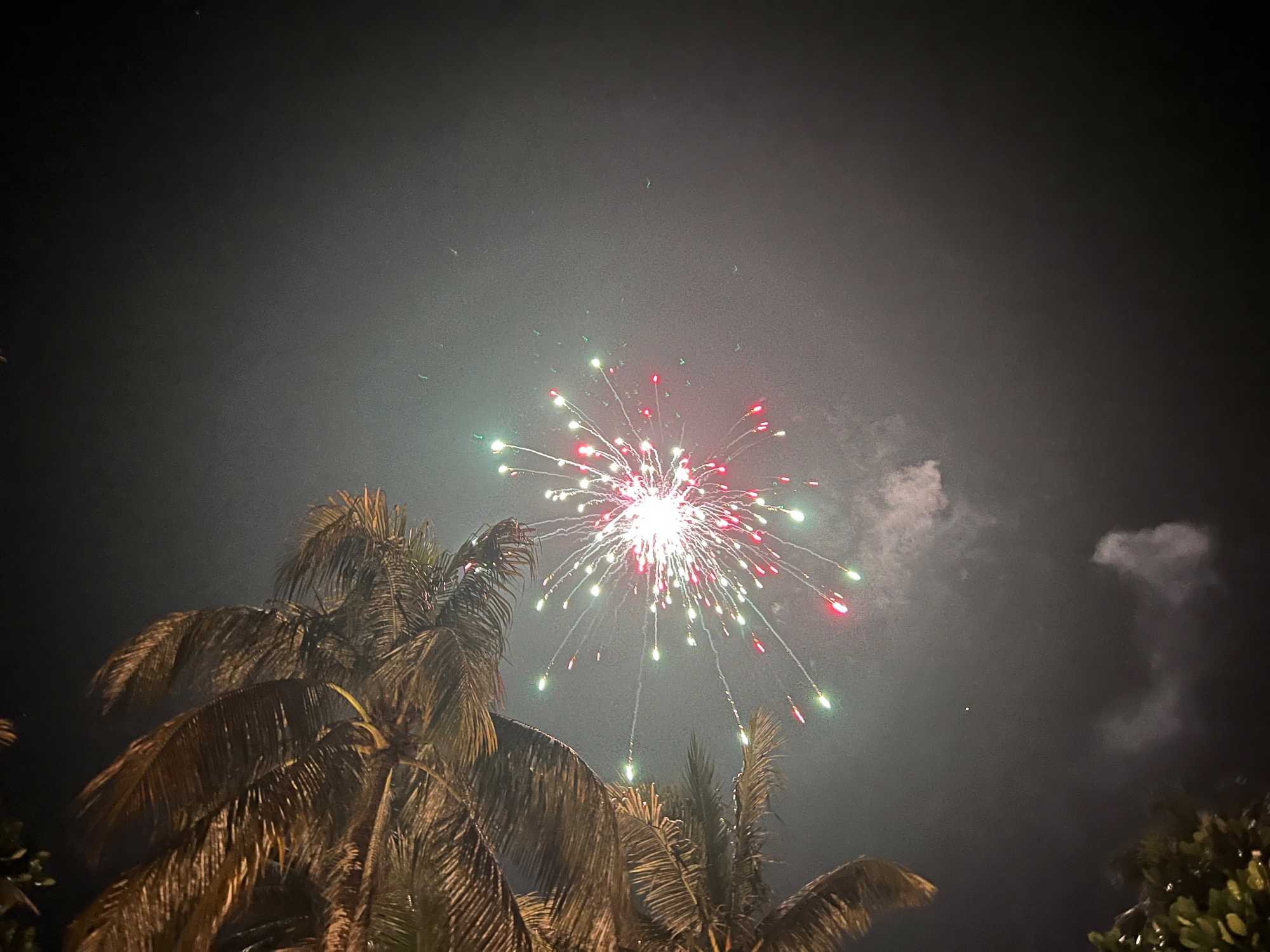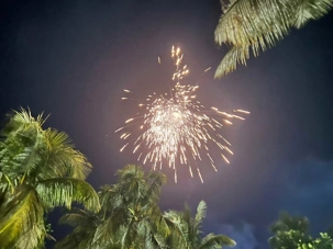 Ça été suivi par un petit feu d'artifice, aussi sur la plage. Nous avons également des musiciens/chanteurs qui nous divertissent. Nous passons une belle soirée (alors que certains jouent encore aux dés!).