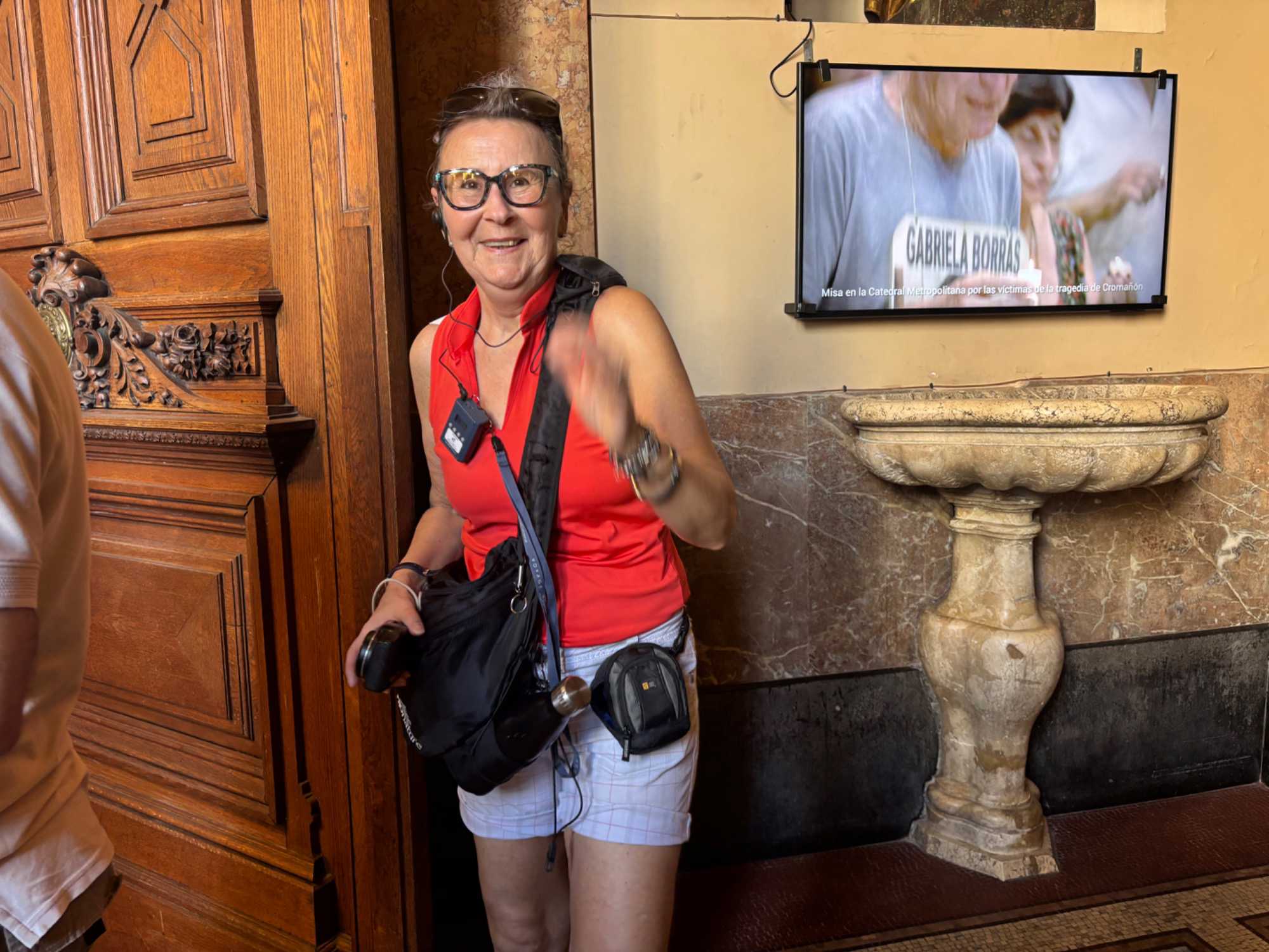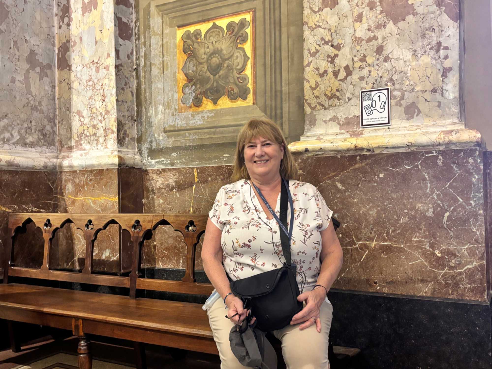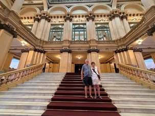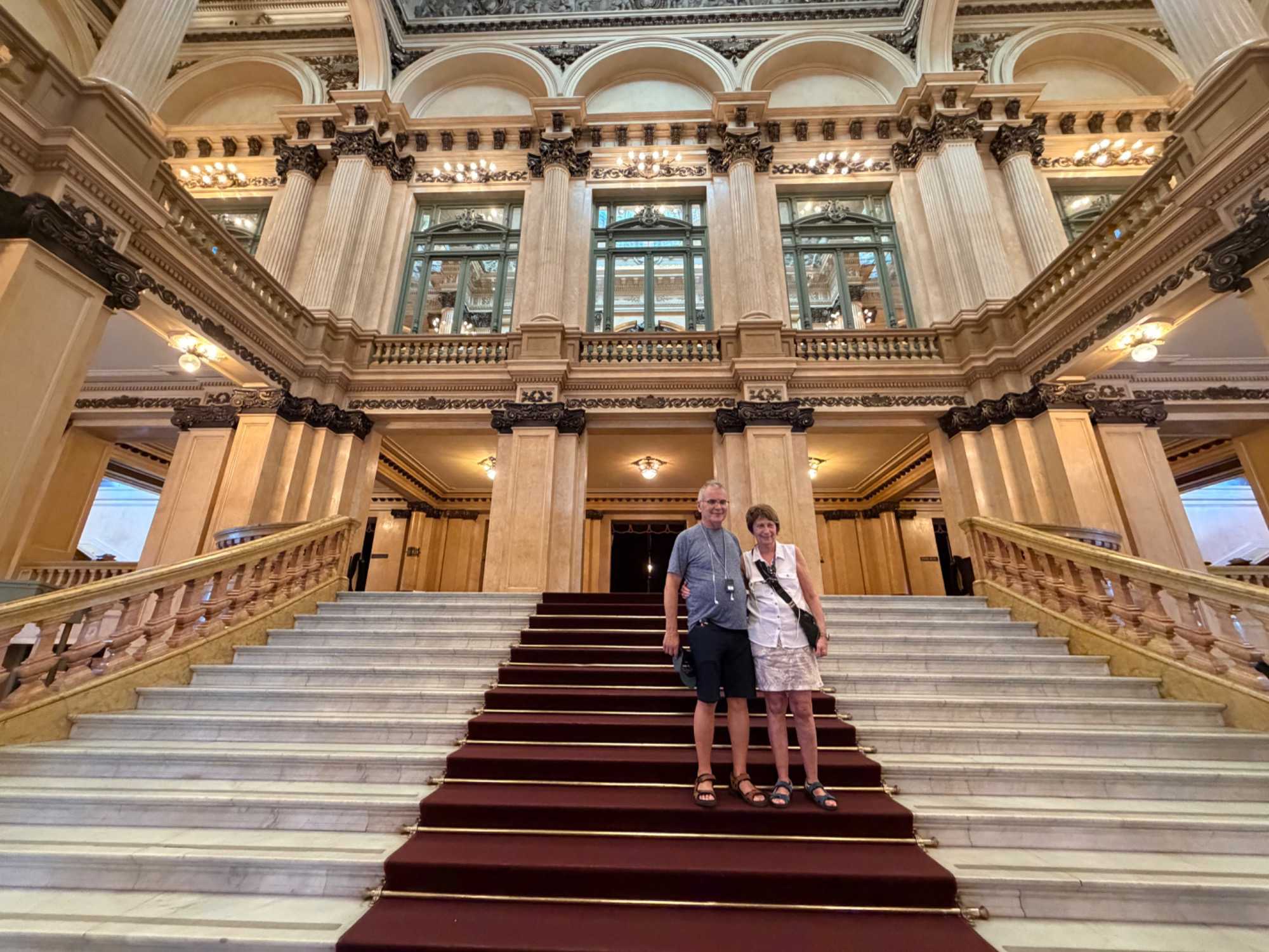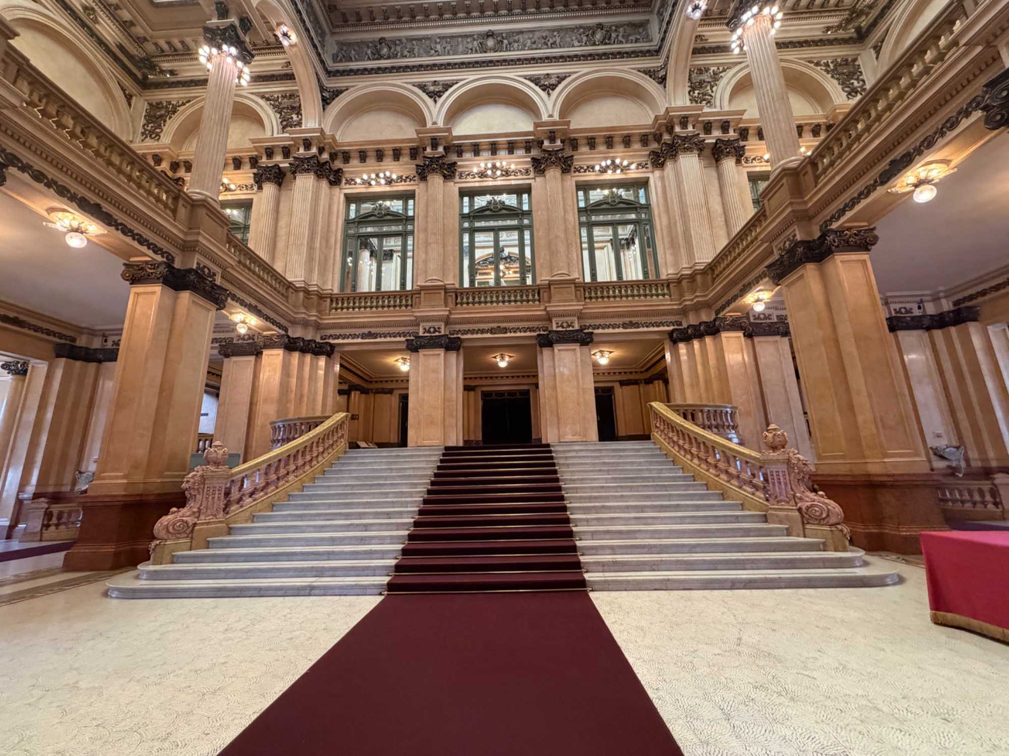 Dès que nous franchissons les grandes portes, le contraste est saisissant. Dehors, le rythme trépidant du centre-ville ; dedans, un calme majestueux. Les marbres, les lustres, les colonnes… le hall du Teatro Colón nous accueille comme un soupir de fraîcheur et d’élégance. Tout semble vouloir raconter une histoire.