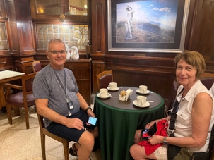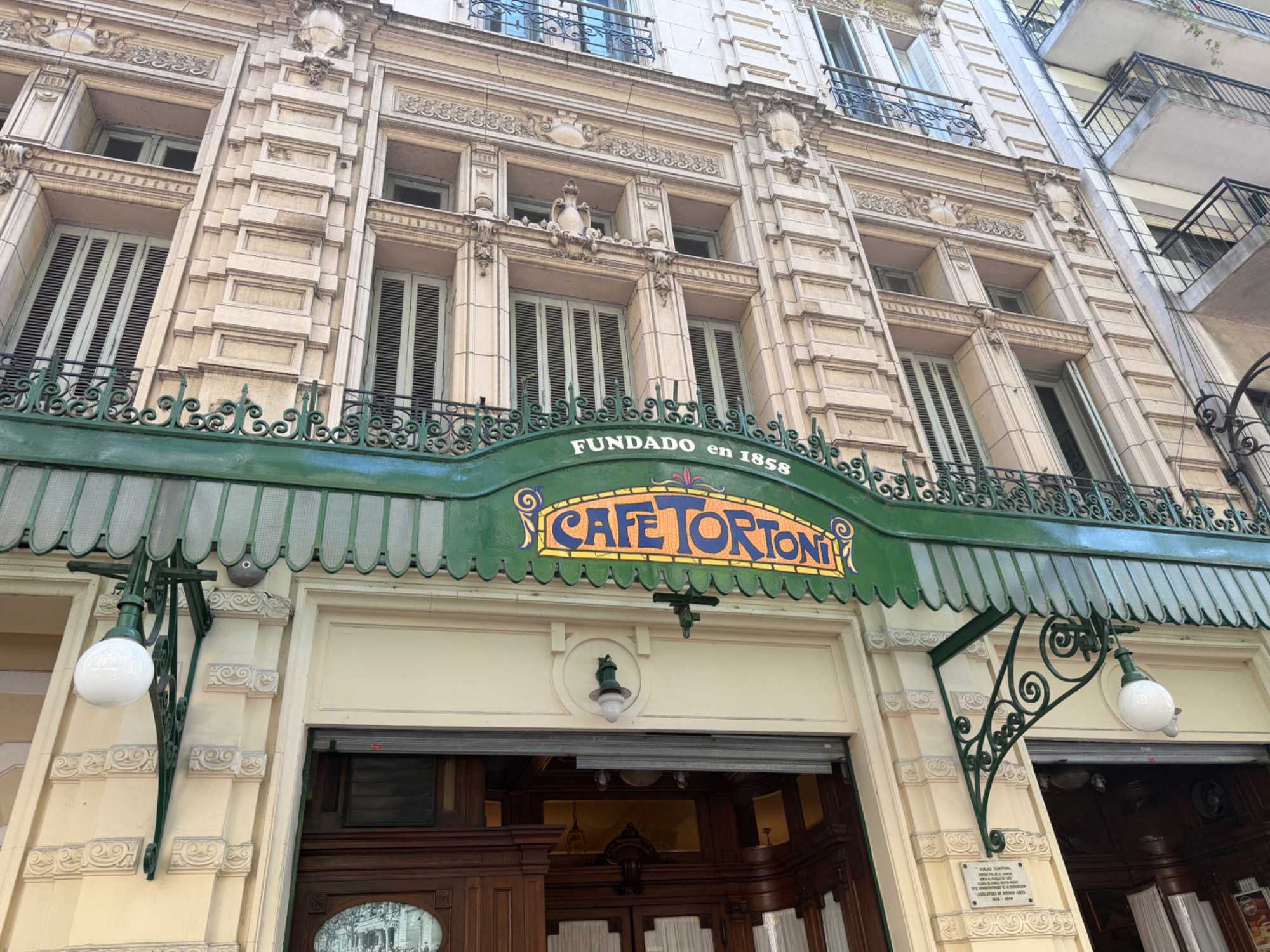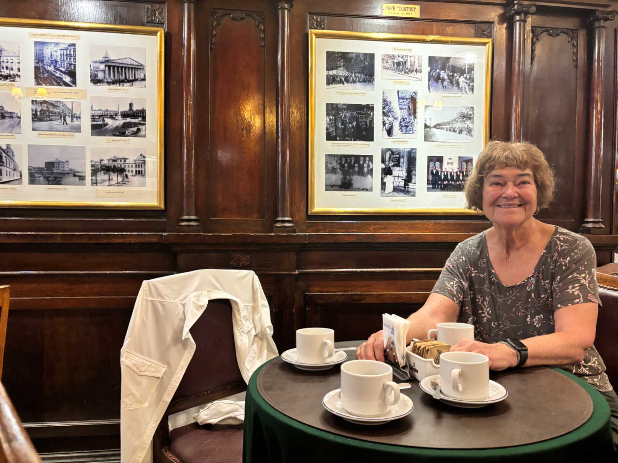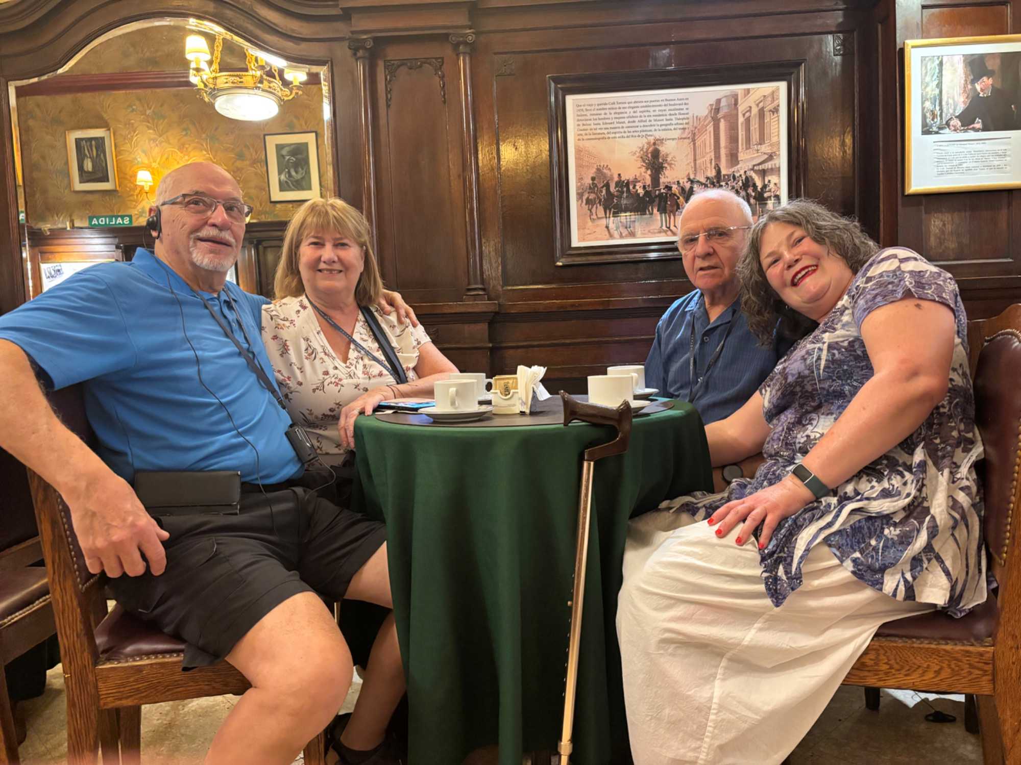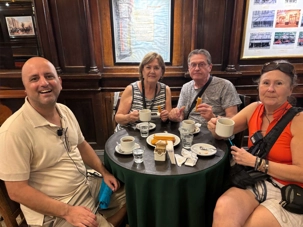 Après tant de découvertes, une pause s’impose et quelle pause! à notre journée. Esteban nous a entraîné vers l’un des lieux les plus emblématiques de Buenos Aires : le Café Tortoni. Dès que nous avons franchi la porte, nous avons senti cette atmosphère unique, entre histoire et élégance. Sous les vitraux colorés et les boiseries anciennes, nous avons savouré un chocolat chaud comme l’auraient fait les artistes et écrivains d’autrefois. Une pause douce, presque hors du temps, qui a donné le ton à notre journée.
