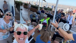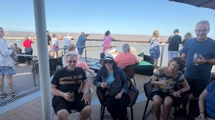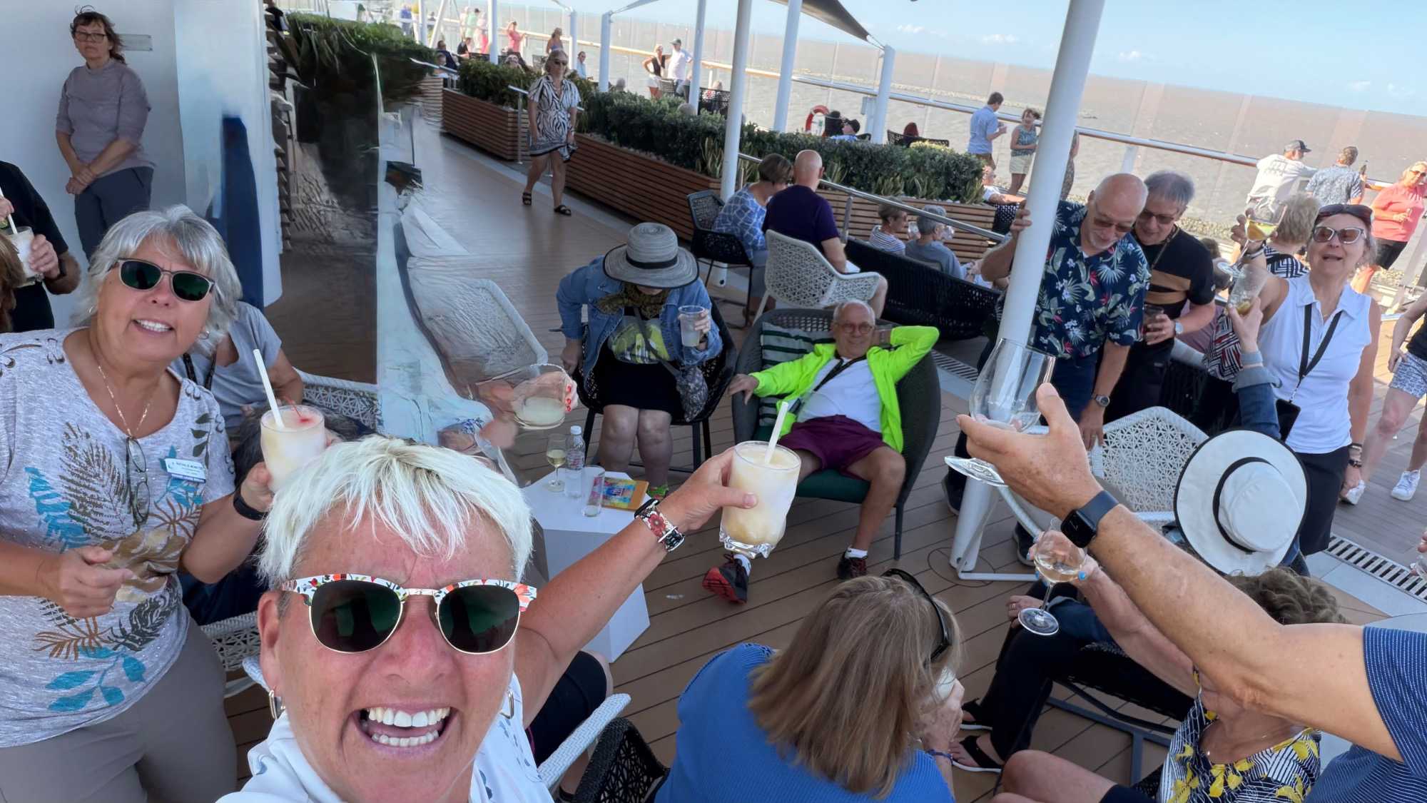 Puis vient l’instant magique : 17 h. Verre à la main, nous nous retrouvons tous sur le pont 15, au Sunset bar, pour notre tout premier 5 à 7 en mer. Nous nous éloignons du port et glissons vers les eaux du Sud, où nous apercevrons bientôt les premiers signes du monde antarctique : une lumière plus blanche, des vents plus frais, des oiseaux des mers australes et, parfois, les éclats argentés des dauphins qui jouent dans l’écume. Le navire se détache doucement du quai, Buenos Aires s’éloigne, et je sens dans le groupe un mélange d’émerveillement et de fébrilité. Notre croisière vers l’Antarctique commence, et déjà, l’esprit de camaraderie flotte dans l’air.