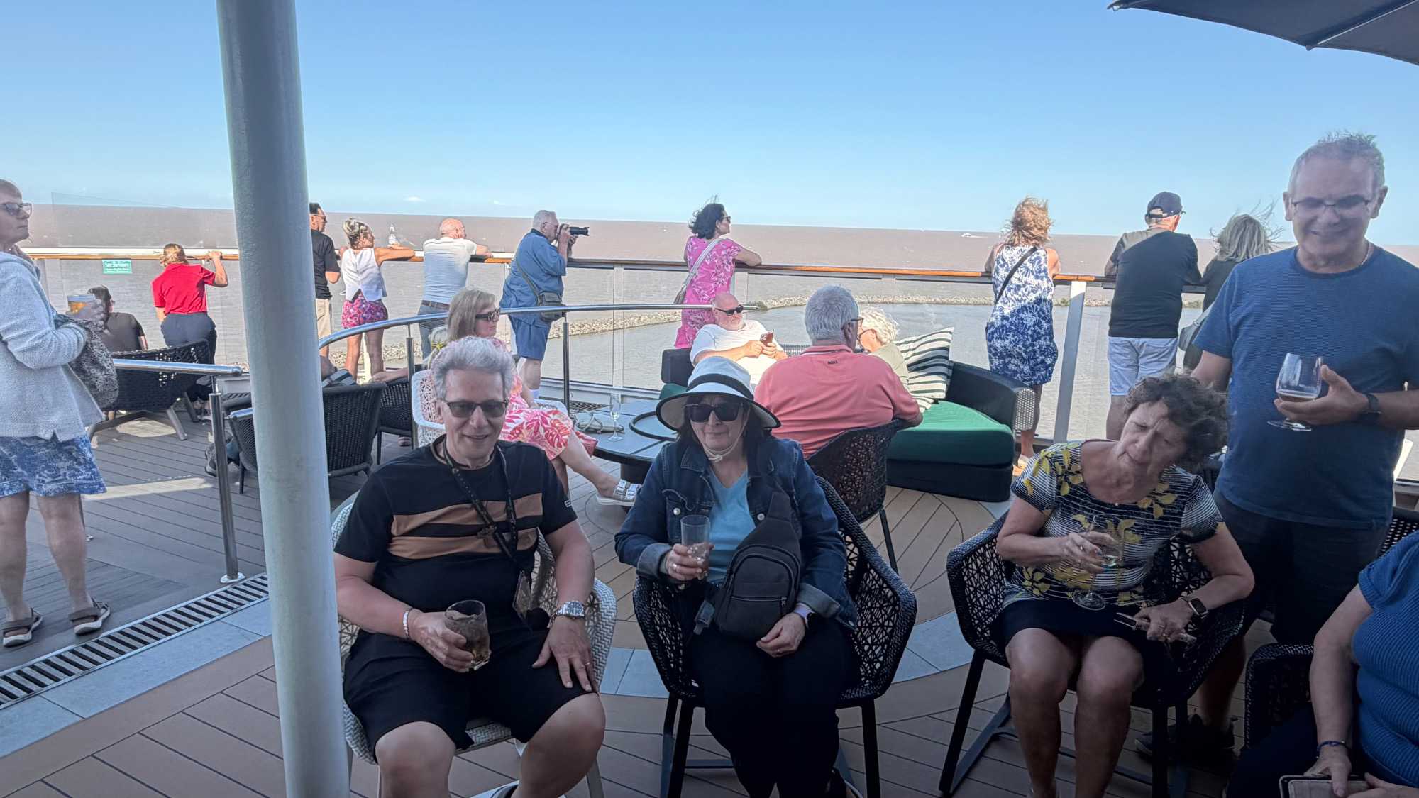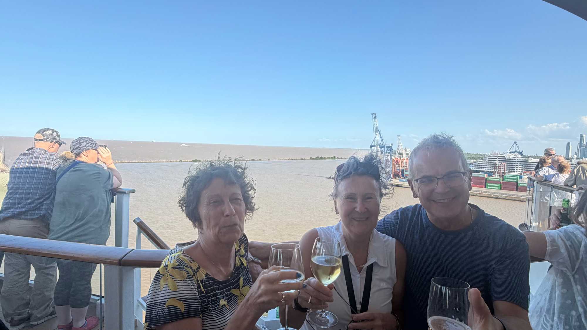 Après un bon petit-déjeuner à l’hôtel, Nathalie et moi, retrouvons notre groupe dans le hall, déjà animé par l’excitation du départ. Nous guidons tout le monde à l’intérieur de la navette, direction le port de Buenos Aires. On sent l’énergie monter à chaque pas : valises qui roulent, sourires qui s’échangent, petites blagues pour détendre ceux qui vivent leur première croisière.