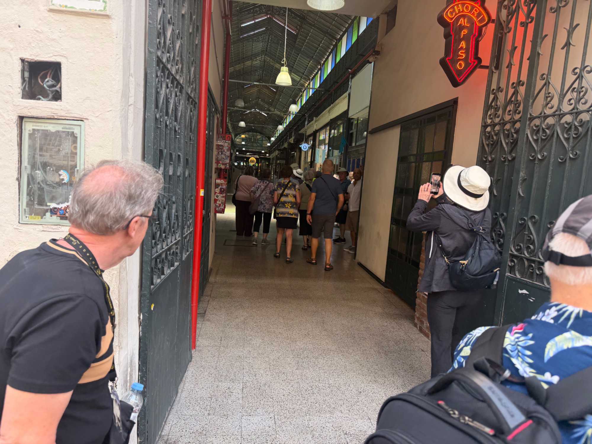 Ce matin, nous retrouvons notre guide Esteban, toujours fidèle au poste et prêt à nous faire découvrir un nouveau coin de Buenos Aires avant notre embarquement. Rapidement, nous prenons la route vers La Boca, mais avant d’y arriver, Esteban nous entraîne à travers le San Telmo Market.Dès l’entrée, c’est un véritable “wow”. Ce marché couvert, un peu bohème, un peu chic, dégage une atmosphère à part. Entre les étals d’antiquités, les petits cafés, les kiosques de fruits, les restaurants qui embaument l’air d’odeurs délicieuses… on avance comme dans un labyrinthe vivant. Le mélange des styles, la musique en fond, les artisans au travail : tout donne l’impression d’un marché qui a une âme. C’est particulier, unique, presque magique.