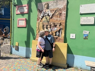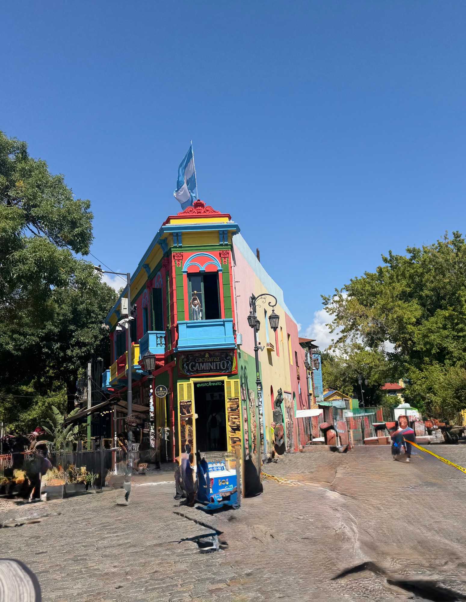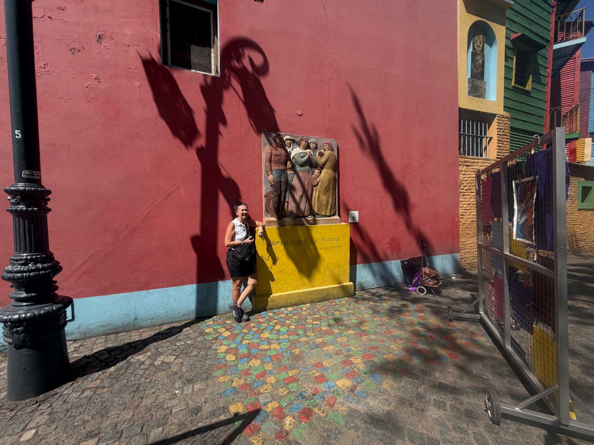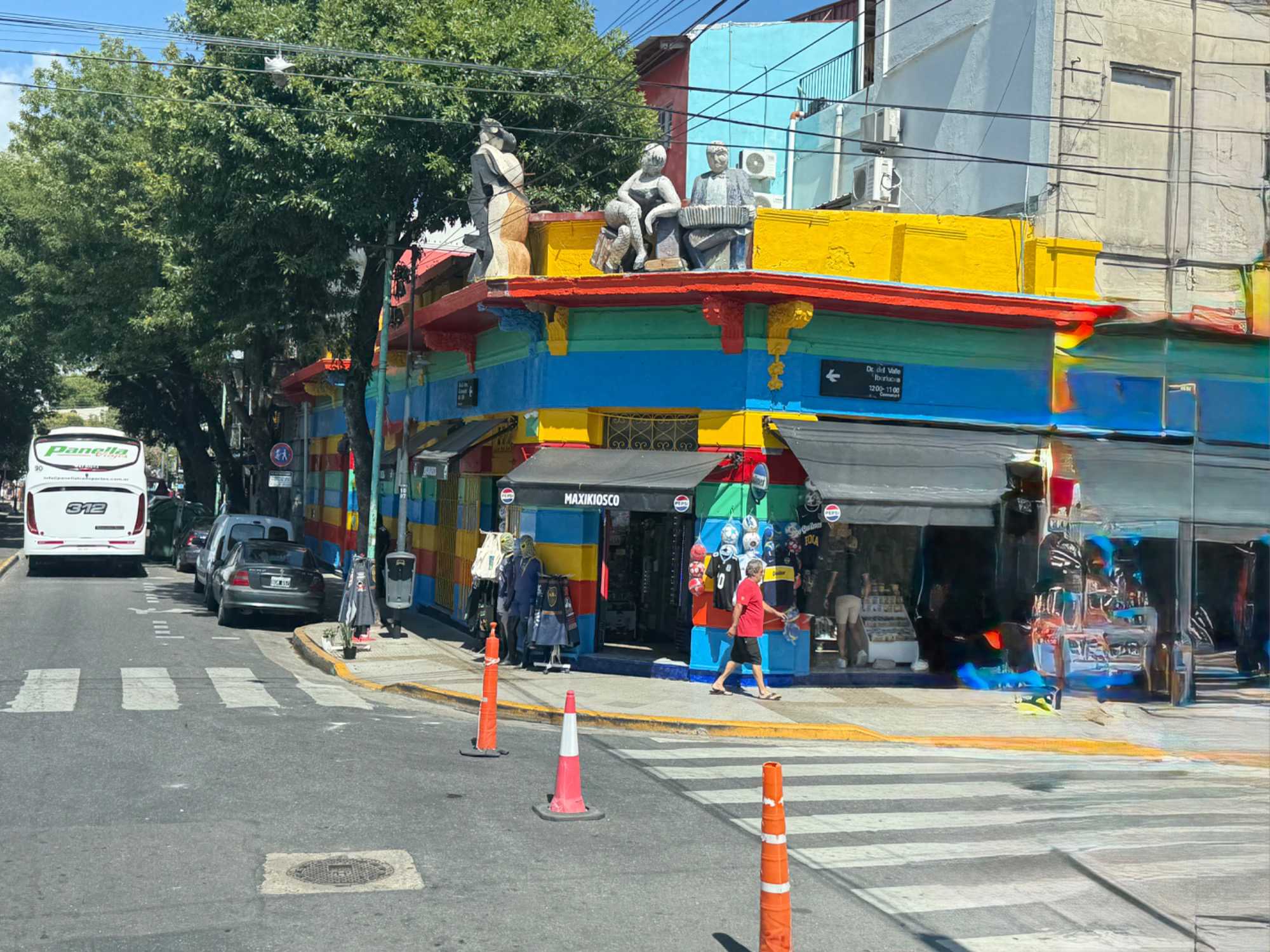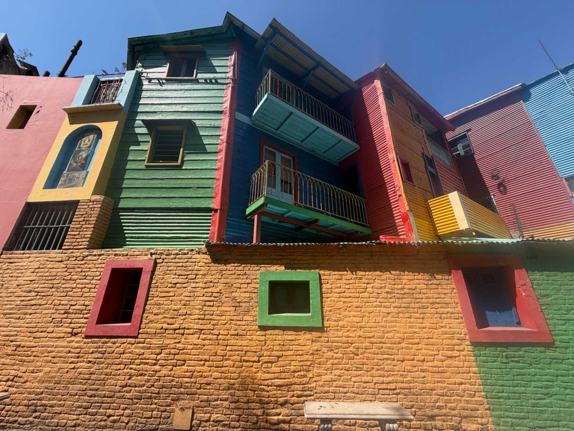 À peine arrivés, tout devient explosion de couleurs : rouge, jaune, bleu, vert, violet… chaque maison semble vouloir attirer notre regard. La Boca, c’est un musée à ciel ouvert. Les façades en tôle ondulée, les murs peints de couleurs vives, les danseurs de tango dans la rue, les artistes qui exposent… on se croirait dans un décor de théâtre.