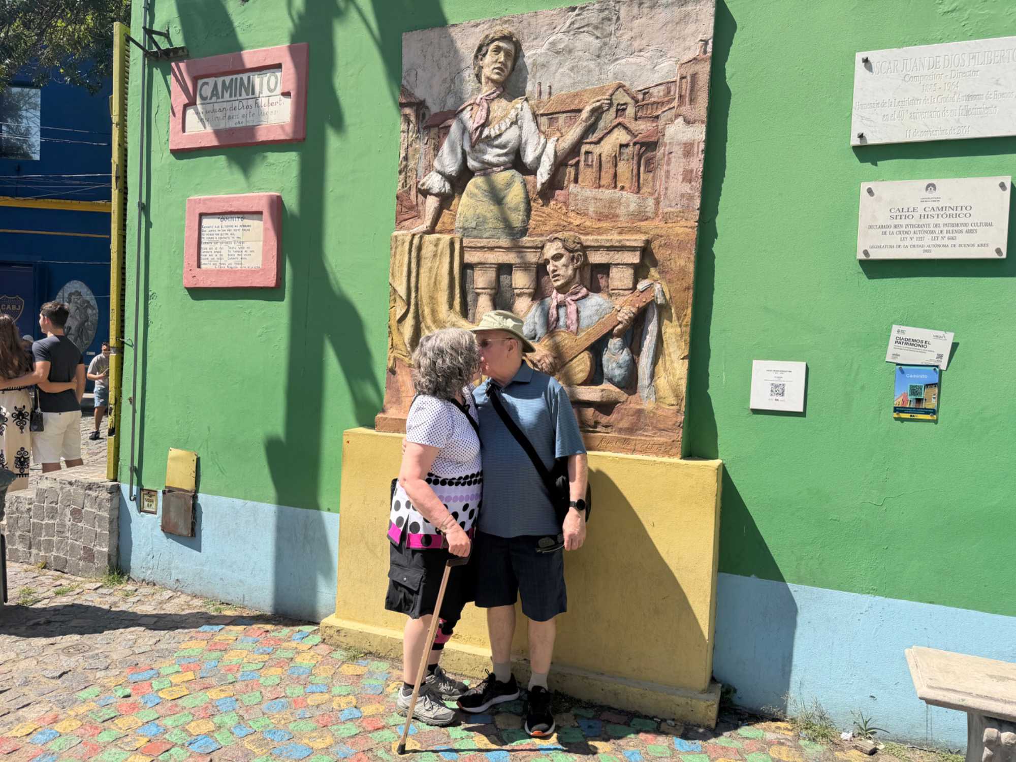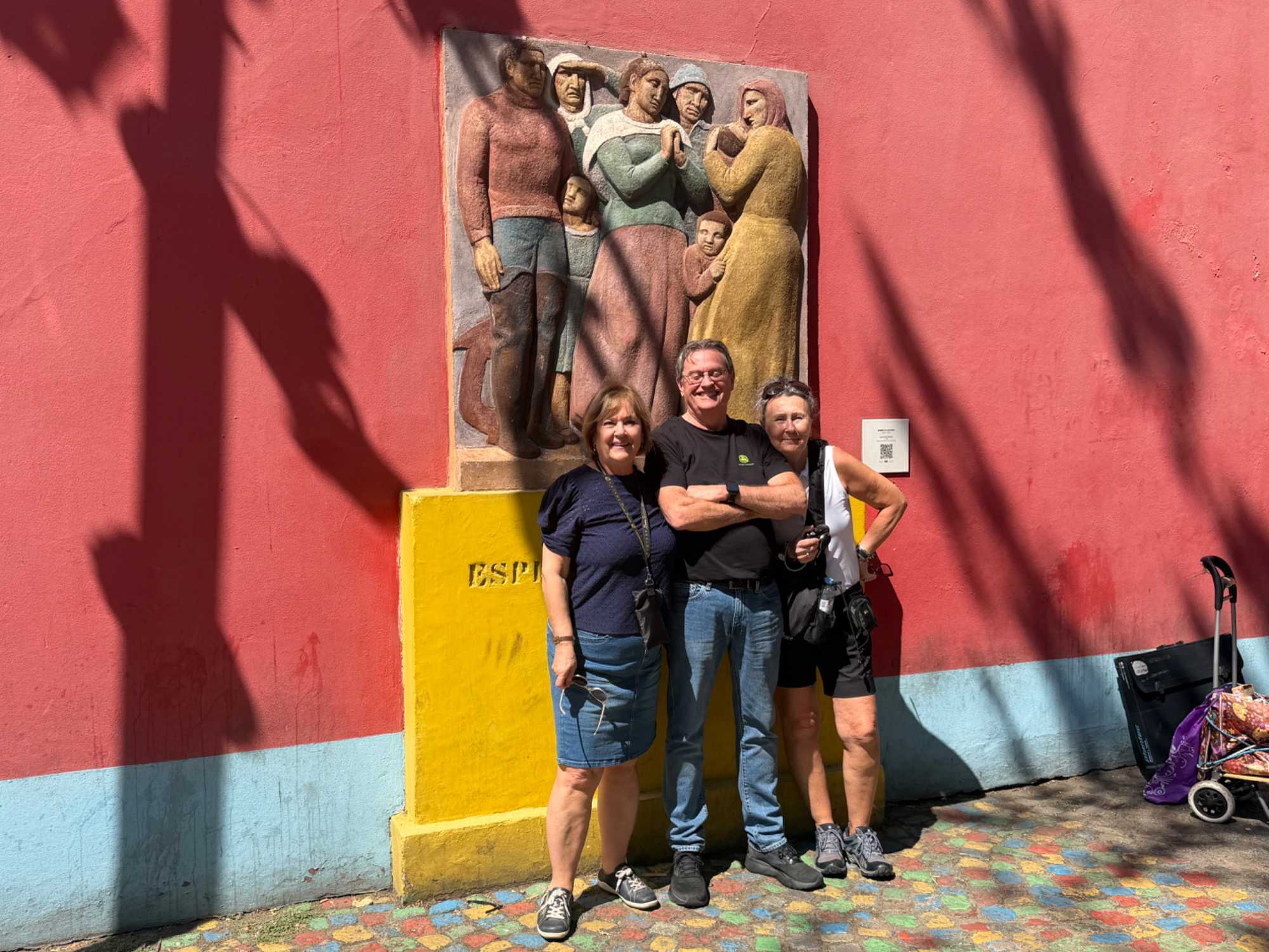 Nous déambulons ensuite sur Caminito, la rue emblématique, où chaque pas nous plonge dans l’histoire populaire de Buenos Aires. Entre la joie des couleurs, les odeurs de grillades, les artistes de rue et la fierté des habitants, impossible de rester indifférents.Une visite haute en couleur… au sens propre comme au figuré!