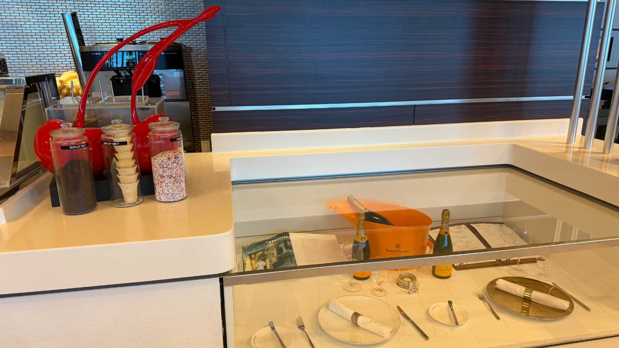 Les chefs préparent chaque plat au gramme près, les serveurs circulent comme une danse parfaitement réglée, et les ascenseurs dédiés transportent les assiettes vers les restaurants.