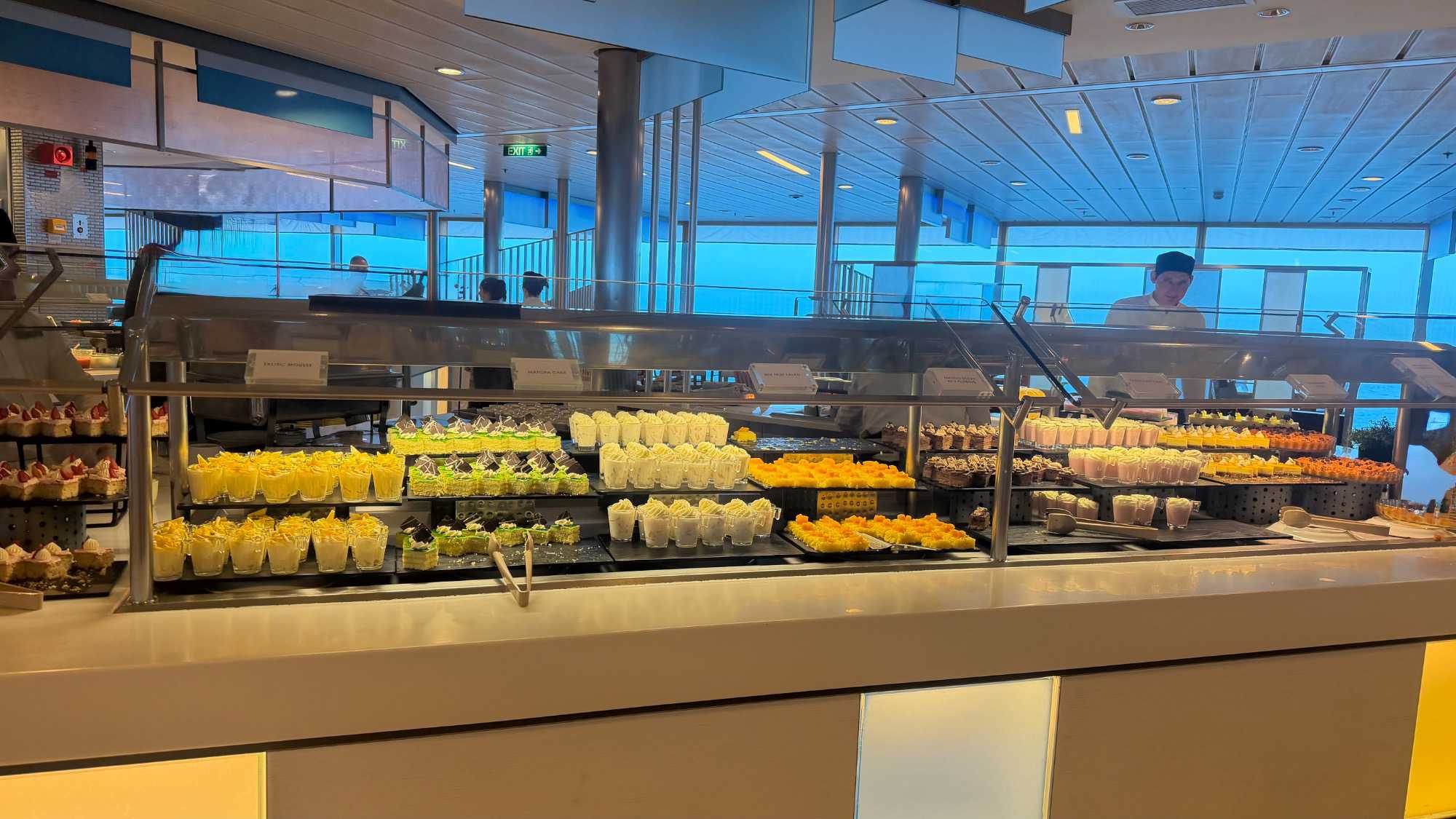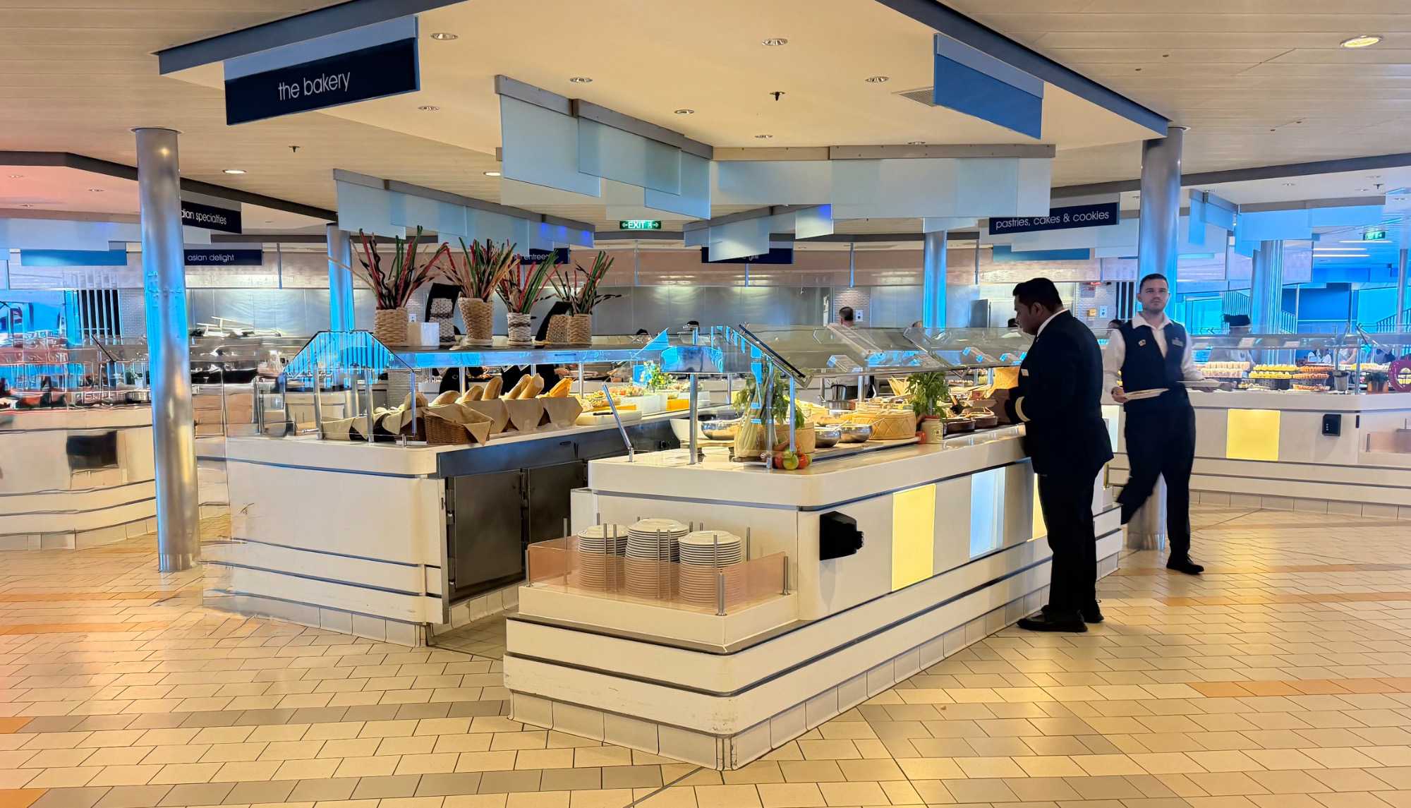 La cuisine c'est : chaque jour, plus de 10 000 repas sont préparés à bord. Les cuisines sont organisées en stations spécialisées : boulangerie, pâtisserie, viandes, poissons, légumes, sauces, desserts, buffets, restaurants thématiques…