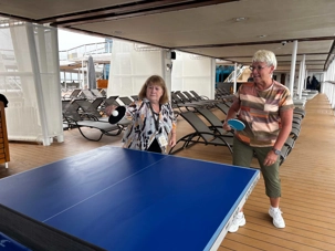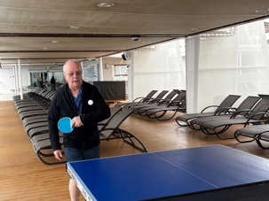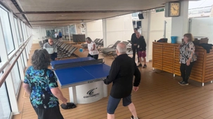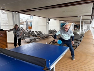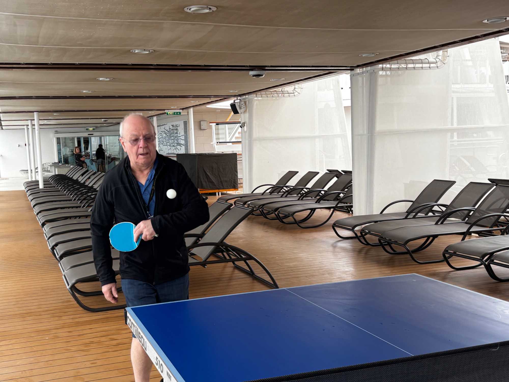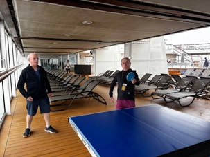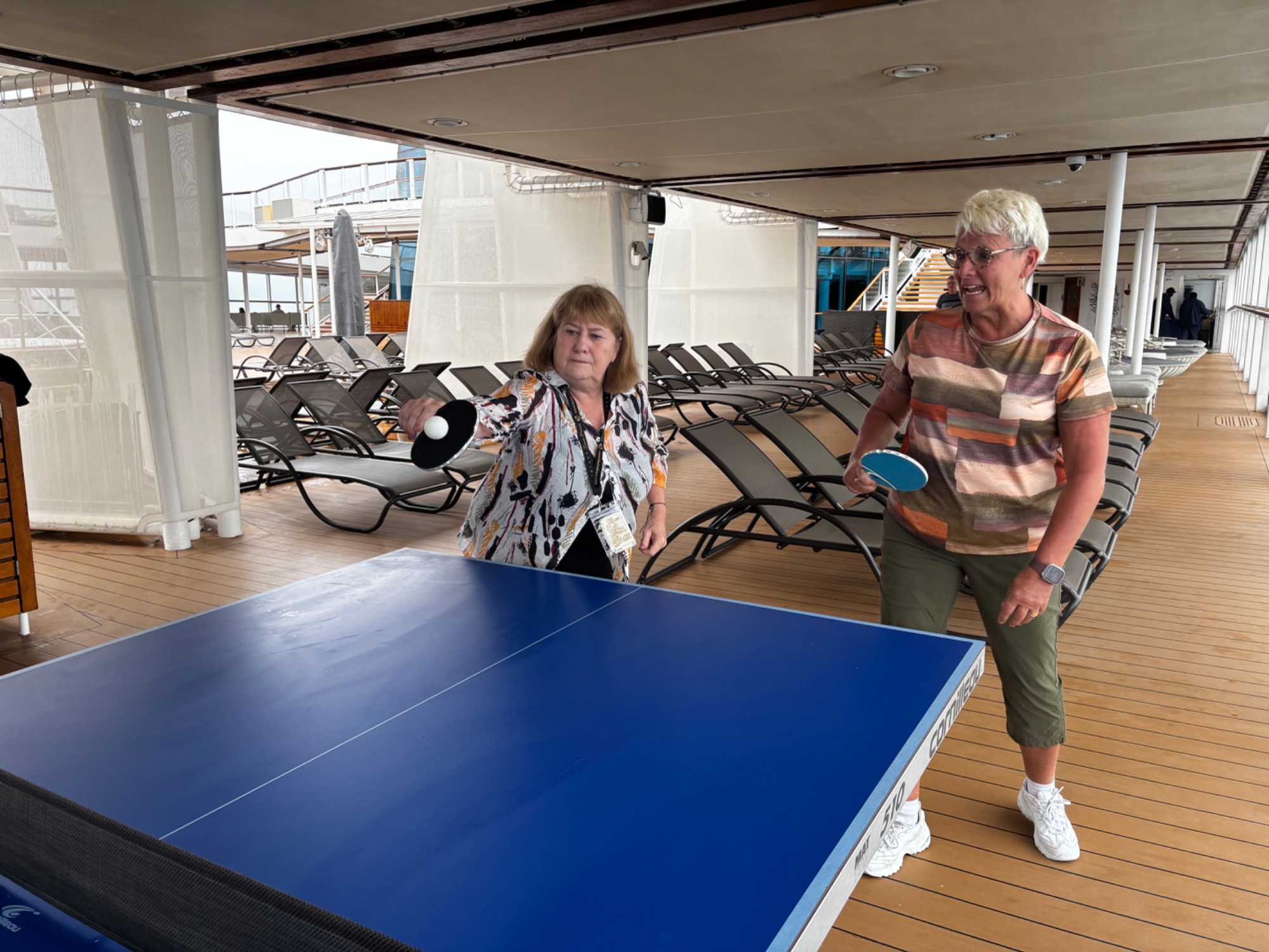 La balle fuse d’un côté à l’autre dans un rythme joyeux et un peu chaotique, typique d’une partie improvisée entre voyageurs. Un smash manqué provoque un éclat de rire général, une balle effleurée roule jusqu’au mur, et un joueur, trop confiant, annonce qu’il « maîtrise totalement la situation » juste avant d’envoyer la balle hors de la table.