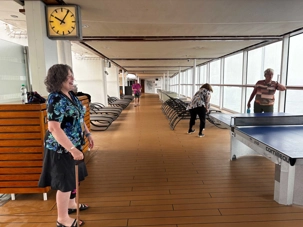 Ce matin, nous nous réveillons avec cette sensation unique que seule une journée en mer peut offrir : le Celebrity Equinox glisse paisiblement sur l’océan, et nous, bercées par le roulis doux, sentons déjà l’énergie positive de cette nouvelle journée. Le navire respire la détente, la lumière, la bonne humeur… et nous aussi. La température se refroidit, ce matin c’est dans le brouillard que nous nous sommes réveillés. En fin de matinée nous avons eu une averse de courte durée mais le vent s’est quelque peu élevé et la température continu de descendre.