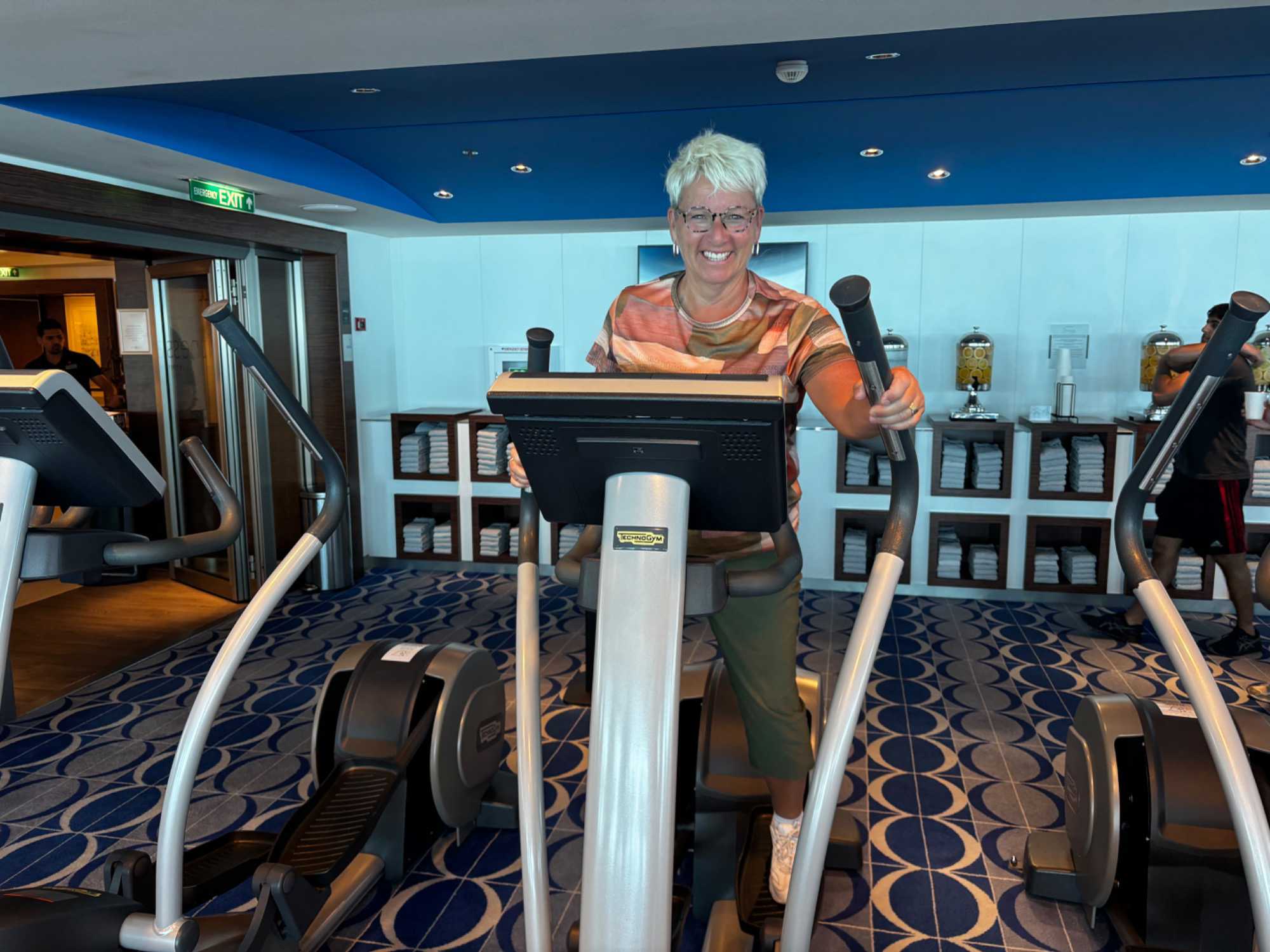 Georges, notre passionné d’entraînement, nous a conviés à une petite séance. Les installations du Celebrity Equinox, à la fine pointe et réellement impressionnantes, ont d’ailleurs donné envie à quelques un, de s’y mettre plus sérieusement.