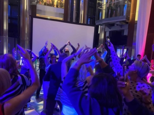 Comme il restait de l’énergie, et pour terminer cette merveilleuse journée, nous avons dansé sur les airs entraînants du groupe ABBA, ces chansons intemporelles qui, décidément, ne cessent jamais de nous faire bouger. Impossible de rester assis : dès les premières notes, tout le monde s’est levé, sourire aux lèvres, pour chanter, danser et profiter pleinement de ce dernier moment festif.Une fin de soirée parfaite, légère et vibrante, qui vient couronner une journée déjà remplie de bonheur et de belles émotions en mer.