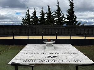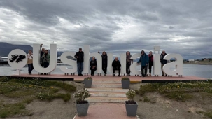 Nous avons d’abord fait un arrêt à la Plaza Islas Malvinas, au cœur d'un monument érigé en mémoire des 649 Argentins tombés durant la guerre des Malouines en 1982. Ce cénotaphe avec une flamme éternelle est le lieu de veillées annuelles, notamment le 1er avril, rassemblant vétérans et habitants. À quelques pas plus loin, nous avons proposé un arrêt photo devant le célèbre lettre Ushuaia. Sous le vent frais qui descendait des Andes, chacun s’est positionné pour immortaliser ce moment unique. Les sourires étaient francs, un mélange de fierté et de joie d’être ici, dans un lieu que beaucoup rêvent de voir au moins une fois. Pendant que les appareils cliquetaient, nous avons expliqué pourquoi ce point est devenu un symbole incontournable : c’est la porte d’entrée vers la Terre de Feu, le repère qui confirme que l’on a bel et bien atteint “El Fin del Mundo