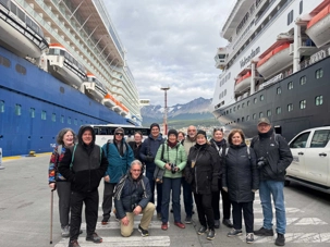 C’est ici que commence symboliquement la Route de la Fin du Monde, ce ruban d’aventure qui relie l’humanité à ses limites géographiques. Et nous, accompagnatrices privilégiées de cette journée, observons nos voyageurs se laisser imprégner par ce décor spectaculaire, ce mélange de nature brute et d’histoire humaine.