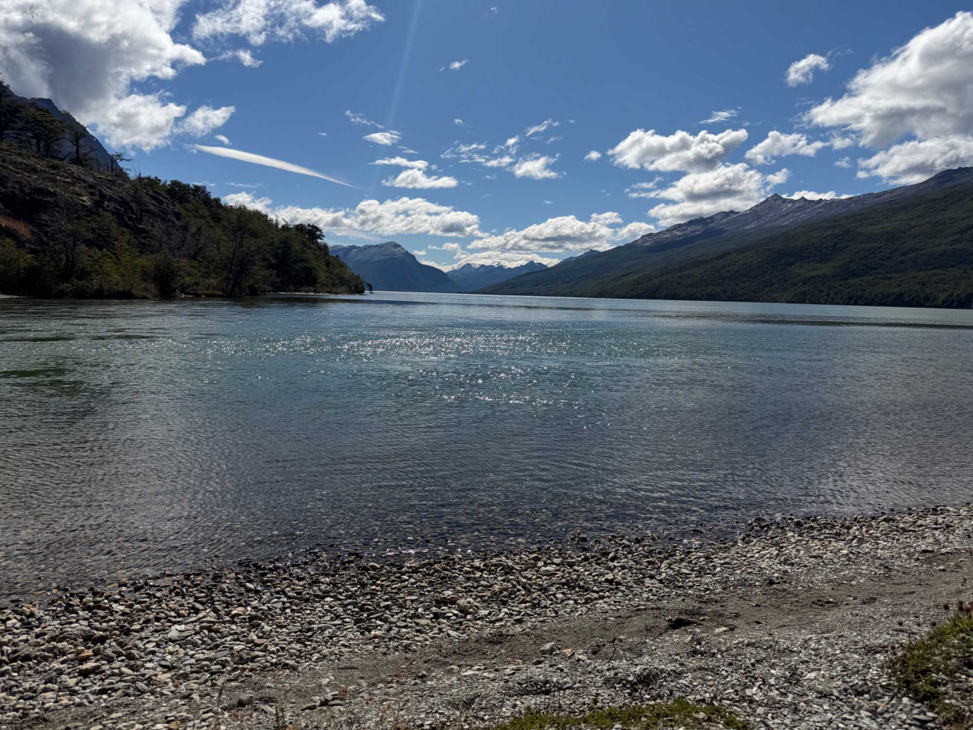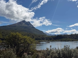 Puis vient le moment tant attendu : l’arrivée à la Baie Lapataia. Ici, tout se calme. Le vent est très présent, les conversations se suspendent, et chacun ressent cette émotion particulière qu’on ne trouve qu’aux lieux extrêmes. Nous sommes à l’extrémité australe du continent, là où s’achève la mythique route panaméricaine. Devant nous, les eaux du canal Beagle scintillent, comme si elles nous invitaient à contempler le monde autrement.