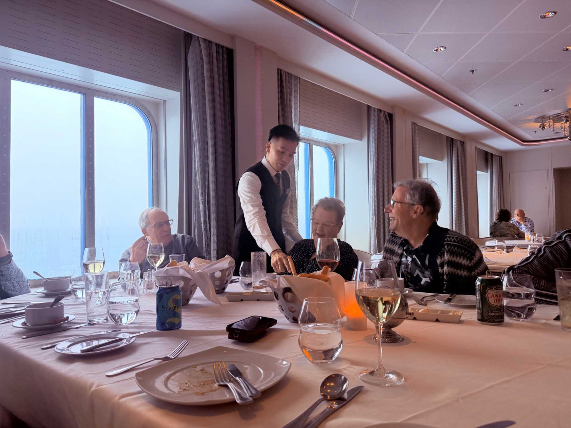 Le bateau tangue sur des vagues de 3 à 4 mètres, et nos voyageurs avancent en zigzag, comme s’ils avaient un verre de trop. Quelques-uns ressentent un certain inconfort, mais heureusement, Louise nous avait parfaitement préparés pour affronter le Drake. Nous nous sommes tout de même réunis en après-midi pour une partie de cartes pleine de rires, avant de terminer en beauté avec notre traditionnel 5 à 7.