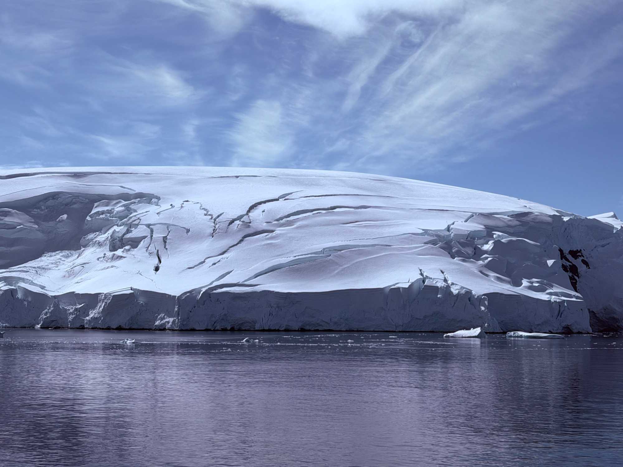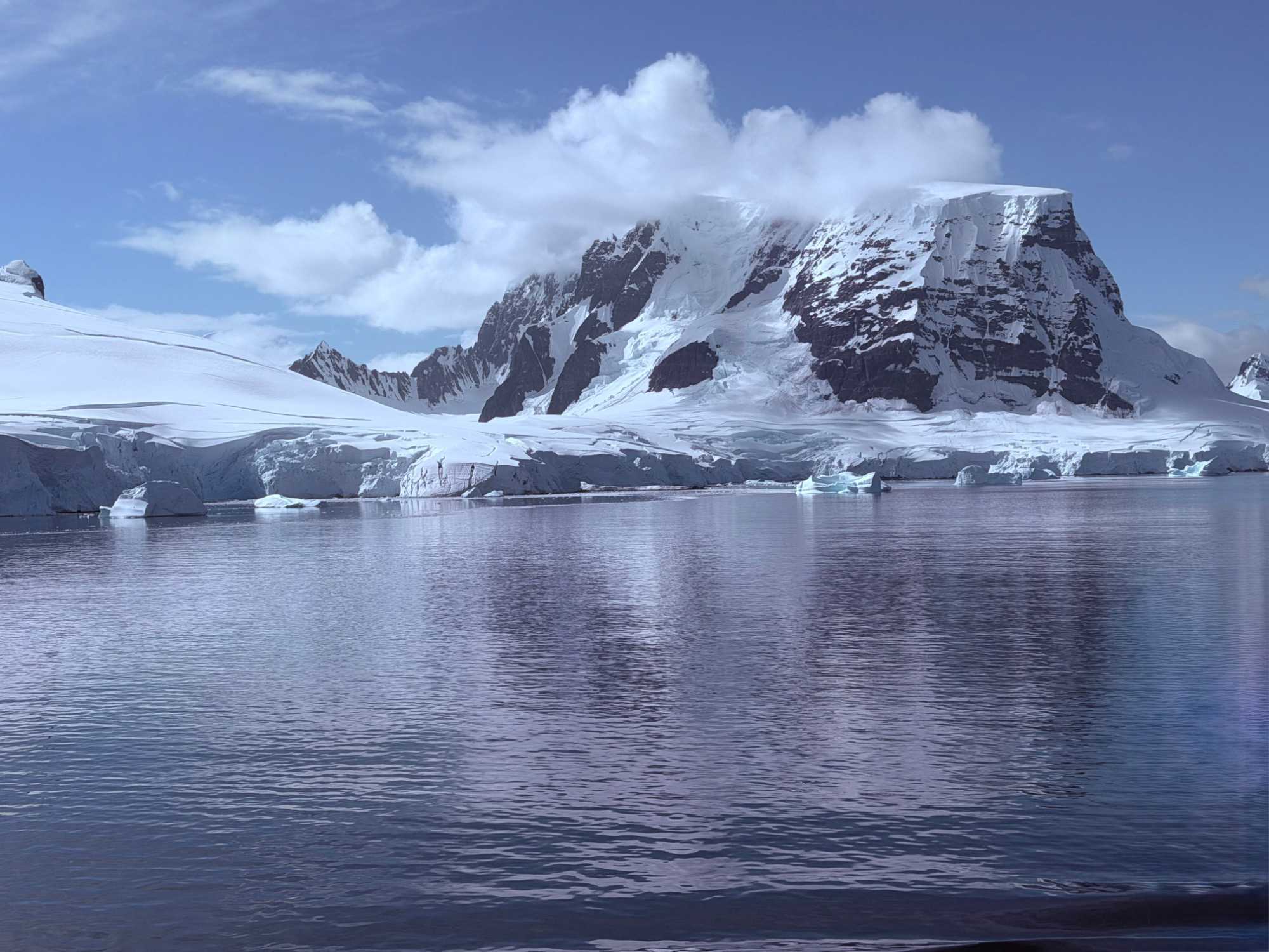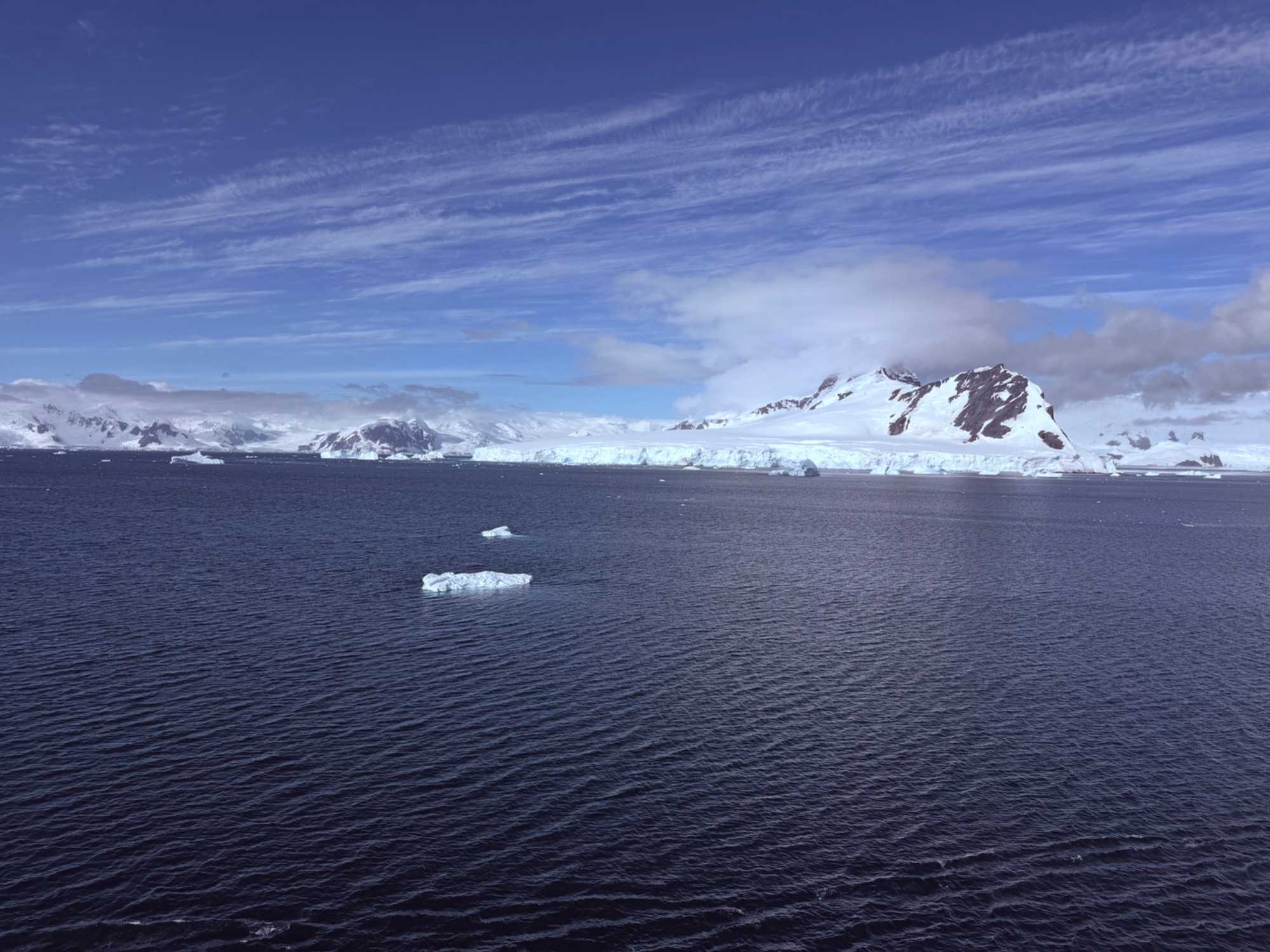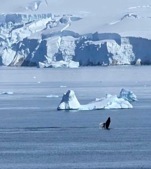 Alors que notre navire poursuit sa route vers le sud, nous glissons doucement vers le majestueux détroit de Gerlache, un long corridor glacé où les montagnes enneigées semblent surgir directement de la mer et où les glaciers se jettent dans l’eau dans un silence presque sacré. À mesure que nous avançons, les icebergs se multiplient, certains d’un bleu profond, d’autres d’un blanc éclatant, et autour de nous la vie s’anime avec les souffles des baleines à bosse, les plongeons des phoques et les vols gracieux des oiseaux marins qui accompagnent notre passage. L’atmosphère est à la fois paisible et grandiose, comme si l’Antarctique nous accueillait avec toute sa splendeur.
