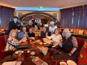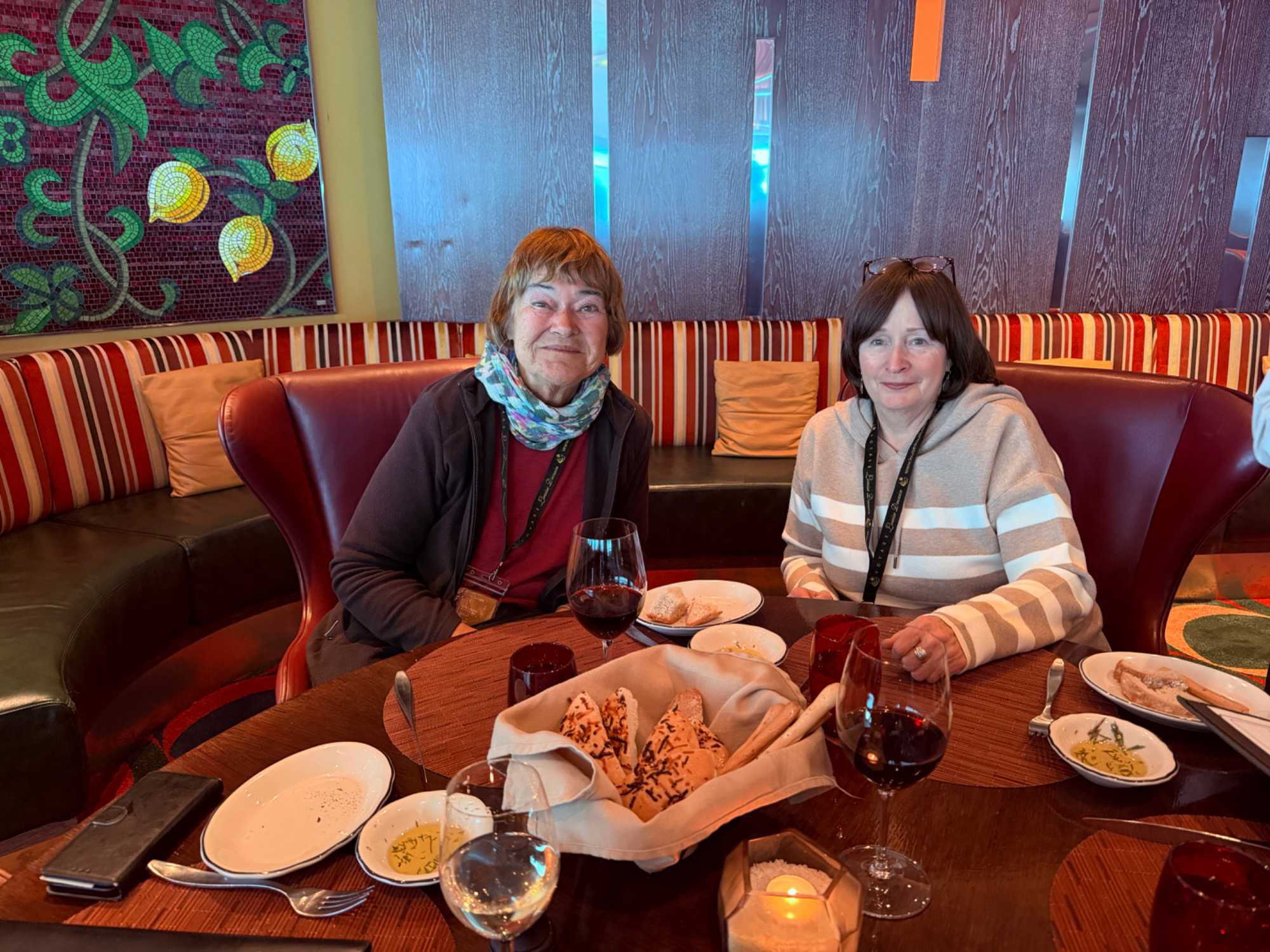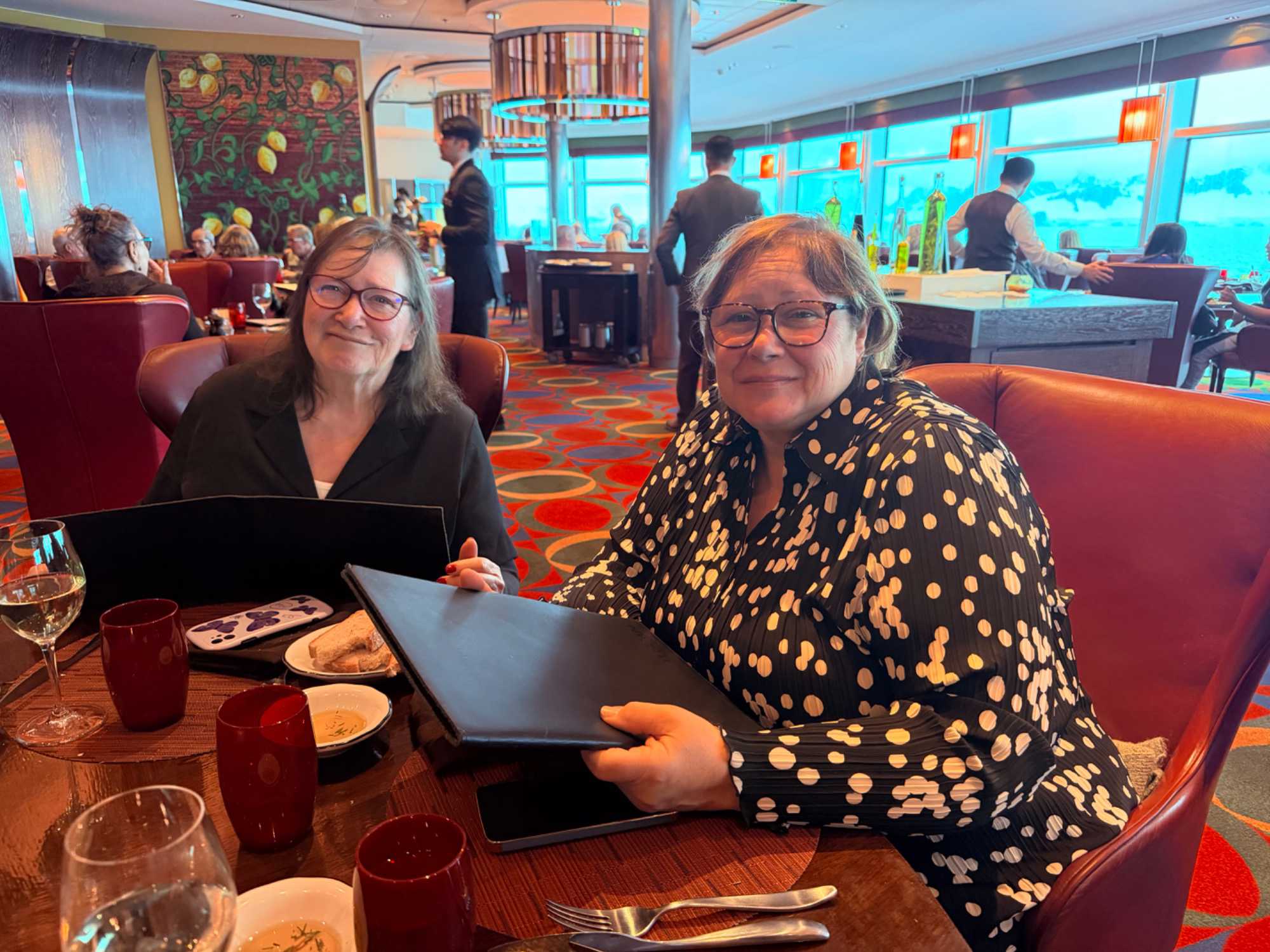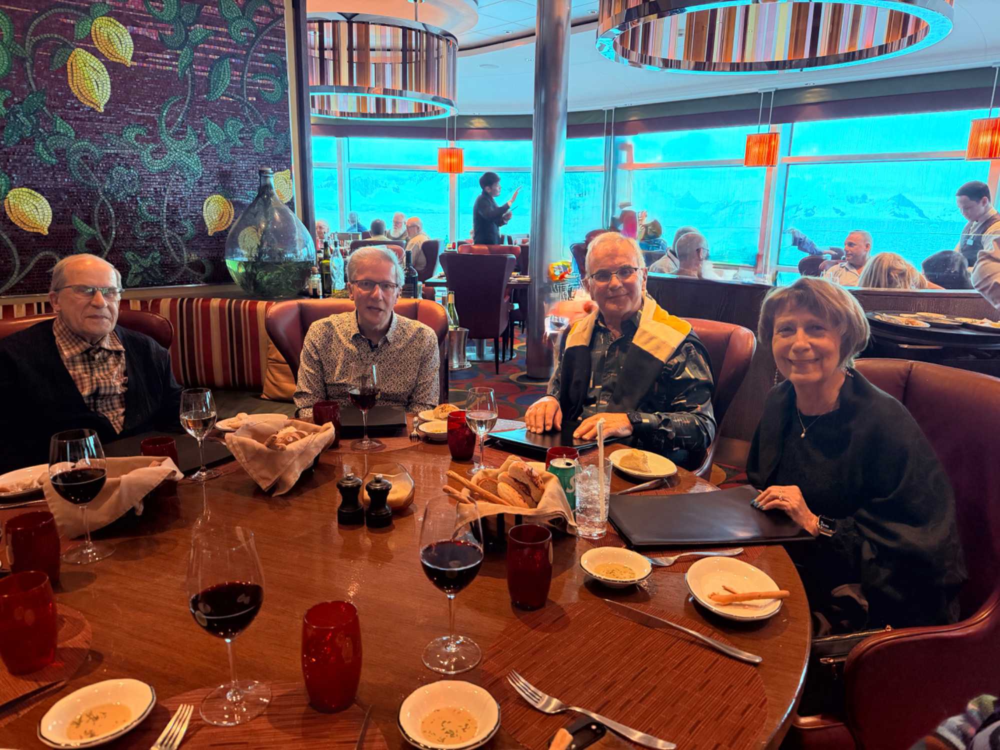 Notre 5 à 7, a lancé la soirée sur une note festive. Nous avons ensuite poursuivi avec un délicieux souper au Tuscan Grill, où tous les voyageurs ont participé avec enthousiasme. Grâce aux immenses fenêtres qui offrent une vue à 180 degrés, nous avons pu continuer d’admirer les glaciers qui défilaient lentement, baignés par la lumière unique de l’Antarctique.